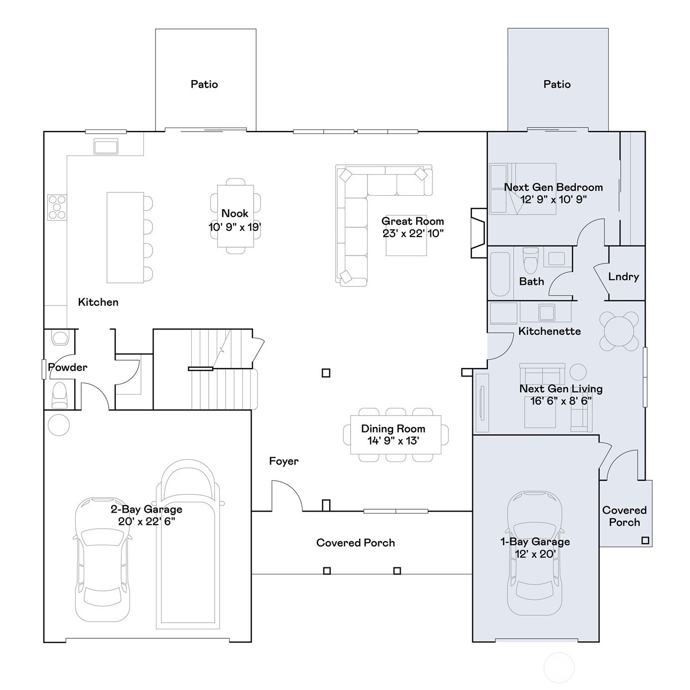 This Next Gen® home features a private suite with a separate entrance, living area, bedroom and more, perfect for multigenerational households. The main part of the home features an inviting open-concept layout on the first floor with convenient access to an outdoor patio, with a formal dining room off the foyer. On the second floor, a versatile loft offers a shared living space easily reached from any of the four upstairs bedrooms, including the luxurious owner’s suite. Homesite #32 Est. Move in Ready! Room for guests! Nestled in the woods surrounded by nature. Country feel with city convenience.