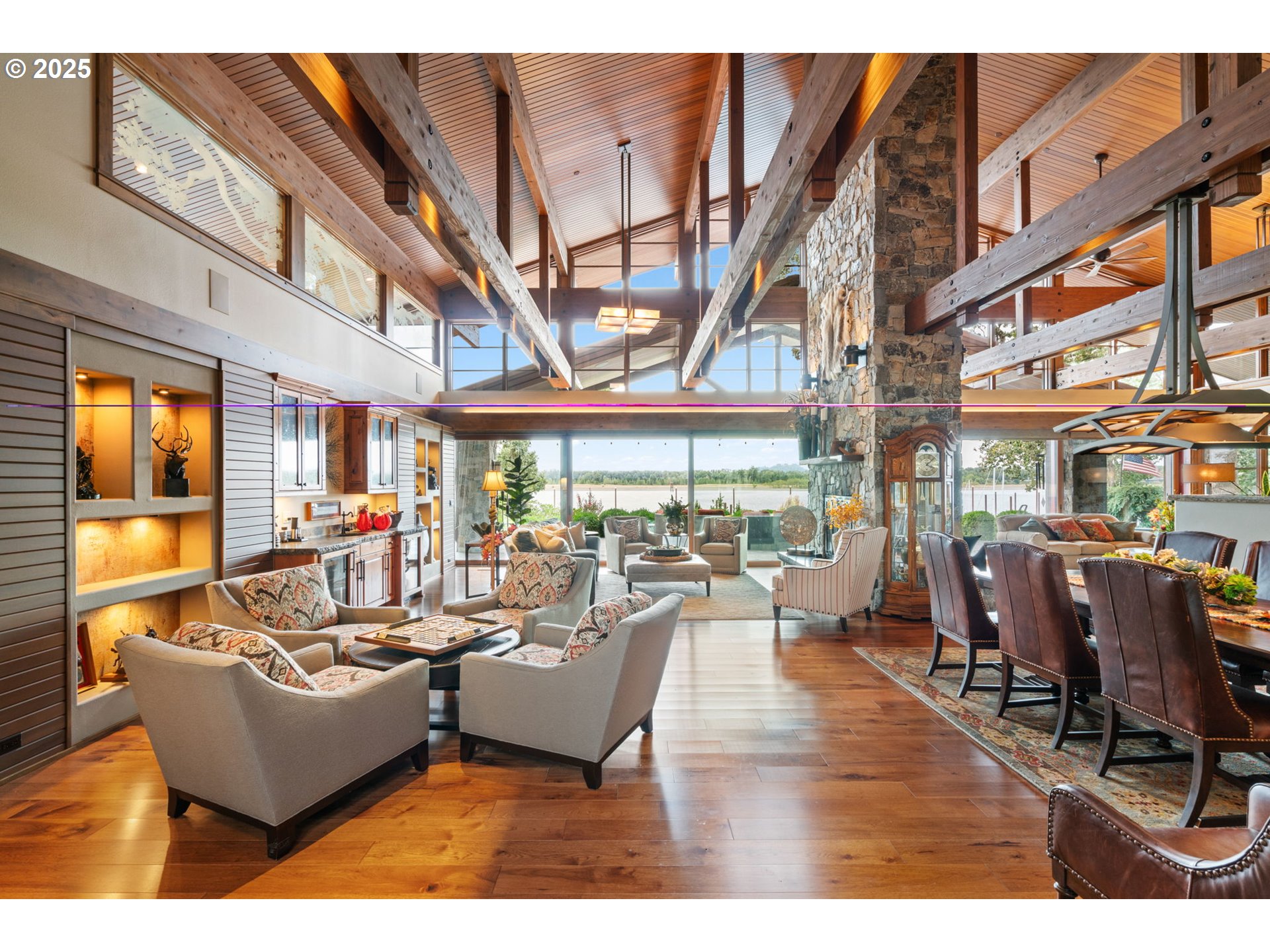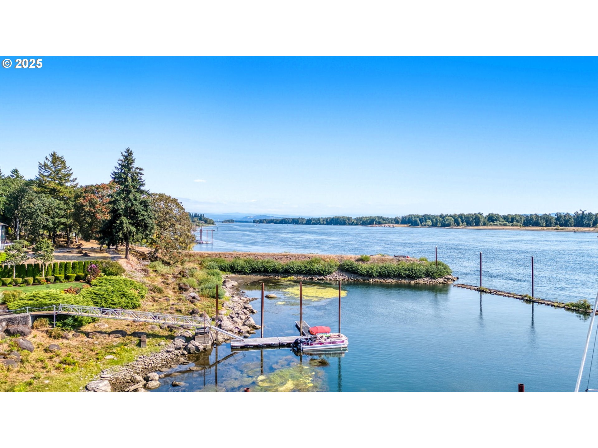 (503) 893-8874Paradise on the River Private dock with .63 acre tide right lot protected by neighboring marina. 4011 sq ft single level river lodge home on .90 acre lot. Oversized paved circular driveway with RV hookup.Outdoor covered patios overlooking the Columbia River with built in gas fire pit, cooking island with bbq, separate griddle, separate large gas burner with storage drawers. Attached natural gas outdoor heaters- 7 total.Professional landscaped grounds and gardens with a well for irrigation and sprinkler systemOversized 2 car garage with cabinets and built in vacuum.Open floor plan with 2 great rooms, glass walls open to the patios, including 1 in the master.Floor to ceiling camas rock natural gas 2 sided fireplace. Built in bar with refrigeration, sink and wine cooler.Open beam 25’ ceilings. Kitchen has side by side sub-zero refrigeration and freezers, Wolfe double oven range with griddle, Wolfe cabinet microwave in the island, Wolfe warming drawer. All beautifully finished in knotty alder cabinetry and a range to ceiling copper range hood.This is a one of a kind, must see property located in Steam Boat landing, riverfront.