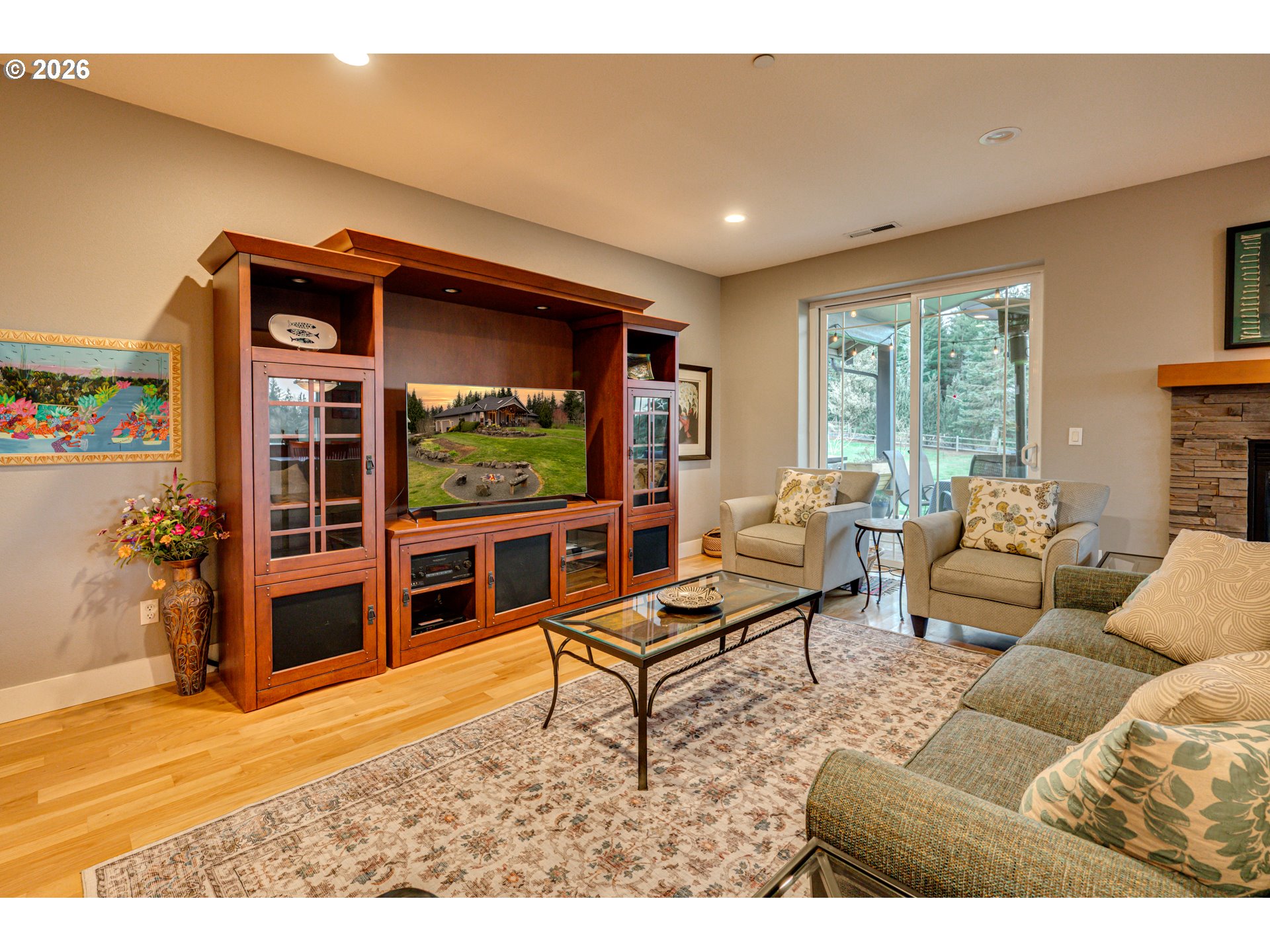 FireplaceInsert, GreatRoom, HardwoodFloors, SlidingDoors