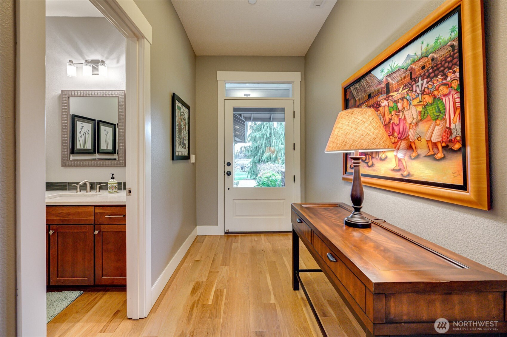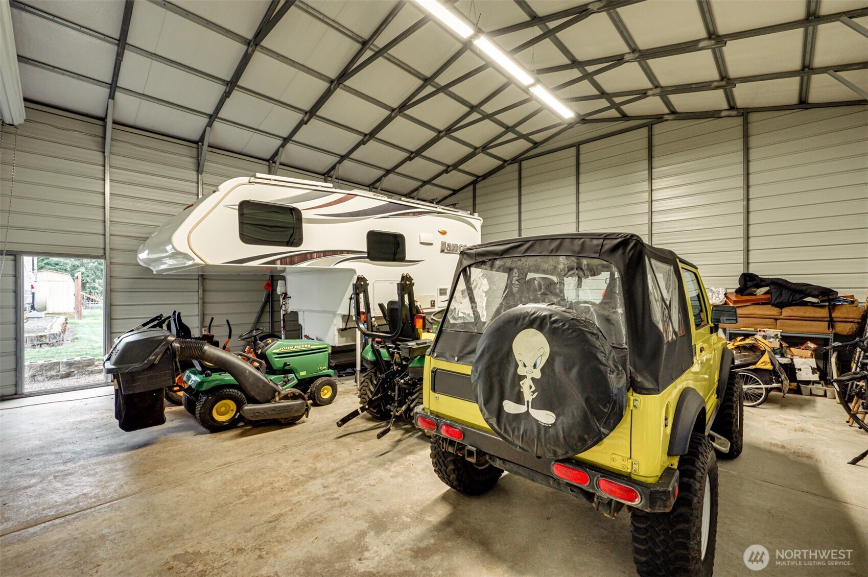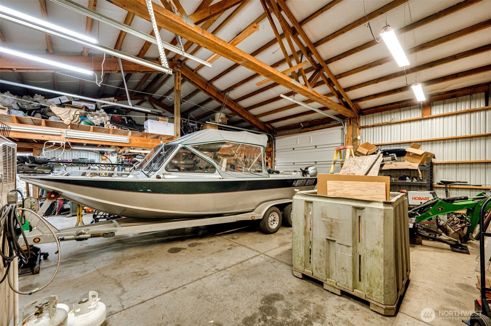 Hobby farmer’s dream with HUGE shops on 5 level acres. The 34x38 shop includes pull through access, hot water, and workshop space, plus an additional 32x32 shop. Beautifully updated great room floorplan featuring quartz counters, a spacious island, walk-in pantry with garage passthrough, and hardwood floors throughout. Two sliders open to the oversized covered patio for easy indoor-outdoor living, and an amazing firepit area for stargazing. The primary suite offers a spa like bath with soaking tub, roll in tile shower, heated tile floors, and walk-in closet. The property is set up for country living with a deer fenced garden, raised beds, drainage, drip irrigation, solar heated greenhouse, orchard, Mason bee colonies, chicken coop, duck habitat, and blueberries. Energy efficient features include ICF construction, heat pump, emergency generator, new roof, and Hardi-plank siding. Attached three car garage with EV readiness, mechanical room, and extensive paved parking. Fully fenced with gated entry. This one won't last!