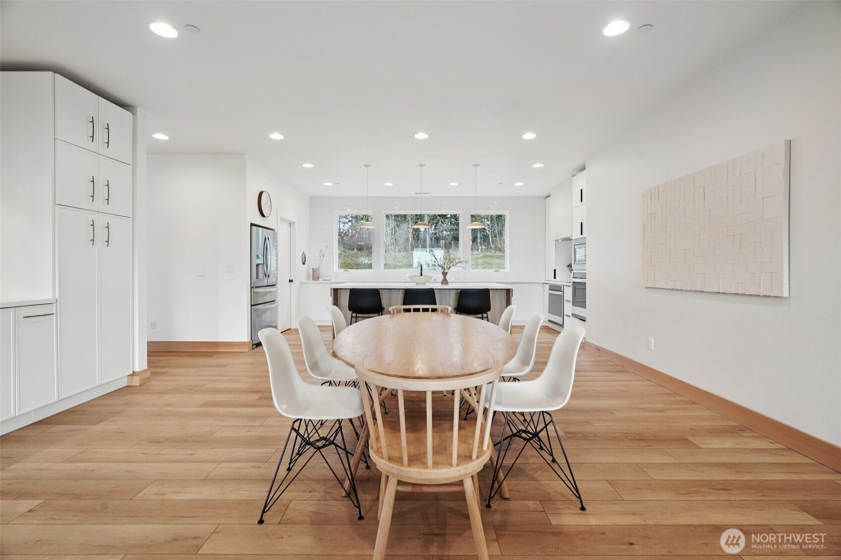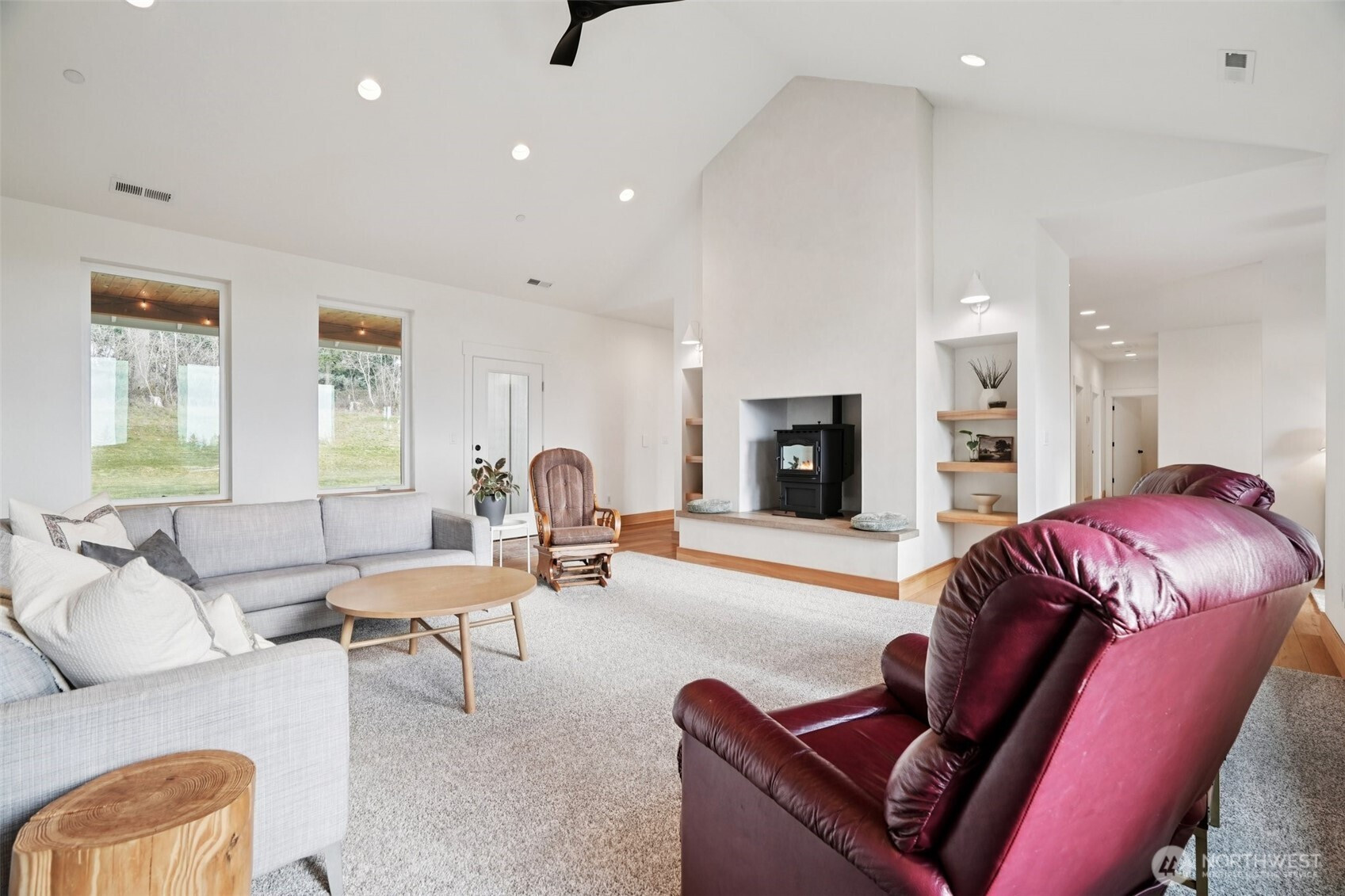 Stunning 2022 custom home offering 3,500 sq ft of thoughtfully designed living space with breathtaking territorial and Columbia River views. This 3-bedroom, 2.5-bath home features over 2,800 sq ft on the main level plus a 672 sq ft second story, creating an ideal layout for both everyday living and entertaining. The heart of the home is the open main living area, complemented by two spacious living rooms—one showcasing soaring vaulted ceilings and a cozy pellet stove. The chef’s kitchen is beautifully appointed with stainless steel appliances, wall oven with built-in microwave, cooktop with hood vent, tile backsplash, pantry, and a large eat-at island. The dining room includes a built-in coffee bar with abundant cabinetry for added storage and convenience. The primary suite is privately located on one side of the home and features a walk-in closet and a luxurious ensuite with soaking tub and walk-in shower. This wing also includes the laundry room and a bonus room currently used as a nursery, perfect for an office or flex space. The opposite side of the home offers two additional bedrooms and a full bathroom complete with a sauna. Upstairs, enjoy a large bonus/playroom plus a separate room ideal for an office, den, or home gym. Additional highlights include a central vacuum system, exceptional storage with numerous cabinets and closets, and covered front and back patios for year-round enjoyment. The landscaped yard features a sprinkler system, tool shed, and access to a peace