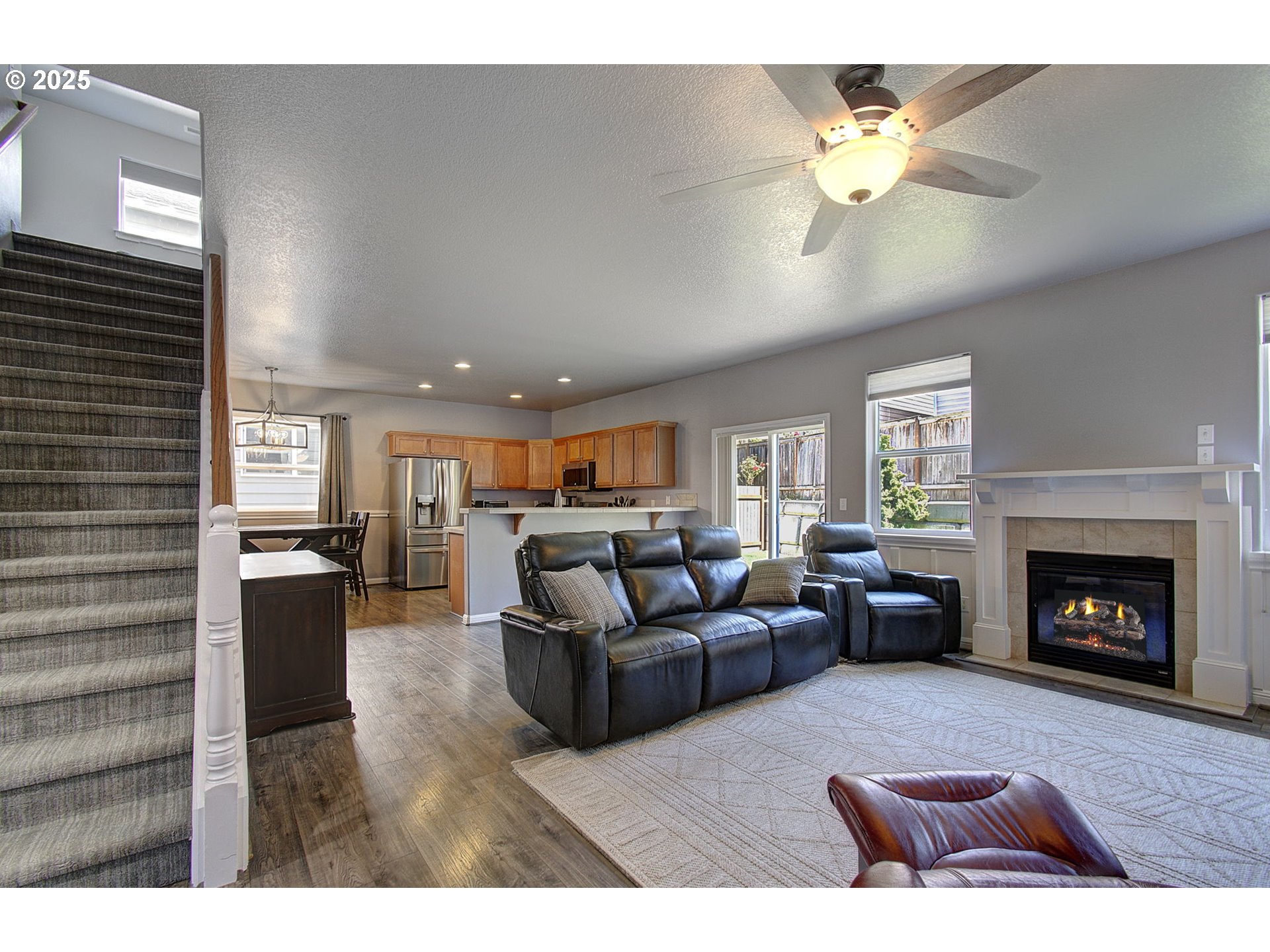 Great Home In Sought After Fisher’s Landing! Home Is Warm And Inviting From The First Step In. This Open Concept Floorplan Includes High Ceilings And Lots Of Natural Light For Comfortable Living. It Features Mohawk Laminate Flooring For Beauty And Easy Care Throughout. Family Room With Gas Fireplace And Sliding Door To Patio. Kitchen Has Tile Countertops, LG Refrigerator, New Samsung Microwave, Built-In Dishwasher, Eating Area, Nice Size Pantry And An Abundance Of Cabinetry. Primary Suite Includes New Vanity, Light And Fixtures, A Soaking Tub And Double Closets. Also Has Access To A Great Deck Surrounded By Trees Providing Shade And Privacy. Extra Storage In Garage With Built-in Shelving Over Door And Full Width Of Garage. Fully Fenced Private Backyard. Freshly Painted Exterior. Located In Close Proximity To Shopping, Dining, Doctors, Bus Lines And Entrance to WA14.
