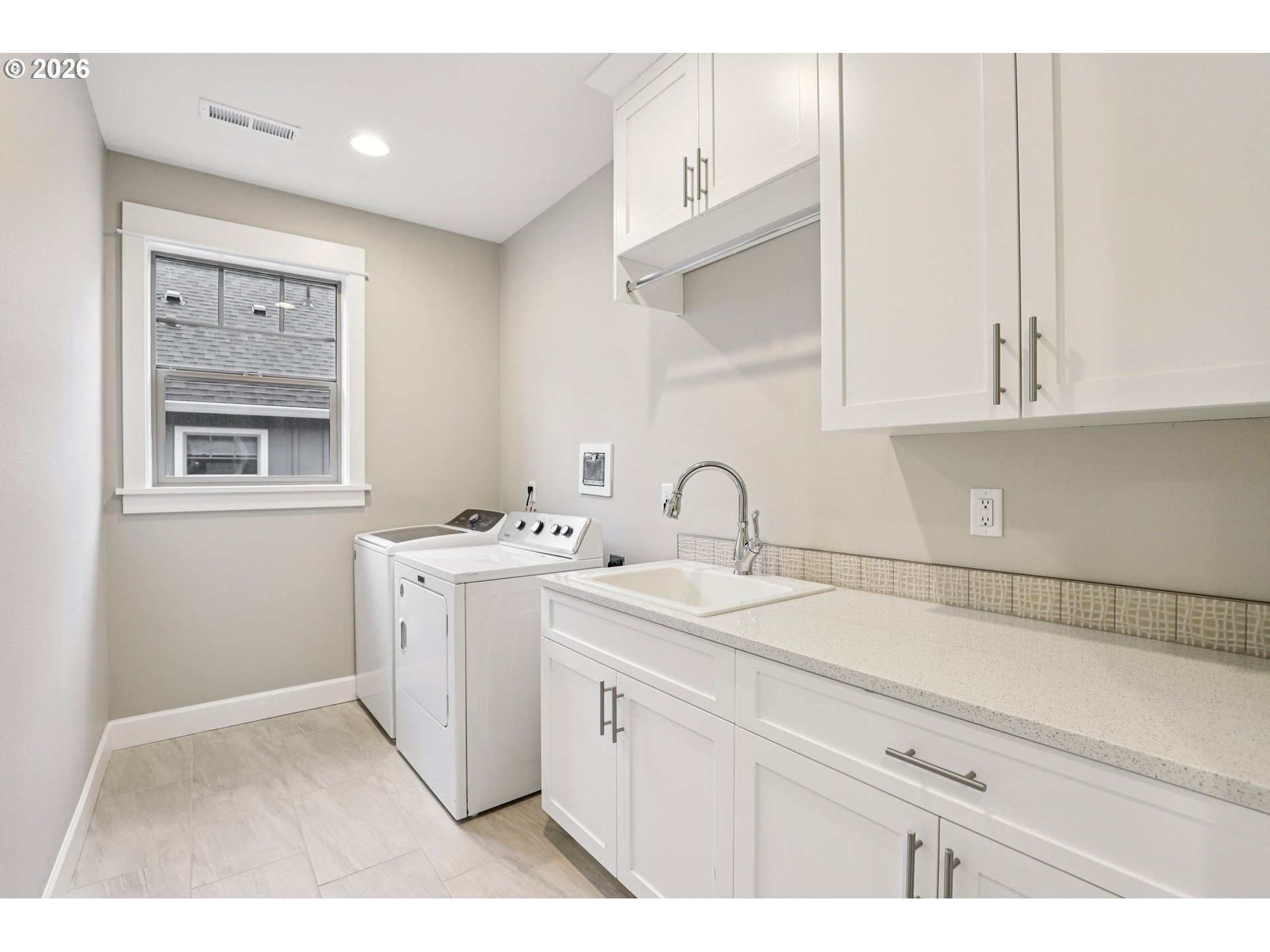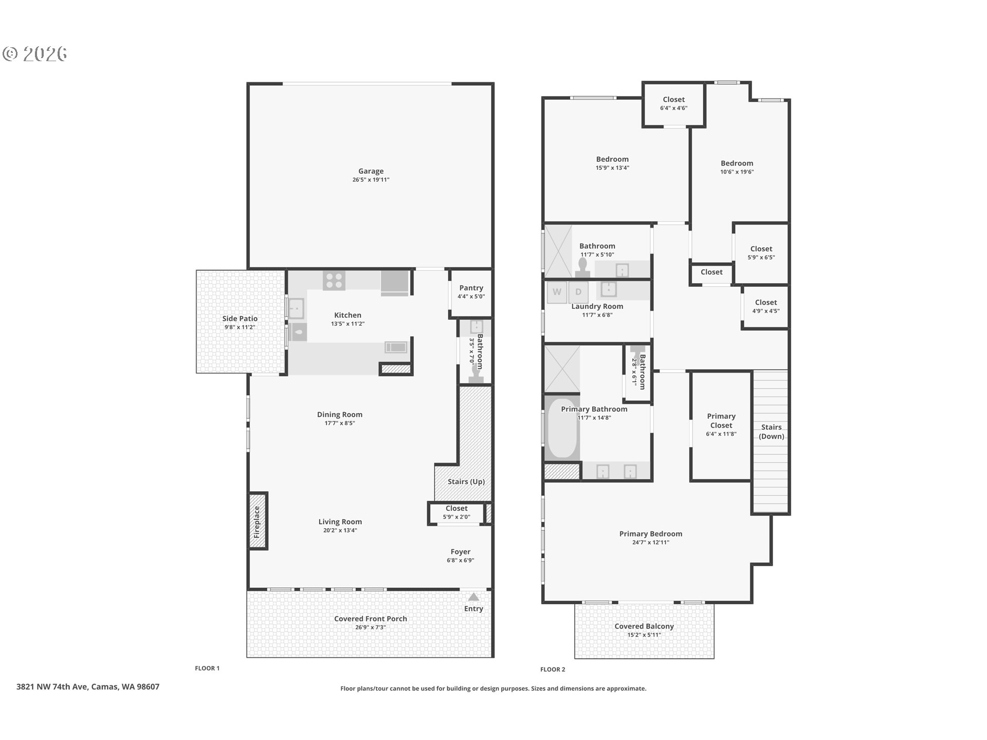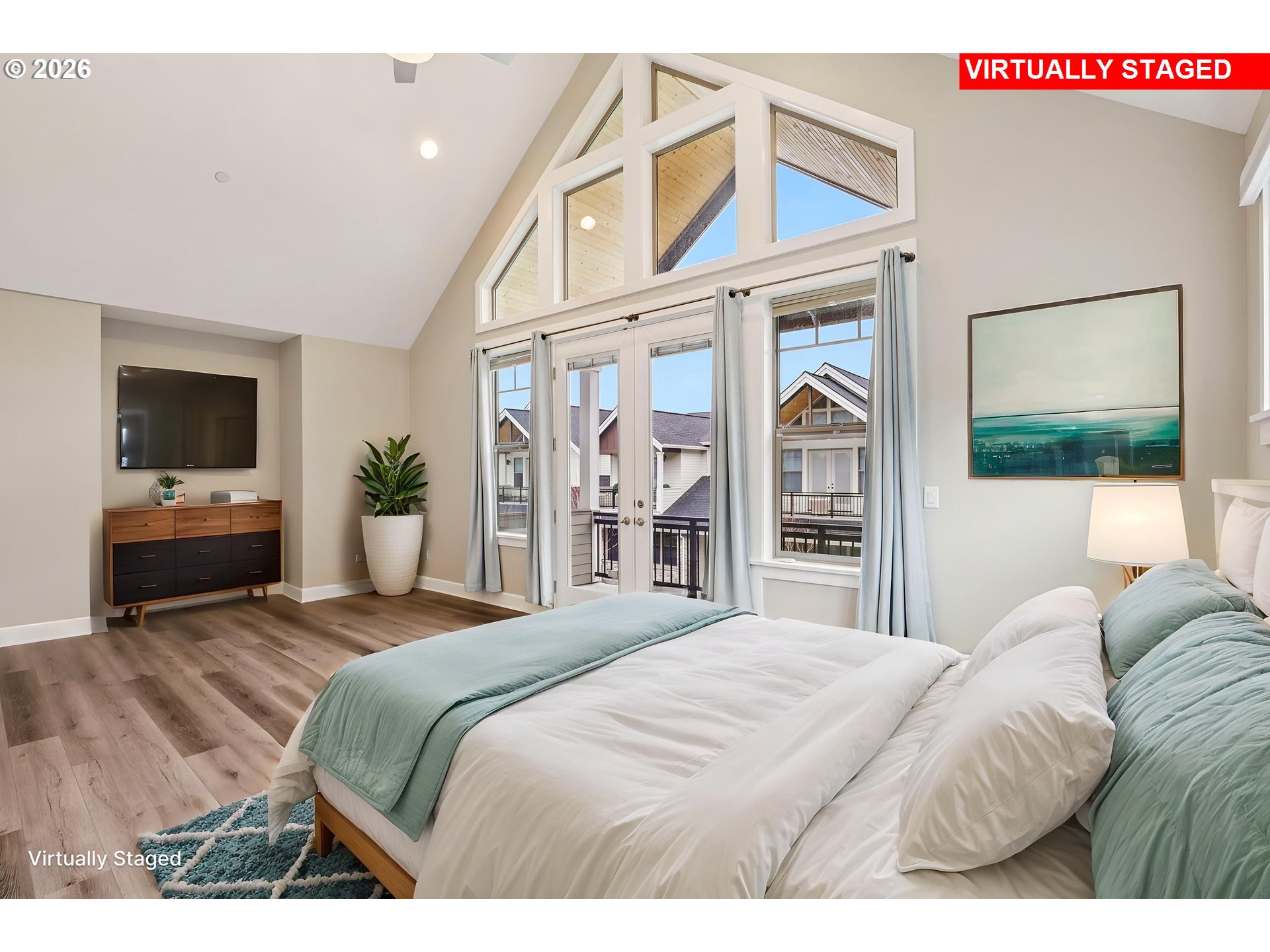 Refined living in the gated community of Two Creeks at Camas Meadows. Thoughtfully designed with expansive living spaces, 10-foot ceilings, and 8-foot doors throughout. A welcoming covered front porch and private two-car alley-access garage enhance both charm and convenience. Wood flooring spans the main level, with carpeted stairs for comfort. The side yard, largest in the community, offers a covered patio and mature landscaping—ideal for quiet mornings or curated garden touches. Upstairs, the primary suite impresses with vaulted ceilings, dramatic floor-to-ceiling windows, a generous walk-in closet, and a well-appointed ensuite. Two additional bedrooms, each with walk-in closets, accompany a functional laundry room complete with storage and utility sink. Residents enjoy premier amenities including pickleball courts, a fitness center, outdoor pool, saunas, hot tub, and meeting space. Direct access to the Lacamas Heritage Trail and effortless proximity to Camas Meadows Golf Course.