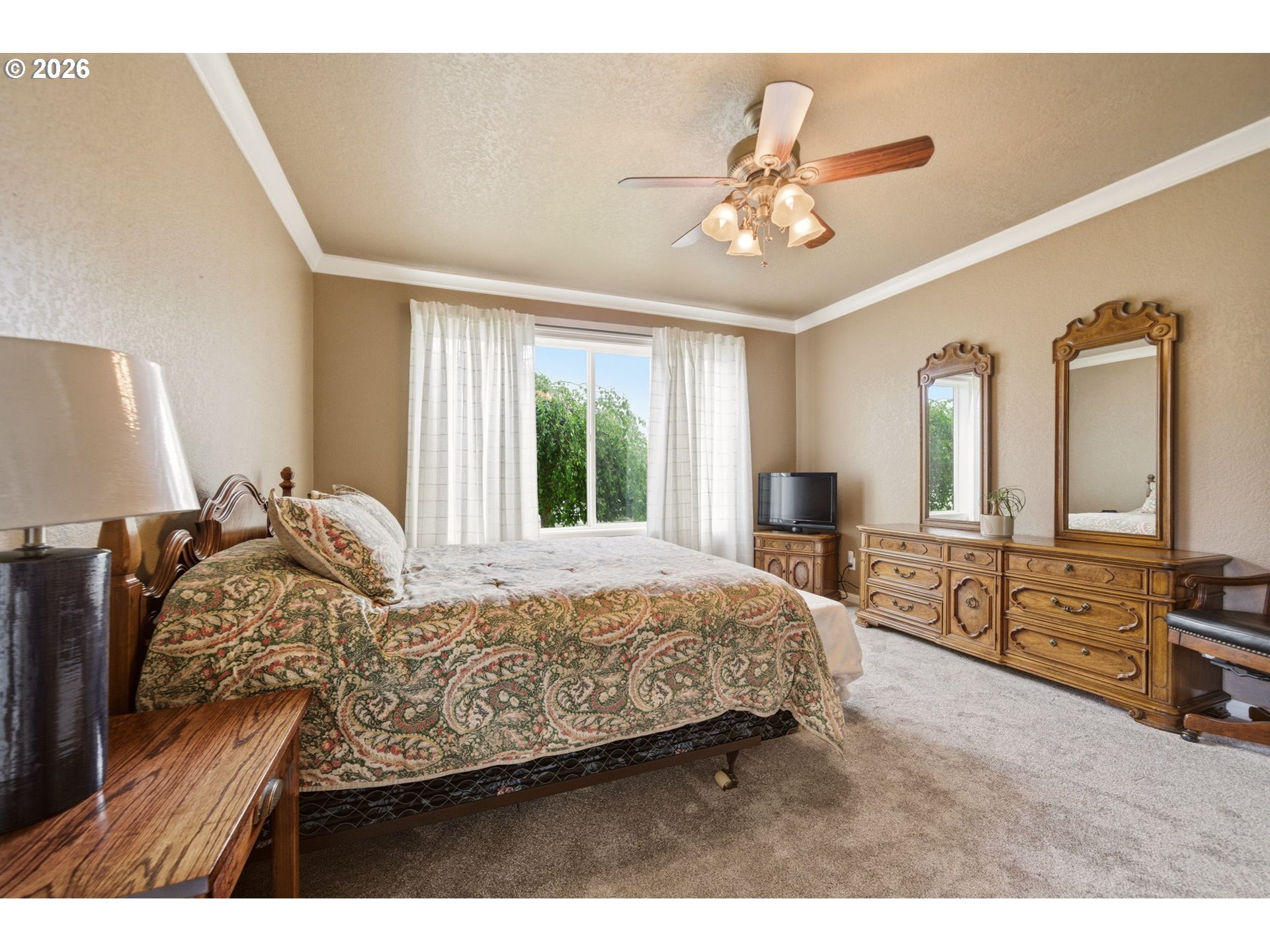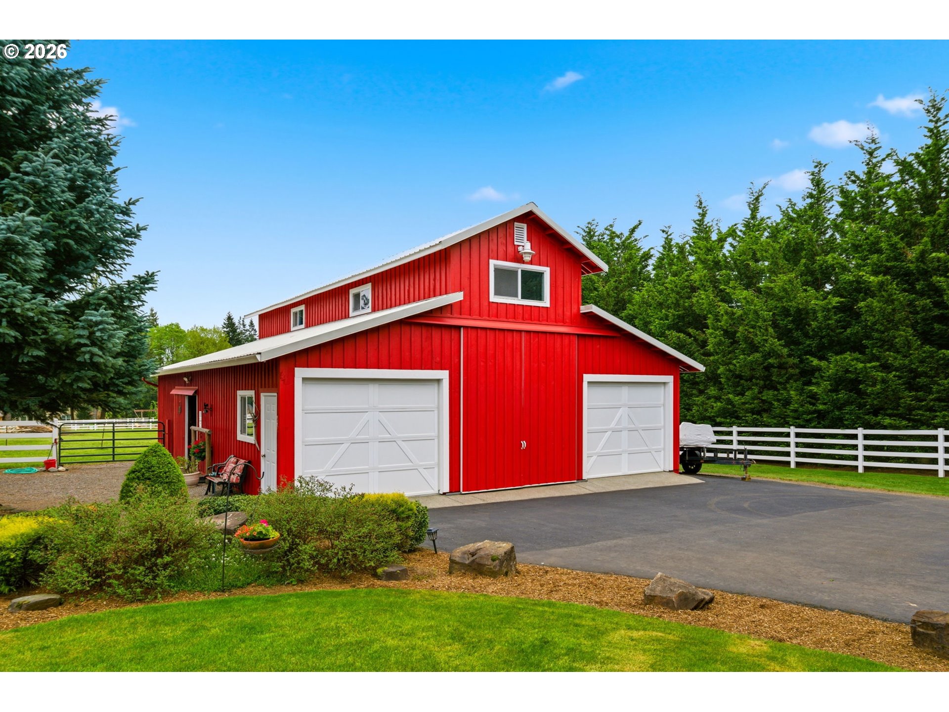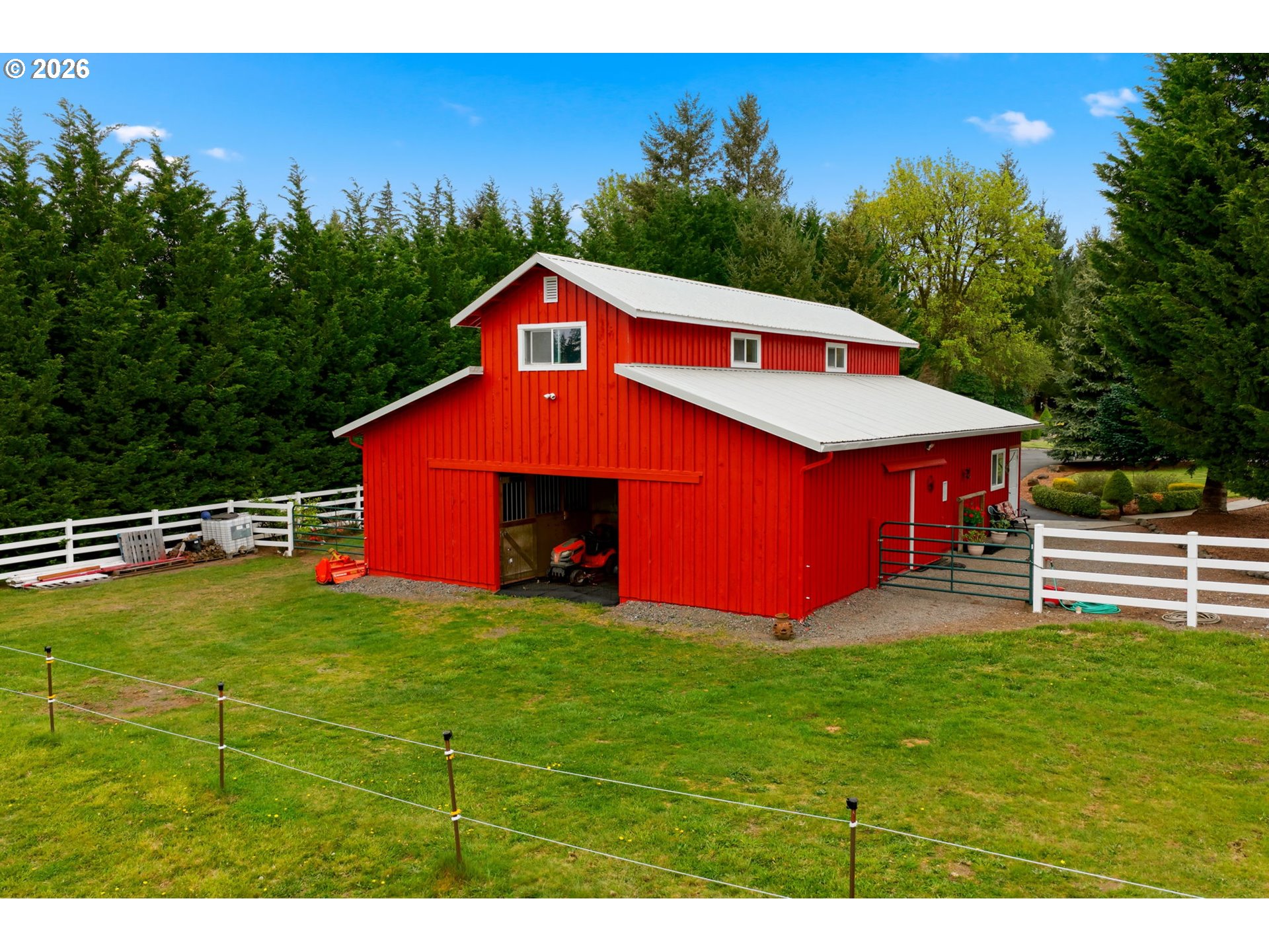 (503) 893-8874Welcome to this stunning equestrian estate—an exceptional retreat nestled within a beautifully maintained community. A gated entrance offers privacy and sets the tone for a perfect blend of luxury, functionality, and pastoral charm. Situated on five flat, fully usable acres, this horse-ready property features elegant four-rail fencing, two expansive pastures, and a well-designed paddock. The grounds are lush and thoughtfully landscaped with a five-zone sprinkler system and dedicated garden area with raised beds. The beautifully updated 3-bedroom, 2.5-bath home offers warmth and style, with a new roof, carpet, updated countertops and backsplash, modern lighting, and newer appliances—truly move-in ready. The main-level primary suite includes a jetted tub, while the vaulted great room with a wood-burning fireplace opens to a spacious patio with pergola, ideal for entertaining. A formal dining room, dedicated office with hardwood floors, inviting kitchen with eat bar and breakfast nook, mudroom, and attached two-car garage complete the main level. Upstairs offers two additional bedrooms and a versatile bonus room. The impressive three-bay barn/shop features an oversized 11.5-foot door, 220-volt power, and insulated ceilings and floors. The rear includes two plumbed horse stalls, a wash area, ample storage, and a large hay loft—perfect for equestrian living. This property offers the ideal combination of comfort, space, and equestrian excellence.