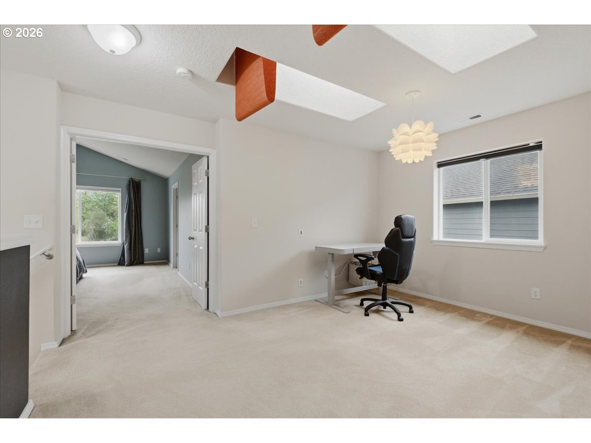 Sparkling clean and move-in ready in desirable Greens at Deer Creek! This tidy home features a spacious great room concept that seamlessly connects the family room, dining area and kitchen. The kitchen is equipped with a gas range, Viking refrigerator, large sink and generous pantry. Upstairs, the vaulted primary suite offers a relaxing retreat with dual sinks, a walk-in shower, soaking tub, and walk-in closet. Two additional bedrooms each include walk-in closets, and the versatile loft provides flexible space for a home office, media area or playroom. An upper-level laundry room adds everyday convenience.Enjoy year-round comfort with central air conditioning. The fully fenced backyard features a new composite deck, shed and direct access to the walking trail. The two-car garage includes an EV charger. HOA amenities cover front yard landscaping and offer access to tennis courts, walking trails and playgrounds. All appliances are included!