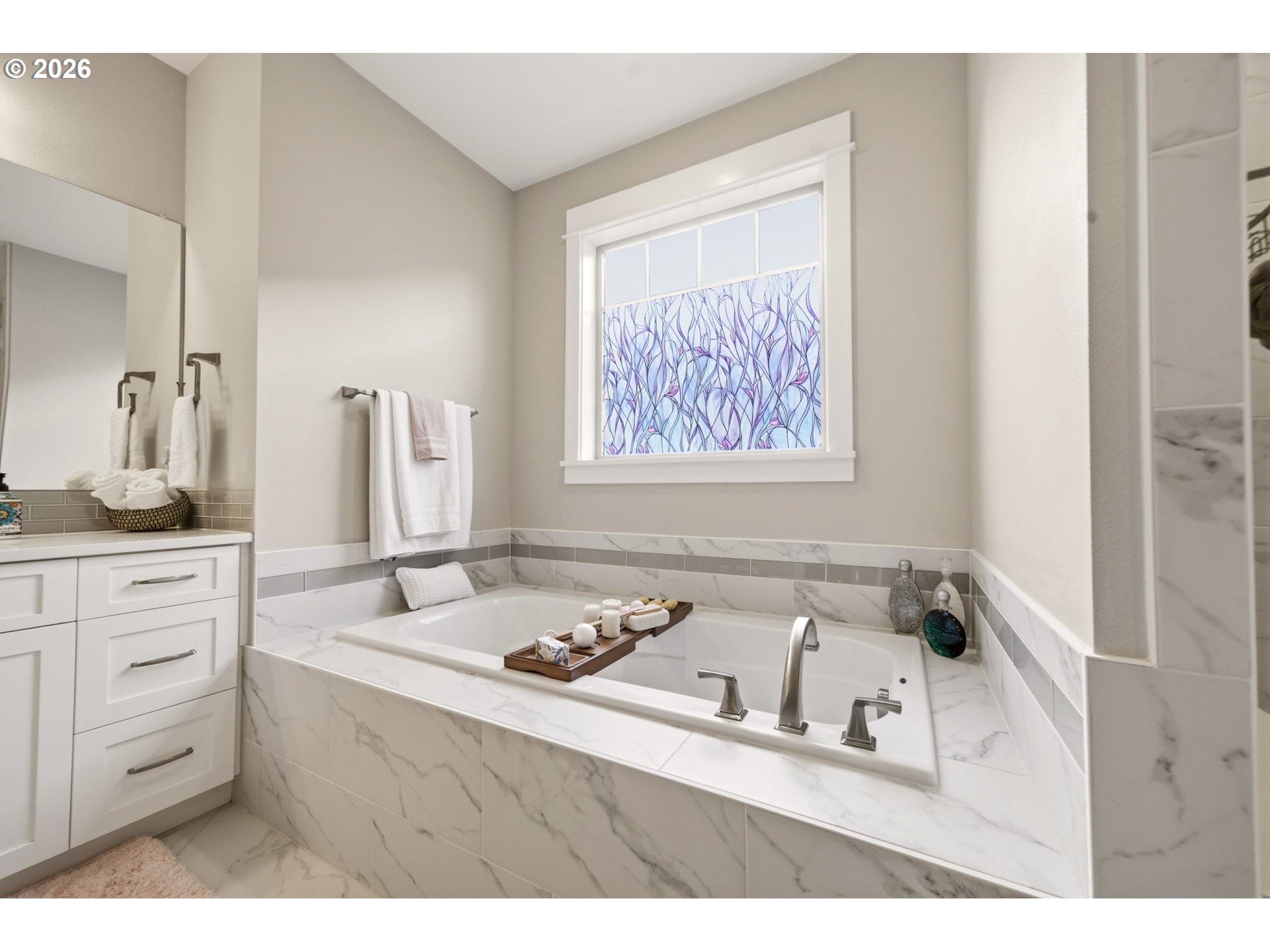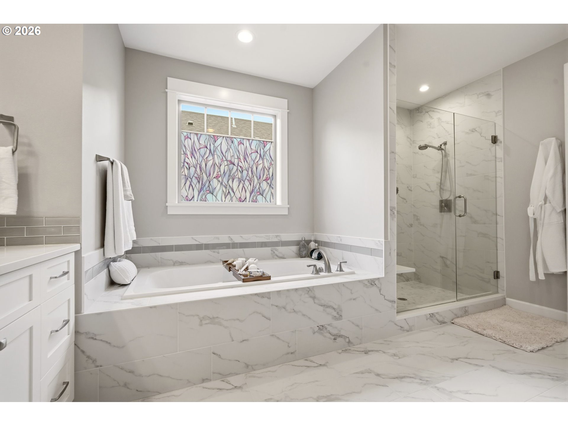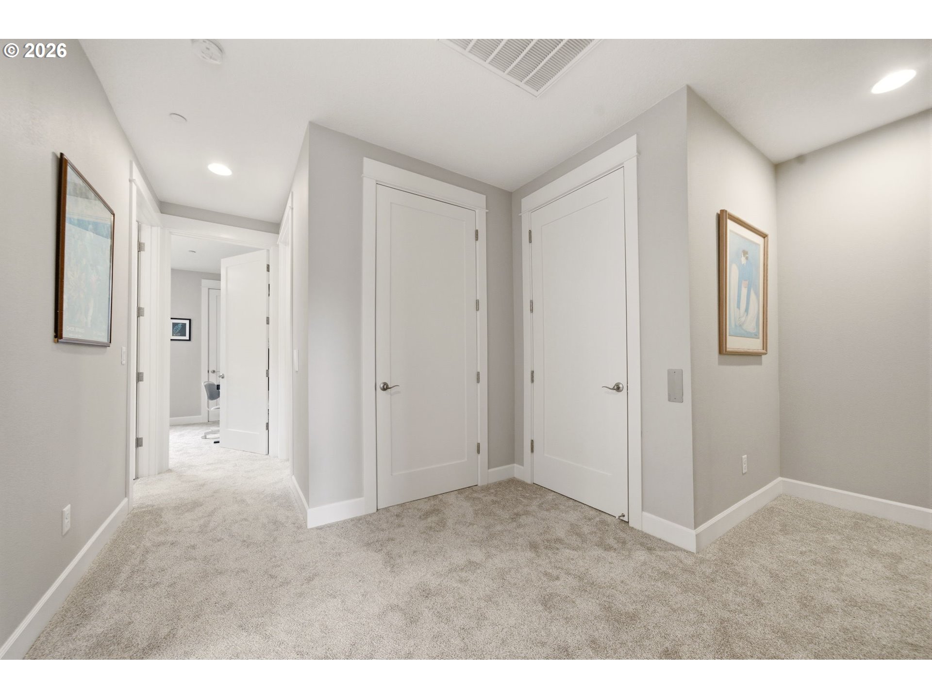 Welcome to this lovely, light filled, south-facing home in the much sought after Two Creeks at Camas Meadows Condo Development. Designed with comfort and elegance in mind, this home features 10-foot ceilings, engineered wood floors, custom built-ins and a beautiful stone gas fireplace. The chef’s kitchen offers generous counter space and state-of-the-art stainless-steel appliances, including a 5-burner gas range, a walk-in pantry and a reverse-osmosis water filtration system. The oversized primary suite is a sanctuary of comfort and style, featuring a generous walk-in shower, a luxurious soaking tub, and an expansive walk-in closet. The primary suite also features an added sitting area with double doors leading out to your vaulted covered balcony. Additional bedrooms both have spacious walk-in closets. The laundry room is centrally located close to all 3 bedrooms. Fresh, brand-new carpeting has just been installed throughout the upper level and stairs. The home has a fenced in patio off the kitchen. It is also plumbed for an elevator and central vacuum system. This home is less than 5 years old. This community features recreation at its Best! Enjoy your leisure time with on-site pickleball courts. Take a dip in the swimming pool on warm summer days, unwind in the sauna, or soak away stress in the hot tub. Nature enthusiasts will adore the private gate to the Lacamas Heritage Trail, allowing you to connect with the great outdoors right from your doorstep. Also, you will be within walking distance to Camas Meadows Golf Course. This home represents a rare opportunity to own a slice of paradise in an exclusive gated community. Impeccable design, upscale amenities, and a prime location combine to create an unparalleled living experience. Schedule a viewing today to experience the luxury and comfort this one-of-a-kind condo has to offer. Your dream home awaits!