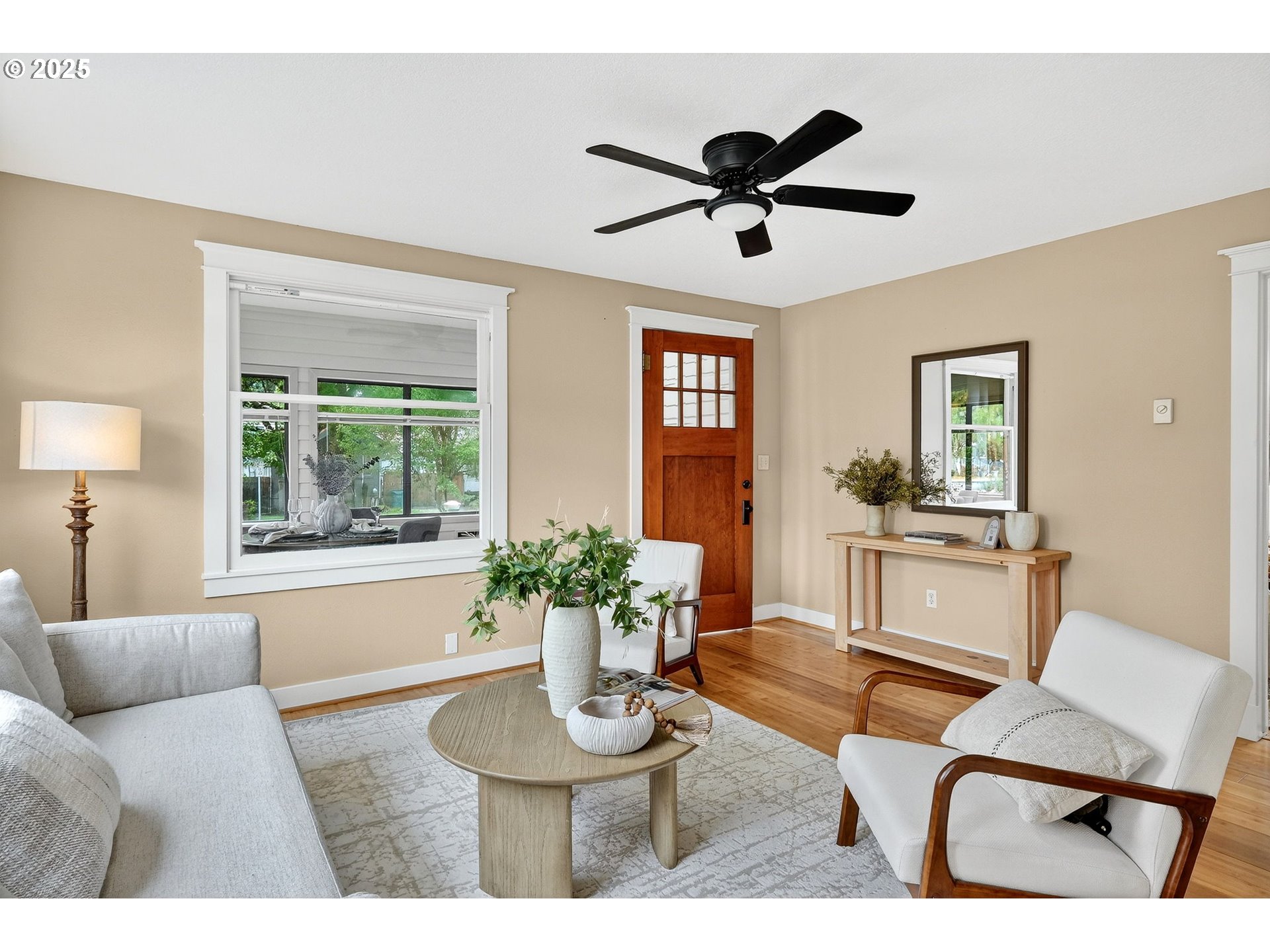 Located in the Hough Neighborhood, this charming Craftsman Bungalow sits on a corner lot conveniently located just blocks from Main st shops, restaurants and New Seasons Market. With driveways on each side of the house, enjoy ample off street parking as well as a large 3 car garage. A large living room is a great place to gather as well as a terrific sunroom off of the front of the house. The front bedroom has an additional space that can easily be used for an office. The unfinished basement has great possibilities and could easily be finished for additional living/ hobby space.