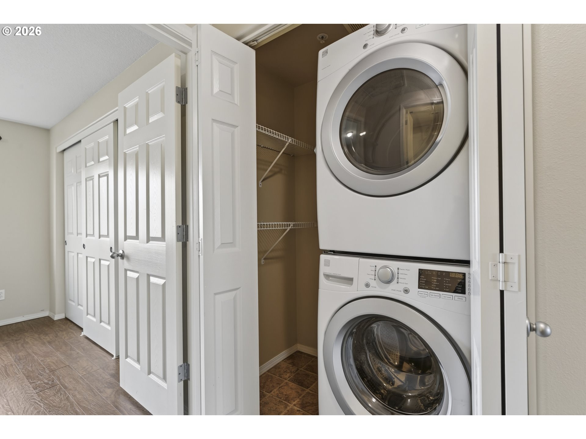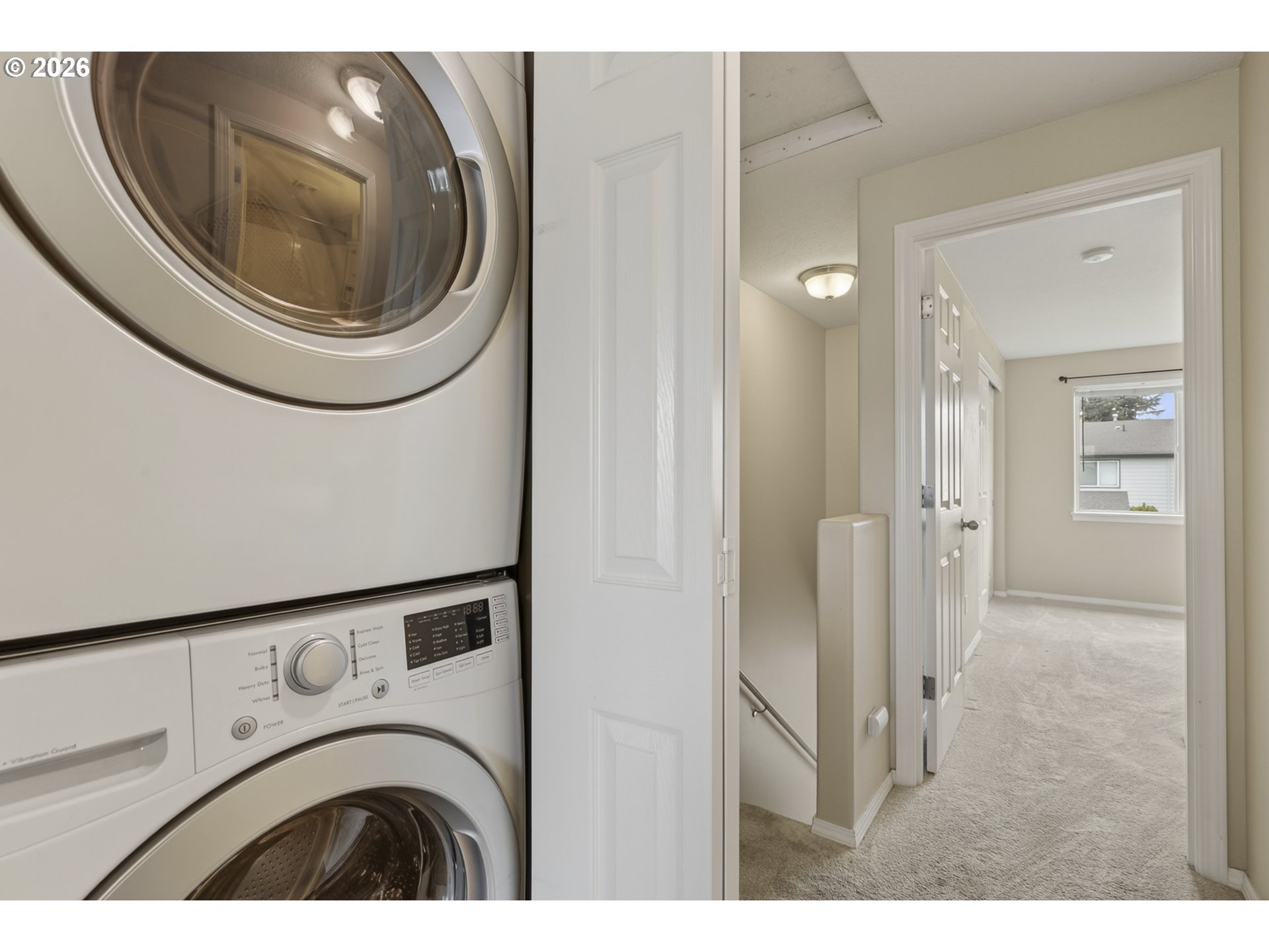Welcome home to this beautifully maintained and move-in-ready townhome offering comfort, space, and functionality in a peaceful setting. The light-filled main level features an open-concept layout with warm hardwood floors, a cozy gas fireplace, and seamless flow into the kitchen and dining area—perfect for both everyday living and entertaining. The kitchen is well-appointed with ample cabinetry, generous counter space, and a convenient breakfast bar, all overlooking the dining area with sliding glass doors leading to a private patio space. Enjoy easy indoor-outdoor living with room to relax, garden, or host. Upstairs, you’ll find well-sized bedrooms, 2 full baths, and the convenience of in-unit laundry. The home offers excellent storage throughout and a thoughtful layout that maximizes space and livability. Additional highlights include a detached garage, dedicated parking, and a backyard gate to the quiet community setting surrounded by mature trees and green space. Ideally located with easy access to shopping, dining, and commuter routes—this is low-maintenance living at its best. Don’t miss this opportunity to own a well-cared-for home in a desirable location!
