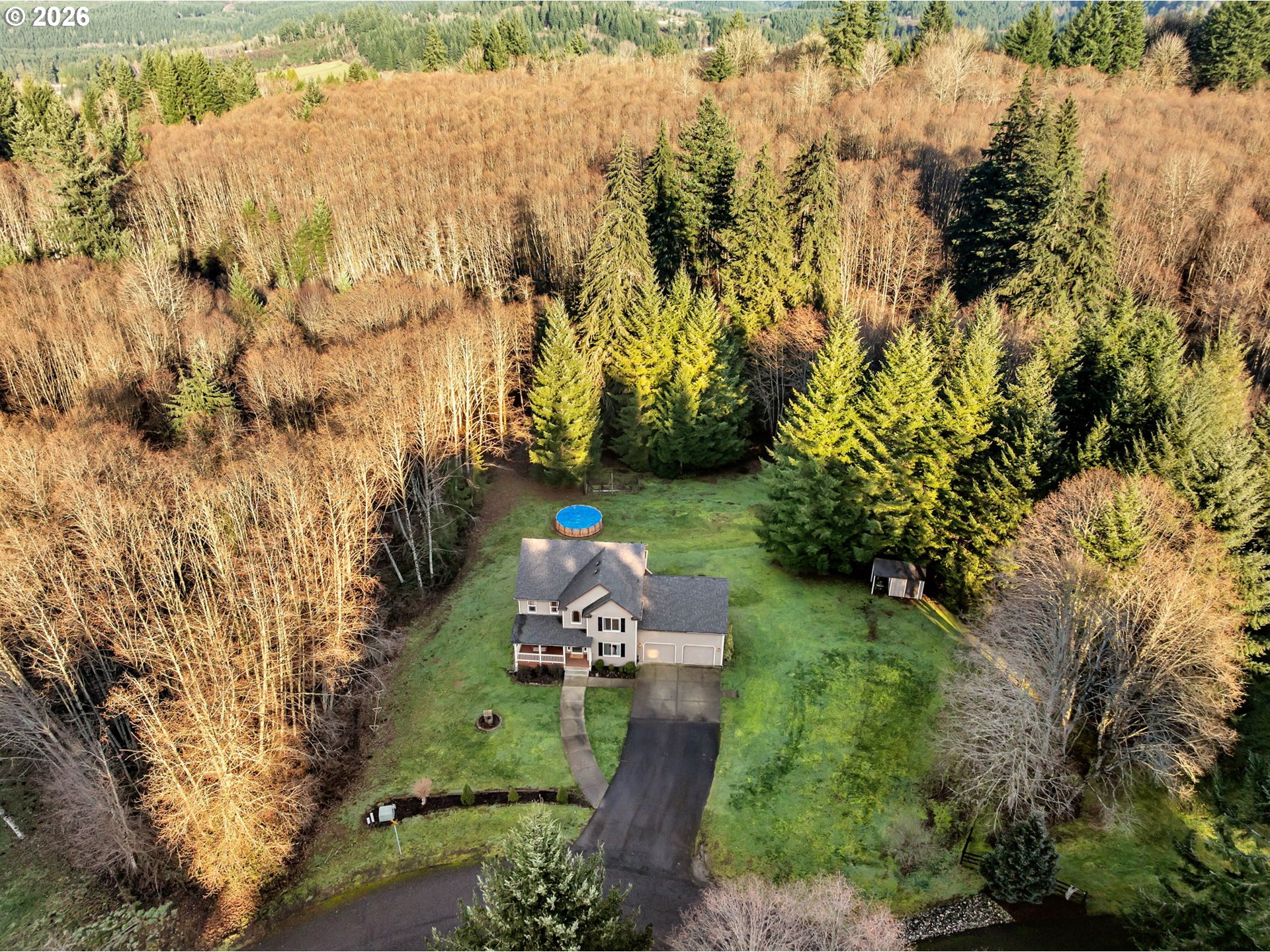 (503) 893-88741 acre slice of property with a tastefully remodeled home. Gently rolling property with garden area, separate tool shed and above ground pool leading to a seasonal creek. Find yourself able to relax at home with a new roof, new HVAC, recently inspected and pumped septic system, new kitchen appliances, and new interior paint and newer carpet. Main level features easy care LVP flooring, propane fireplace, remodeled kitchen (new appliances, cabinets, counters, backsplash, under cabinet lighting), and formal living and dining spaces. Upstairs Primary suite with vaulted ceiling, modern fixtures, jetted tub, dual sinks and walk in closet. Additional 3 bedrooms upstairs with 1 of 2 laundry rooms upstairs. Travel down to the basement for a 5th bedroom, bonus area, another flex space, 2nd laundry area, full bathroom, sauna and walk out to lower level patio.