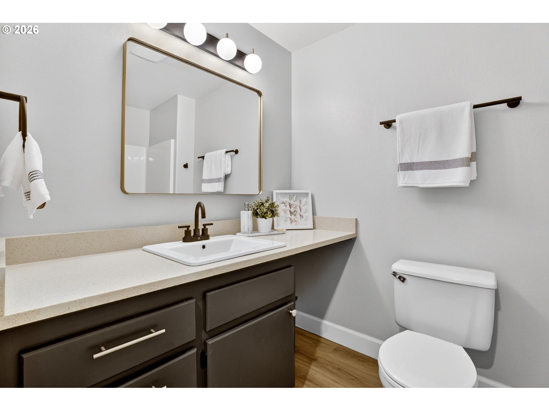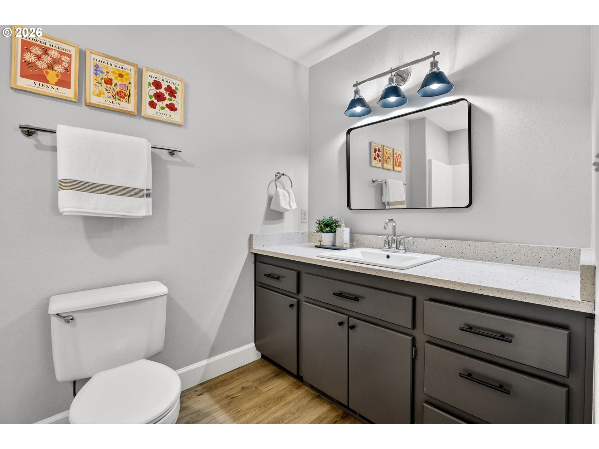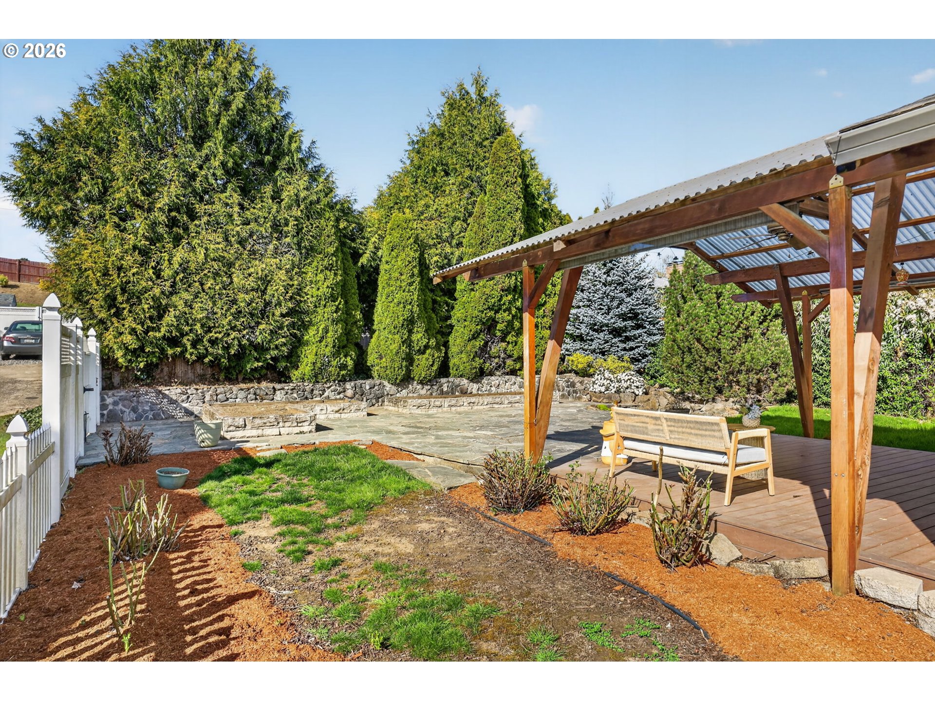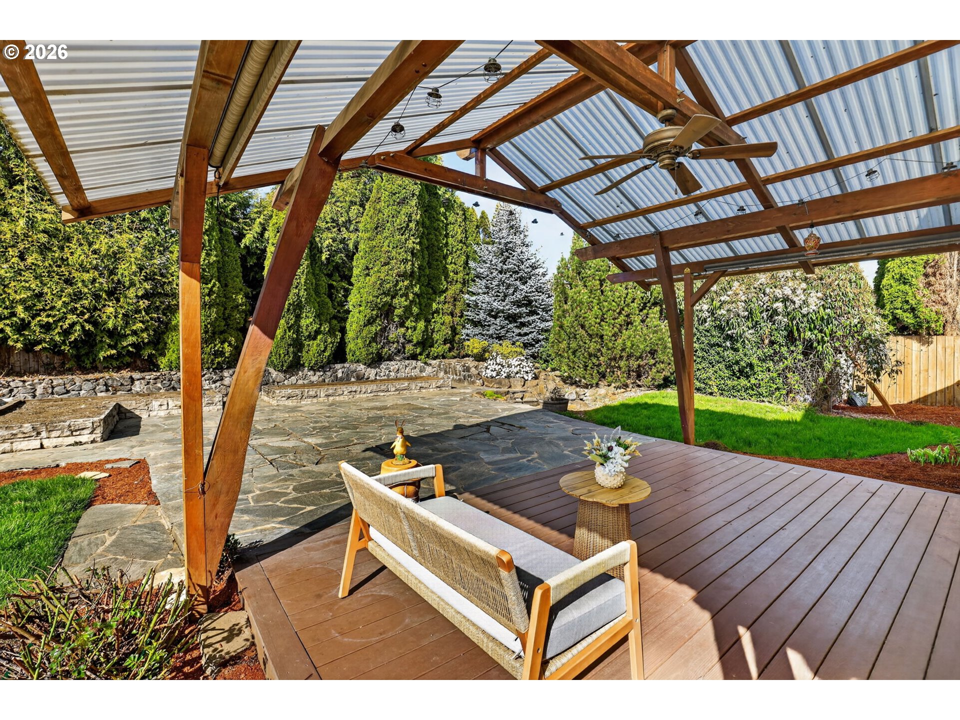 Step into a welcoming entry hallway that opens into a light-filled, thoughtfully designed one-level home.You are welcomed by a spacious great room featuring a wall of windows that fills the space with natural light—an incredibly ideal for a home office, bonus room, or additional family living space. The spacious living room features vaulted ceilings, a cozy gas fireplace, and large sliding doors that seamlessly connect indoor and outdoor living—creating an inviting space perfect for both relaxing and entertaining. The updated kitchen sits at the heart of the home, showcasing quartz countertops, a large eat-in bar, and stainless appliances, all designed for modern living and everyday convenience. Adjacent to the kitchen, a flexible living and dining area offers additional space for gatherings, quiet evenings, or a home office setup. The home flows effortlessly into three well-proportioned bedrooms, including a spacious primary suite that provides a comfortable and private retreat. Each room is filled with natural light, enhancing the home’s warm and cozy atmosphere. Step outside to a beautifully maintained, flat backyard—ideal for outdoor enjoyment. The yard features fresh mulch, defined flower beds, raised garden boxes for gardening enthusiasts, and a covered patio overlooking a custom waterfall pond that creates a peaceful, Zen-like setting. The expanded driveway provides extra parking for convenience. Located in a quiet, peaceful neighborhood close to local shops, dining, entertainment, highly regarded schools and NO HOA. This home offers the perfect blend of comfort, functionality, and modern living.Additional highlights include fresh interior paint, luxury vinyl flooring, updated fixtures, a recently serviced HVAC system, and cleaned gutters.