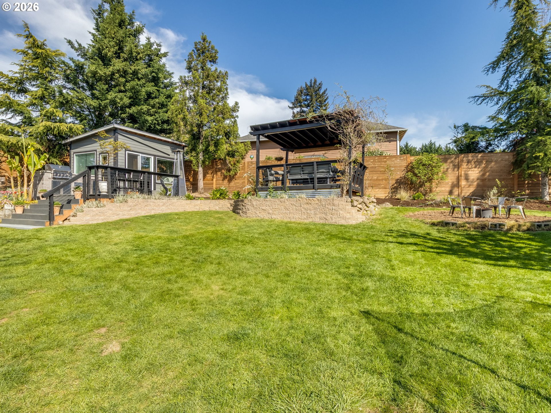 (503) 893-8874Welcome to 4035 SE 199th Ave in Camas, where thoughtful updates, flexible living space, and exceptional outdoor features come together. This well-maintained home offers approximately 2,365 square feet with 4 bedrooms and 2.5 bathrooms on a generous 0.29-acre lot. Inside, you will find a functional layout designed for everyday living, complemented by upgrades such as a reverse osmosis water filtration system, smart thermostat, WiFi-enabled garage door openers, and a Bluetooth-enabled ceiling speaker in the primary bathroom. The outdoor space is a standout feature. The property includes mature, producing plants such as fruit trees, berries, and herbs, along with raised garden beds and a dedicated drip irrigation system. Two decks, an outdoor kitchen area, fire pit, and a pond with waterfall create multiple options for enjoying the space throughout the year. A beautiful backyard shed provides additional flexible space. This structure is not an accessory dwelling unit, buyer to do due diligence. Additional features include automatic sprinklers in the front and back, a rainwater collection system, garage and attic storage, a Level 2 EV charger, and electrical readiness for a hot tub. Conveniently located with easy access to shopping, Highway 14, and the Camas School District.Western-facing views provide beautiful sunset exposure, with visibility toward the Portland skyline. A combination of usable space, established landscaping, and practical upgrades makes this property a unique opportunity in Camas. New roof installed in 2022.
