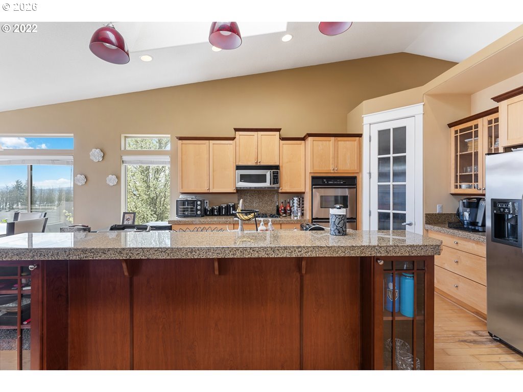 Awesome ranch style home with Columbia River and Mount Hood views. restored wood floors, lots of windows with tons of natural light, vaulted ceilings, wide entry fireplace and large deck.Owners suite opens directly to dec. Three bedrooms , plus a possible lower bedroom, work space or movie room and full bathroom. This is a great home in a fabulous neighborhood.