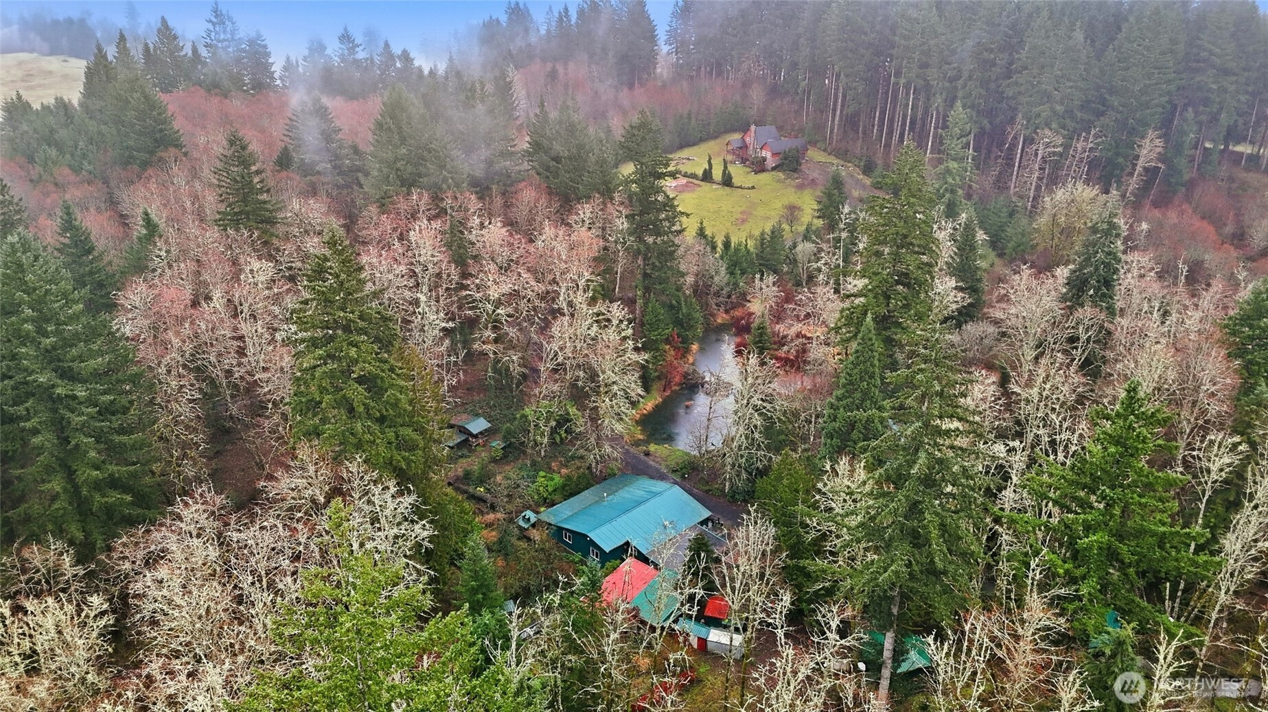 Tucked deep within the evergreens, this extraordinary 10-acre sanctuary offers unmatched privacy, natural beauty, and a sense of peaceful seclusion that’s increasingly rare. Centered around a scenic pond and surrounded by mature forest, the property feels like its own private nature preserve—an ideal setting for anyone seeking space to breathe, create, or simply escape. Once home to intimate nature retreats, the land is thoughtfully developed with a collection of charming and functional outbuildings and a 2 bedroom single level home just waiting to be brought back to life. Detached guest quarters provide comfortable accommodations for visitors, while multiple sheds and a well-designed greenhouse support gardening, hobbies, or off-grid aspirations. Outdoor bathrooms, walking bridges, and meandering trails weave through the landscape, inviting exploration and connection with the outdoors. A spacious shop/storage building adds versatility for equipment, projects, or future expansion. Every structure blends into the environment, enhancing the property’s retreat-like atmosphere without disturbing its natural harmony. Whether you envision a private homestead with the current home being wired to a Generac generator, a creative getaway, or a place to host gatherings surrounded by nature, this property offers a rare combination of infrastructure, tranquility, and untouched beauty. It’s more than land—it’s a lifestyle, ready for its next steward. Buyer to do due diligence.
