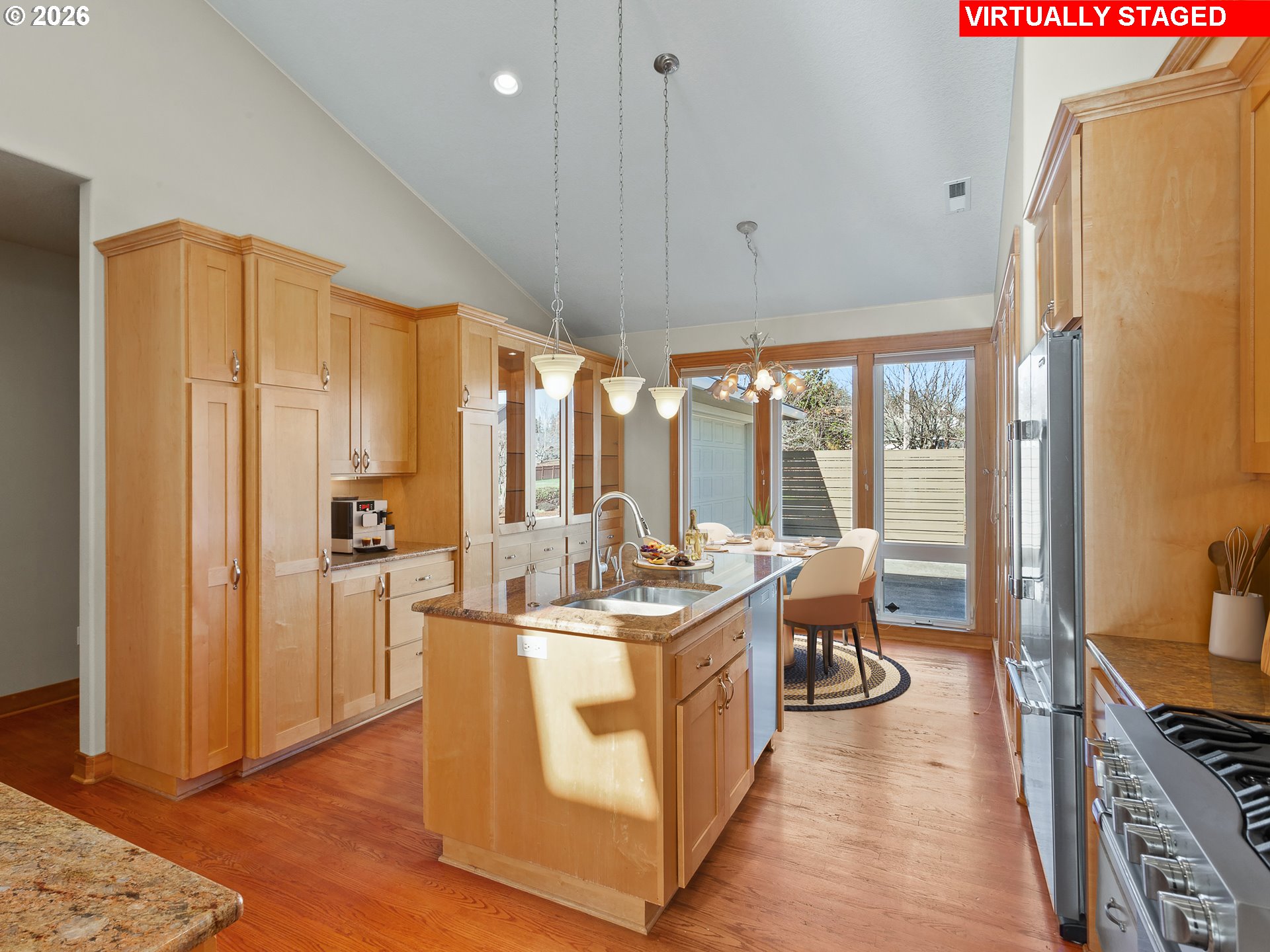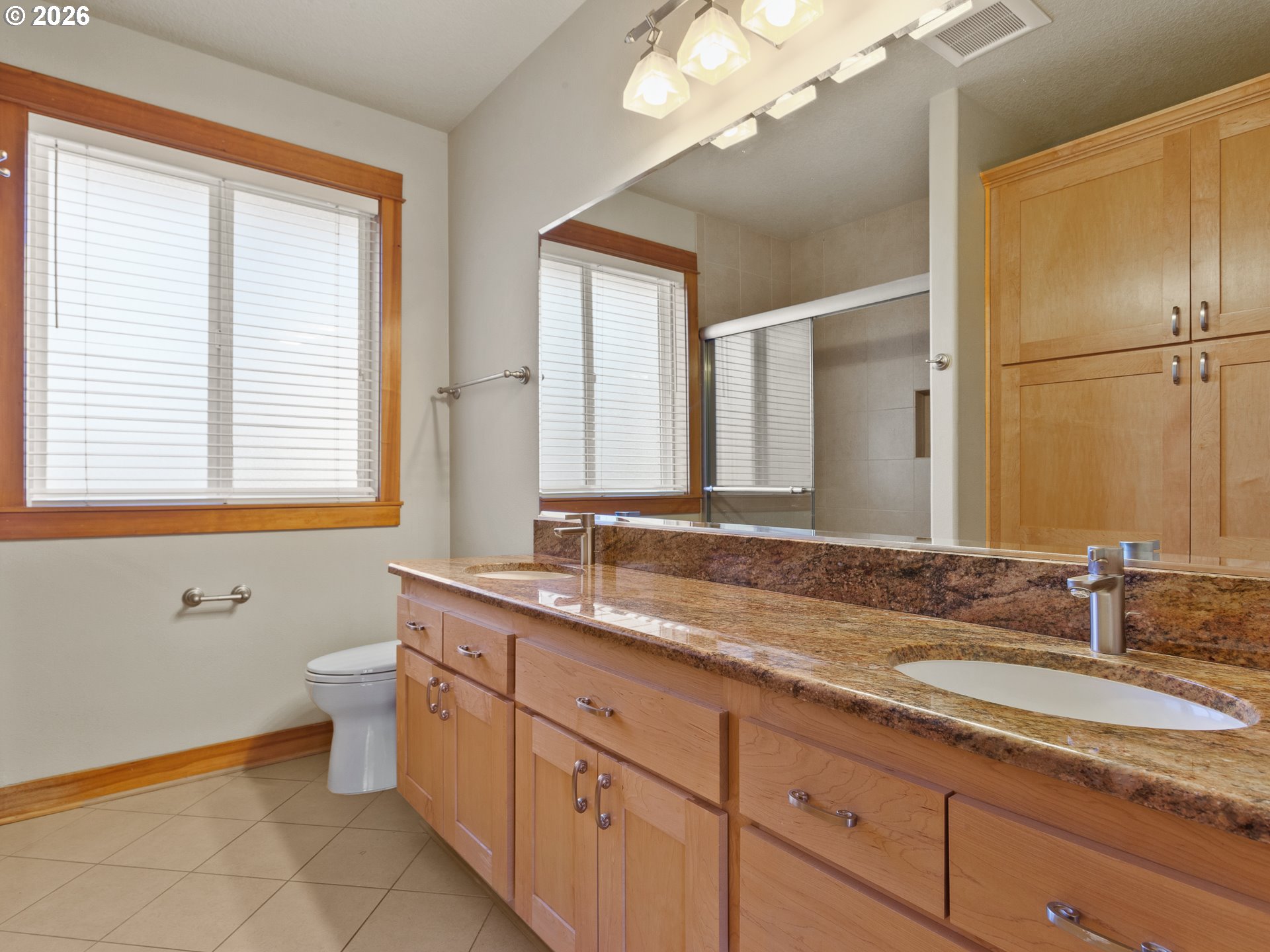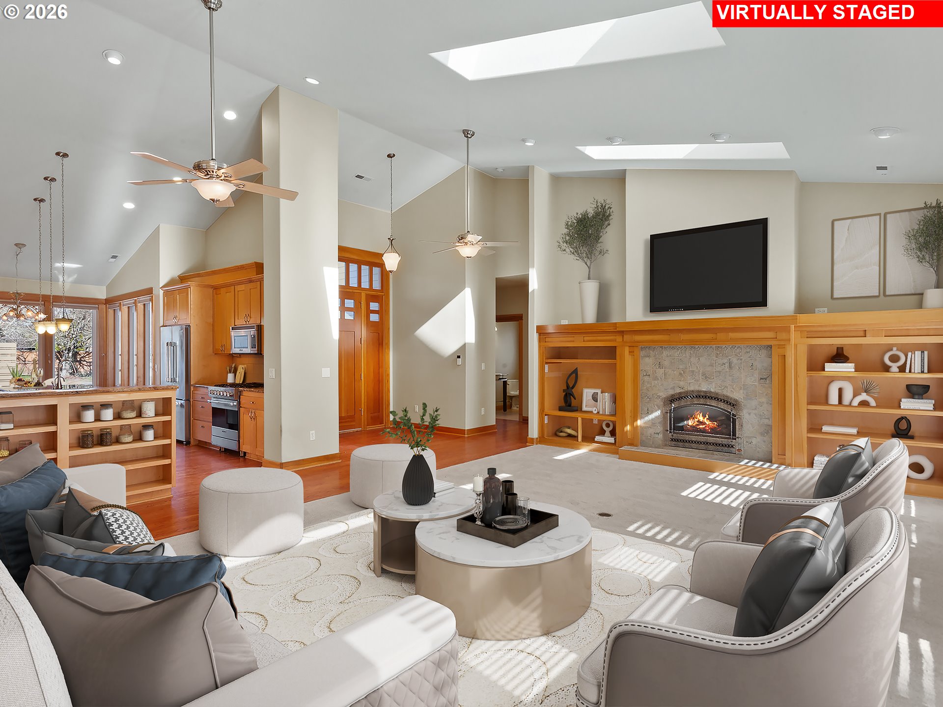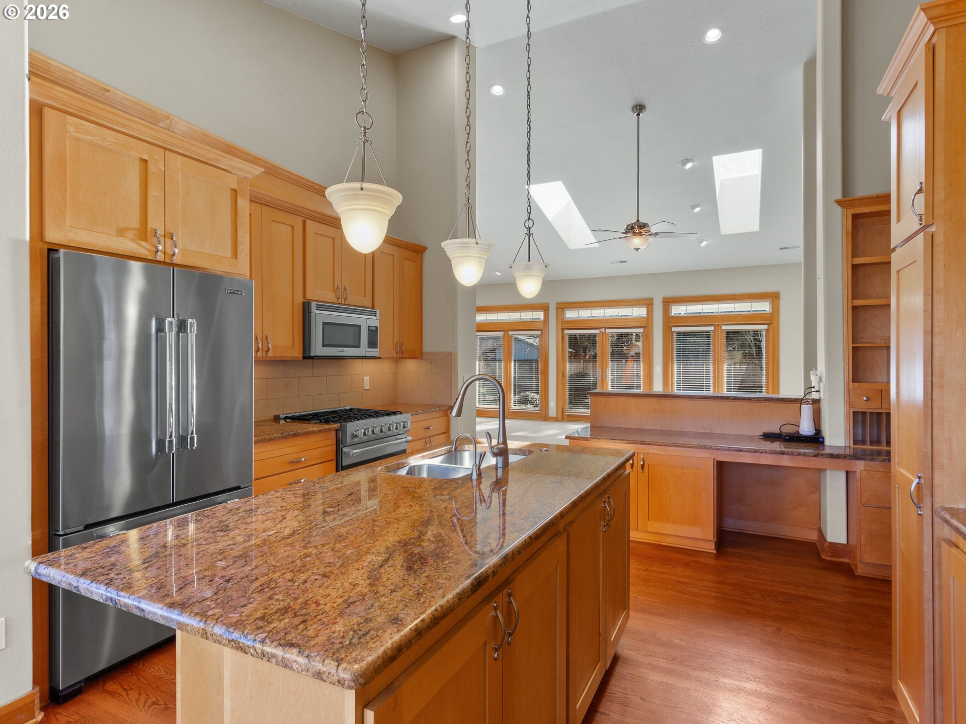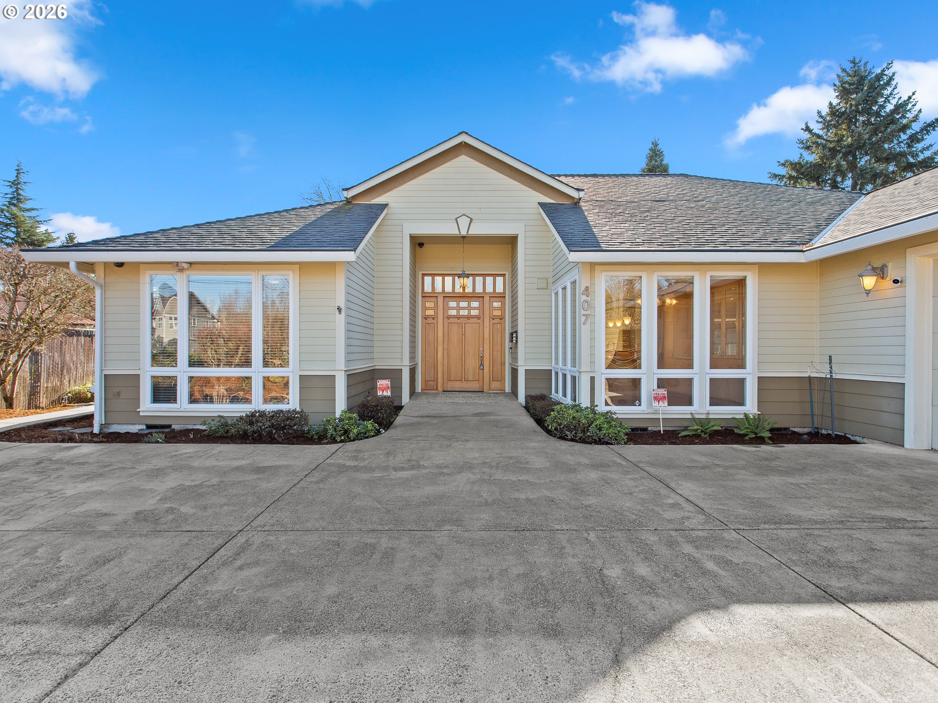 (503) 893-8874Quality abounds in this exceptional single-level home offering 4 BRs & 3.5 BAs on a professionally landscaped .39-acre lot. Blending Northwest Craftsman style with a thoughtfully designed floorplan, this home delivers space, privacy, upgraded finishes, and effortless one-level living. A grand entry opens to the vaulted great room anchored by a high-end gas FP with custom built-ins. Skylights and a wall of windows flood the space with natural light. A centrally located dining area connects seamlessly to the great room and kitchen. New carpet in the great room and dining room complements the hardwood floors, while wide hallways and doors enhance comfort and livability. The kitchen offers ideal separation while remaining connected to main living spaces. Extensive cabinetry, granite countertops, and premium stainless built-in appliances—including a Viking range, built-in refrigerator, and microwave—elevate the space. A window-wrapped nook provides the perfect spot for casual dining. The bedroom layout is both unique and flexible, featuring two spacious primary suites on opposite sides of the home—ideal for guests or multi-generational living. Both include sitting areas, walk-in closets, patio access, and baths with granite counters and great storage. A third bedroom includes its own ensuite bath, while a fourth bedroom—complete with floor-to-ceiling bookcases and windows—makes an ideal office, library, or guest retreat. Enjoy seamless indoor-outdoor living with a covered patio that opens to a stone terrace and professionally landscaped backyard featuring winding paths and a decorative bridge over dry river beds. A large concrete driveway provides ample parking, and the deep two-car garage offers storage, natural light, and workspace. Extensive built-ins and a laundry room with utility sink add everyday functionality. Rarely does a home combine single-level living, flexible suites, craftsmanship, and nearly .4 acres of landscaped grounds. A truly special opportunity.