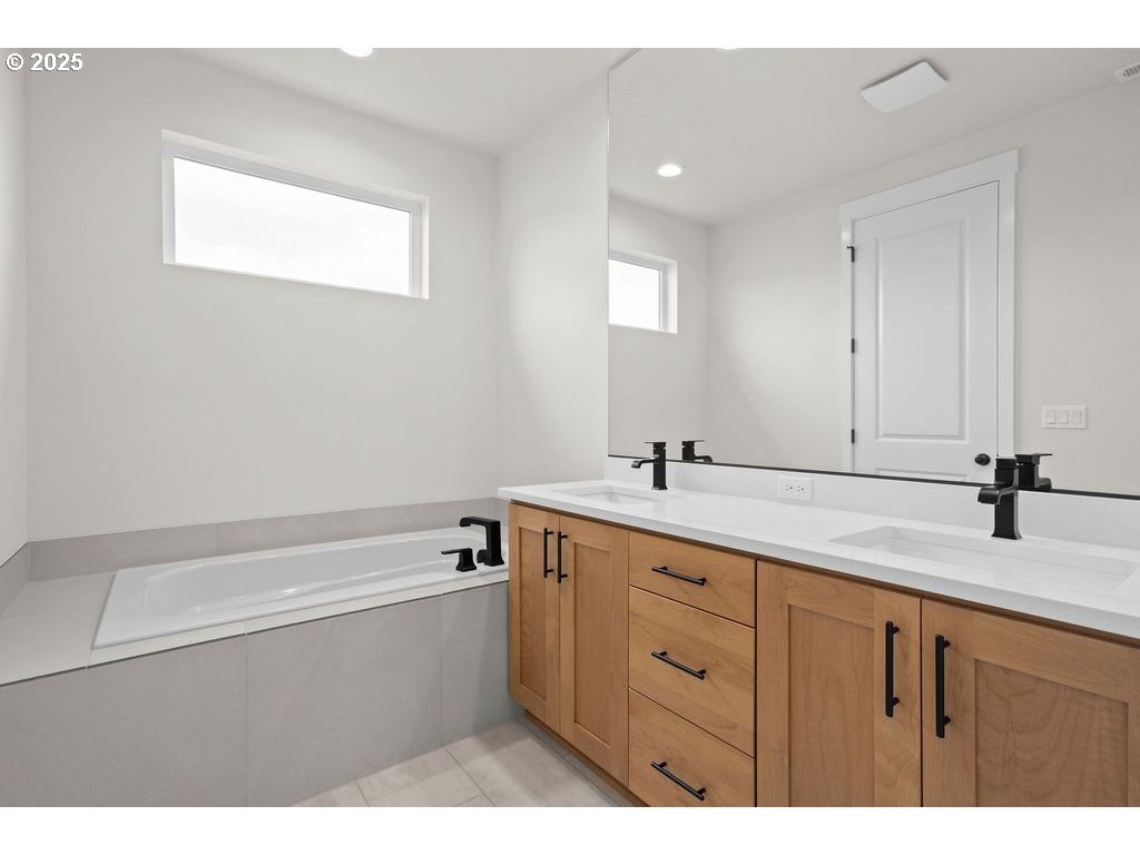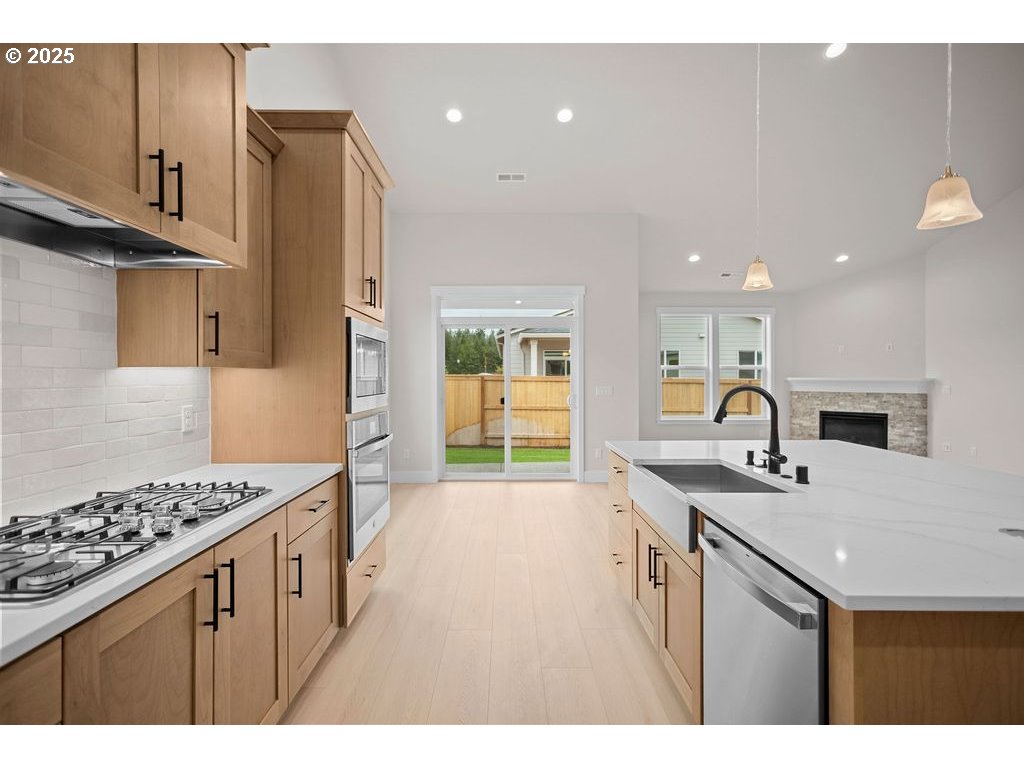 Move in ready, brilliantly crafted primary on main! Builder incentives available! The 2096 Plan features a large vaulted open main floor with two car garage plus shop. Laundry, office/guest bedroom with full bath and open great room, and a primary suite complete the main level. The second floor layout has two bedrooms and a full bathroom. Standard features include a large kitchen island, gas range cooking, A/C, forced air heating, beautiful trim work, soaking tub in primary bathroom, 9 ft ceilings on main floor with 8 ft doors, 8 foot ceilings upstairs, covered back patio, fully fenced yard. Upgrades included: laminate flooring throughout (NO carpet!), gourmet kitchen layout, tile shower, quartz counters in kitchen and bathrooms, full tile backsplash, a gas fireplace, plus landscaping and irrigation in both front and backyard. Welcome home to Ramble Creek, a brand-new community in a pristine wooded setting with walking trails, parks, a playground, creek and tall trees, all within easy access to I-5 and I-205. Photos are of the actual home. Please come by for a tour, open daily 10-5! Check in at the Model Home located at 4519 NE 183rd Street Vancouver, WA 98686