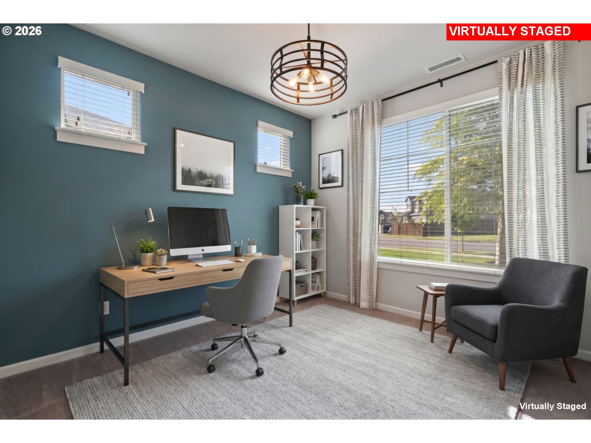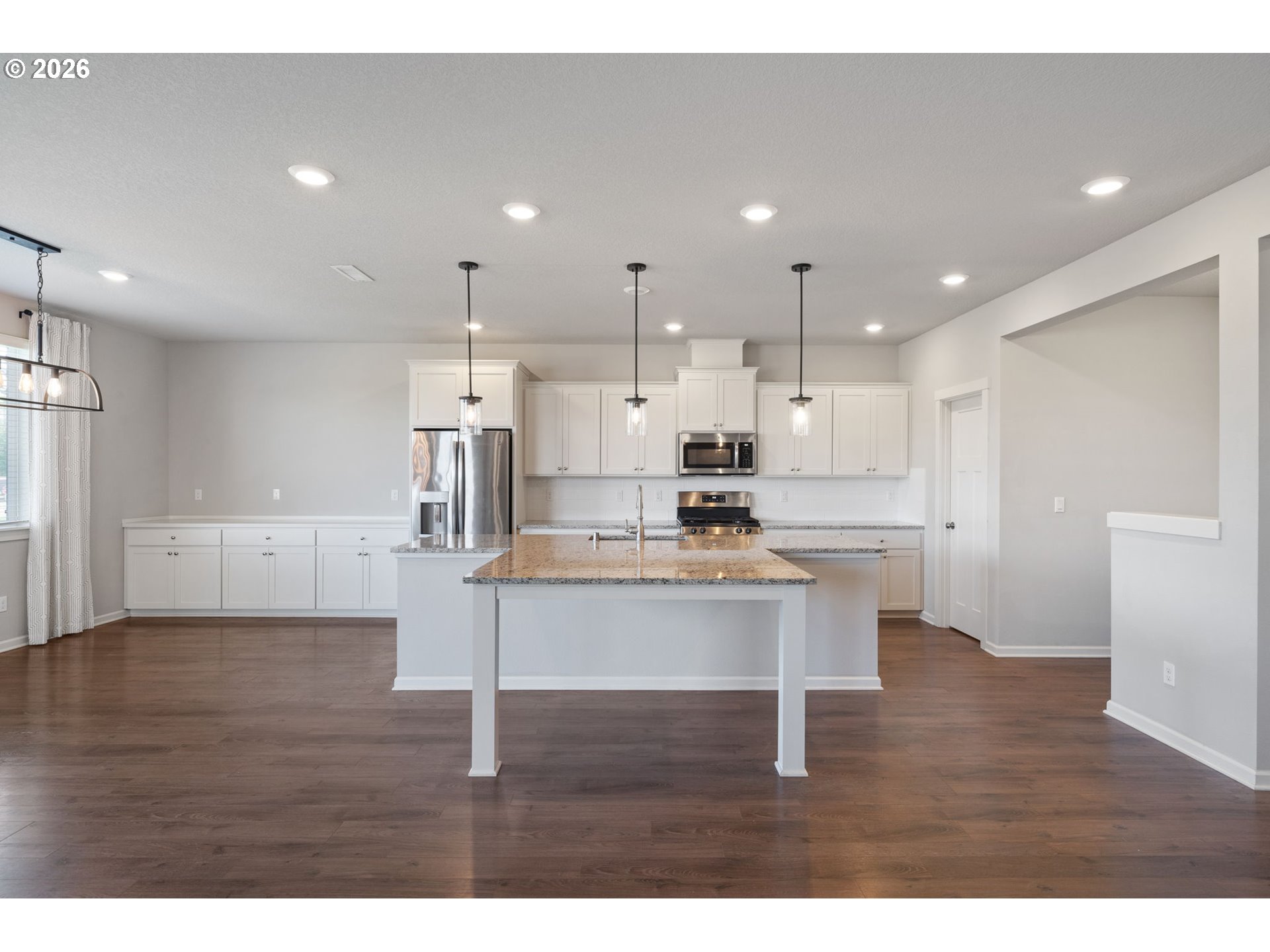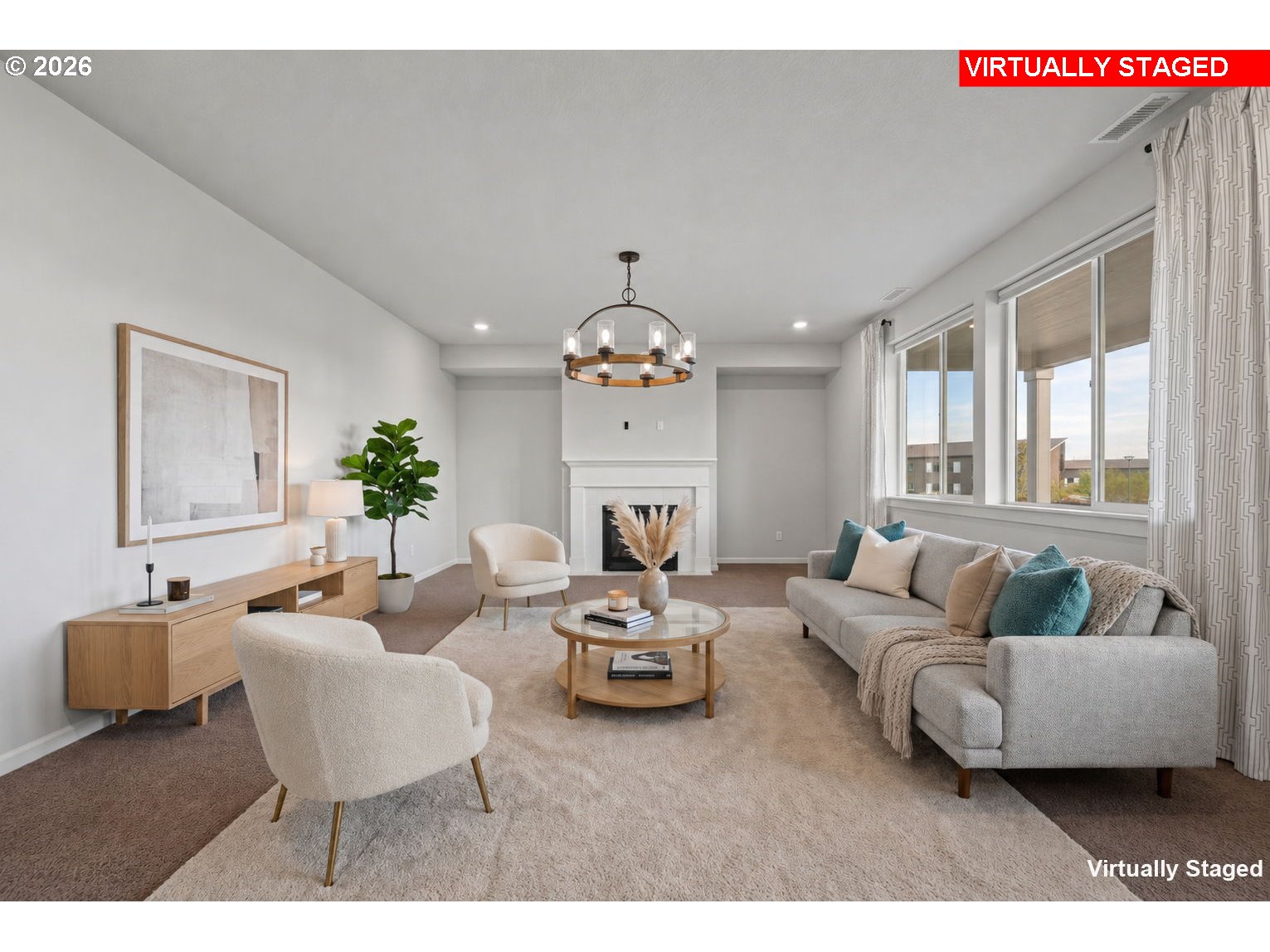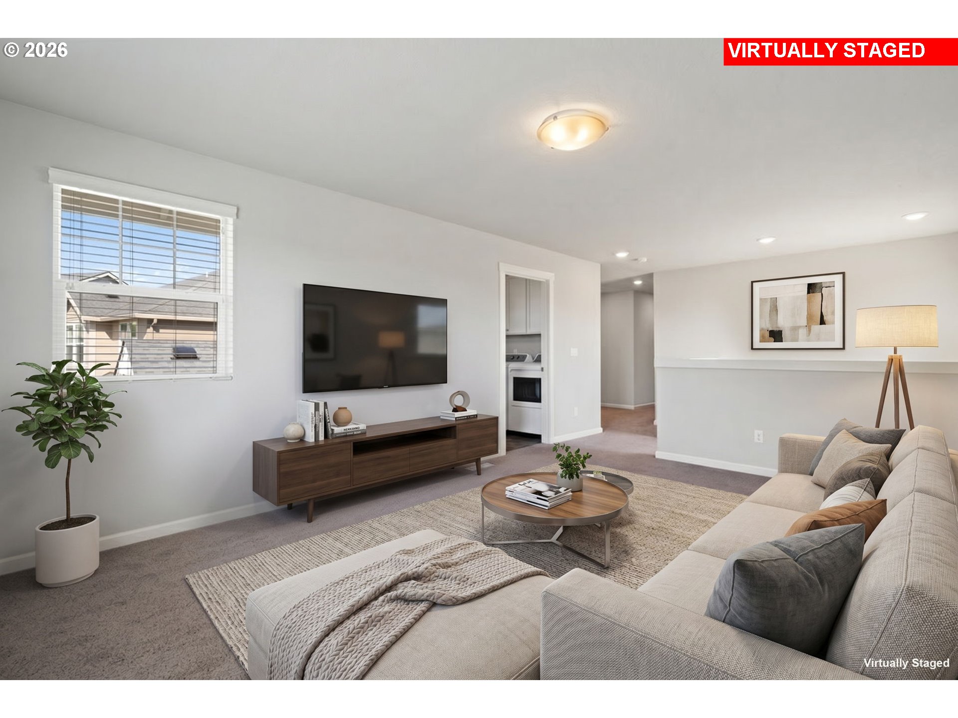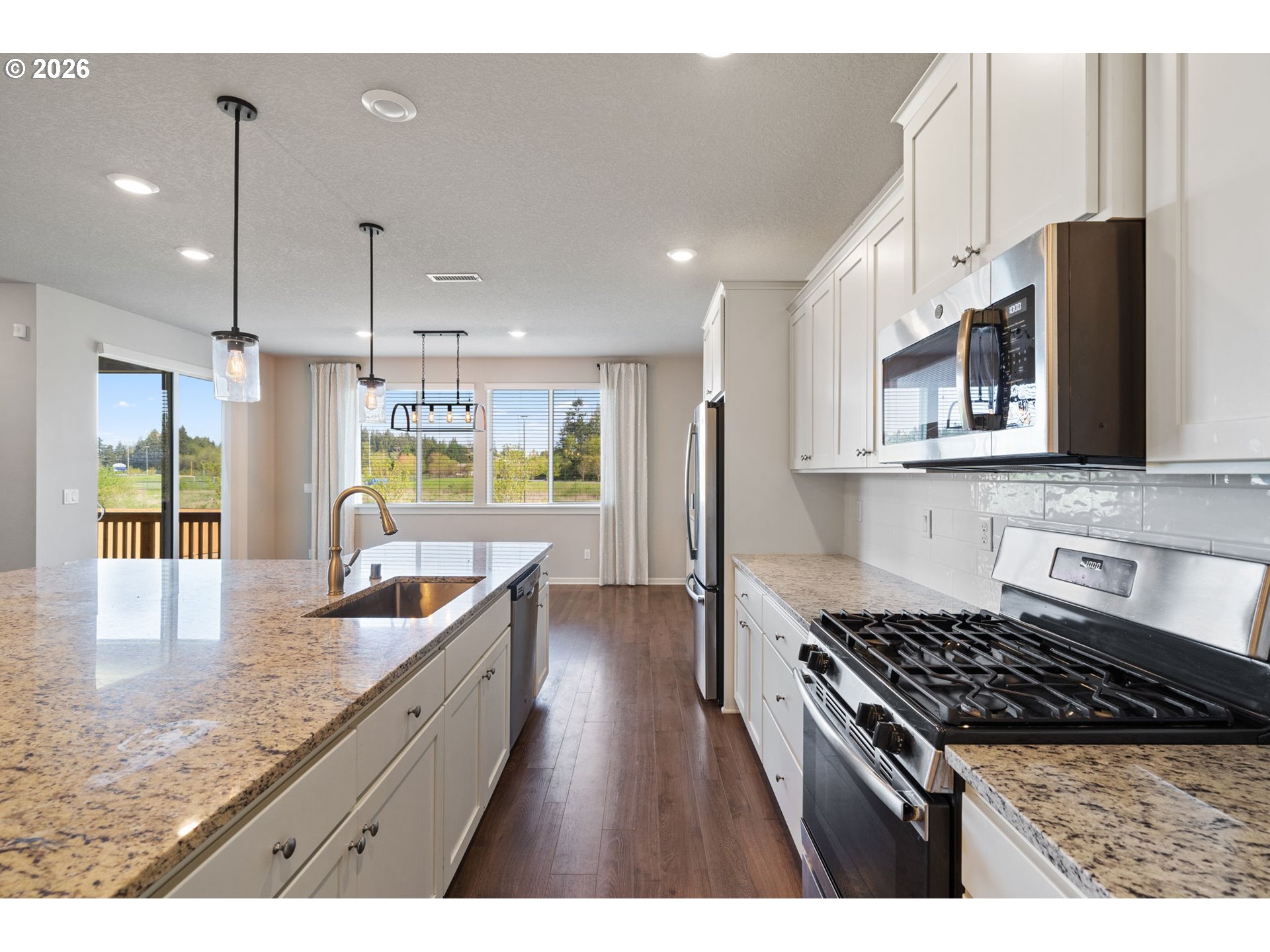Welcome to this former model home, featuring upgraded finishes, new exterior paint, and thoughtful design throughout. The main level offers an open-concept layout with great natural light, enhanced by upgraded millwork and lighting. The kitchen includes quartz countertops, an oversized island, stainless steel appliances, and opens directly to the great room—ideal for everyday living and entertaining. A small office off the kitchen provides a convenient work-from-home space. Upstairs, the primary suite features a spacious layout, dual vanities, and a walk-in closet. Additional bedrooms offer flexibility, along with a loft area in the hallway suitable for a desk or study space, and a bonus room that can function as a playroom or TV room. The backyard is private and easy to maintain, offering space to relax or entertain. Located in a desirable Ridgefield neighborhood with access to top-rated schools, parks, dining, and convenient freeway access. New carpet scheduled for installation by 5/15/2026.