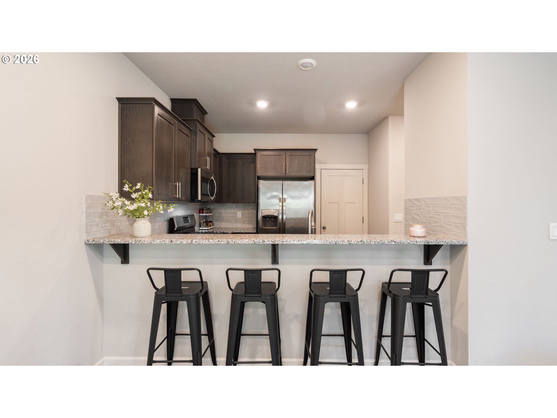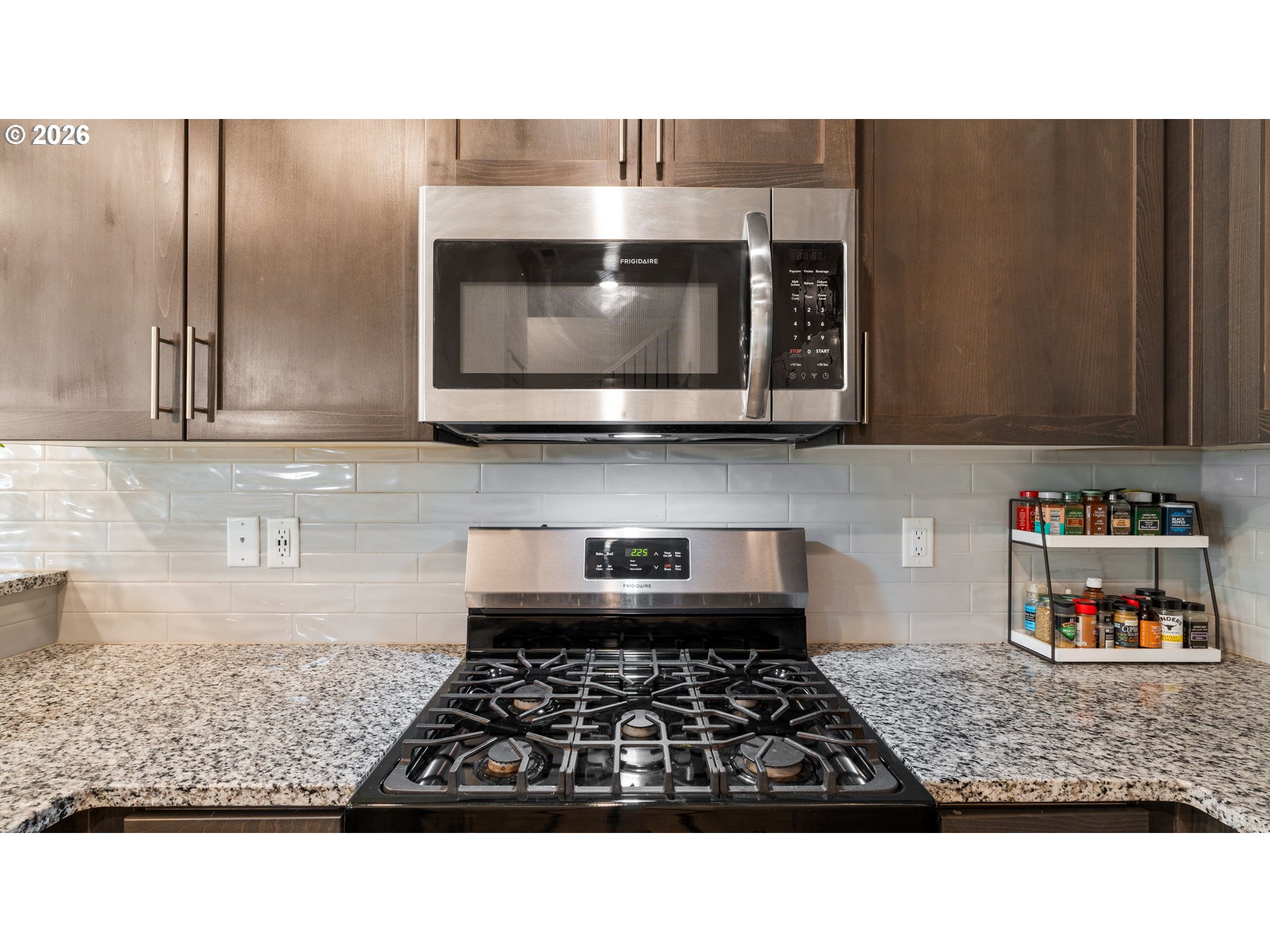 Like-new townhome in the highly sought after gated community of Cloverhill! This former model home showcases numerous upgrades and an exceptional open-concept floor plan designed for modern living. The main level features stylish laminate flooring, a spacious living room with a cozy gas fireplace, and an inviting dining area. The open kitchen is beautifully appointed with granite countertops, stainless steel appliances, a pantry, and a convenient eating bar perfect for everyday living and entertaining. A main-level half bathroom adds extra convenience. Upstairs, the expansive primary suite offers a striking decorative accent wall and a luxurious en-suite bathroom with dual sinks, tiled countertops, a walk-in shower, and a generous walk-in closet. Two additional bedrooms and a convenient laundry room complete the upper level. Enjoy outdoor living on the covered patio overlooking a private fenced backyard that backs to peaceful greenspace. Additional features include front and backyard sprinkler systems, smart home technology, and a spacious two-car garage. The HOA provides exceptional value by maintaining the roof, gutters, siding, exterior paint, front landscaping and irrigation, entry gate, and common areas including 31 overflow parking spaces. This desirable community is surrounded by scenic walking trails and a beautiful tree-lined greenbelt. Conveniently located just minutes from shopping, dining, and everyday essentials, including Rosauers, Costco, Starbucks, and more. The area also offers outstanding recreation and entertainment options, including local wineries, the nearby wildlife refuge, and kayaking opportunities on Lake River. Come tour this exceptional home today and discover why it’s the perfect place to call your own!