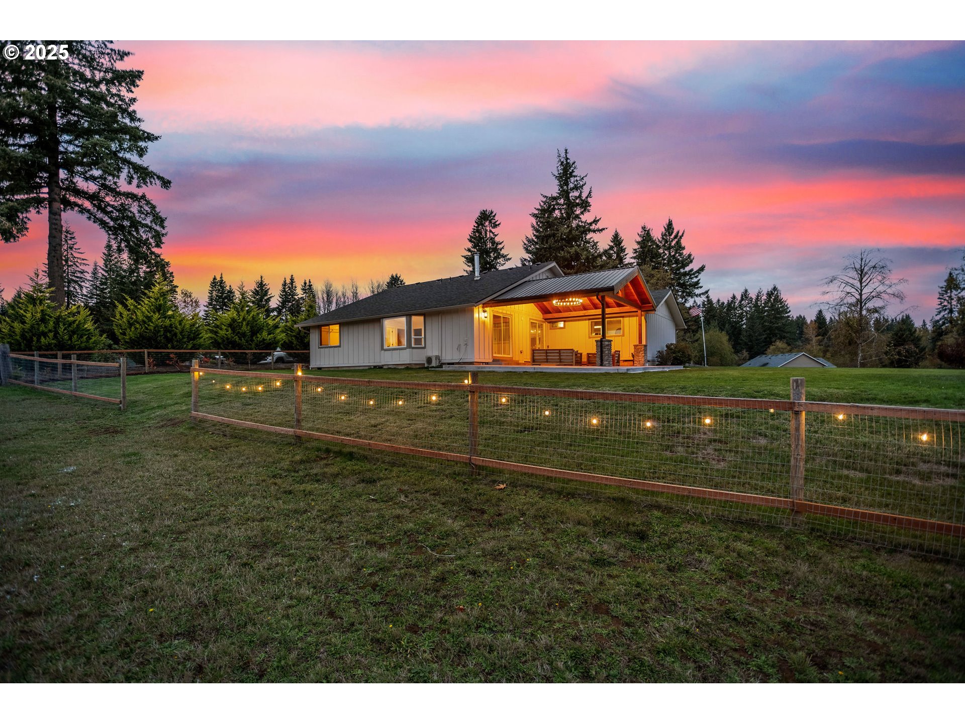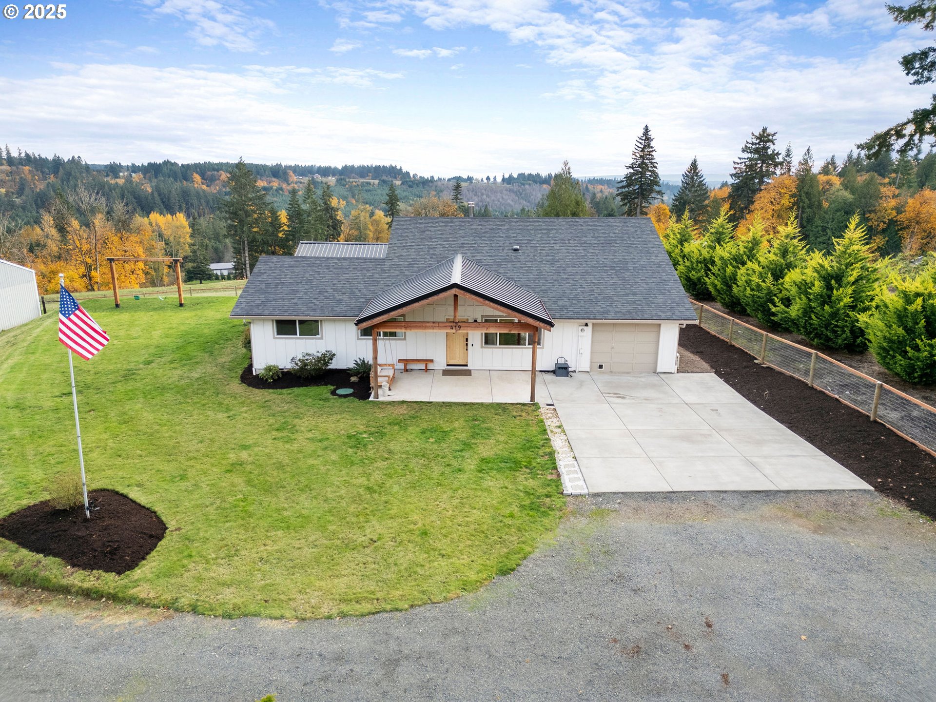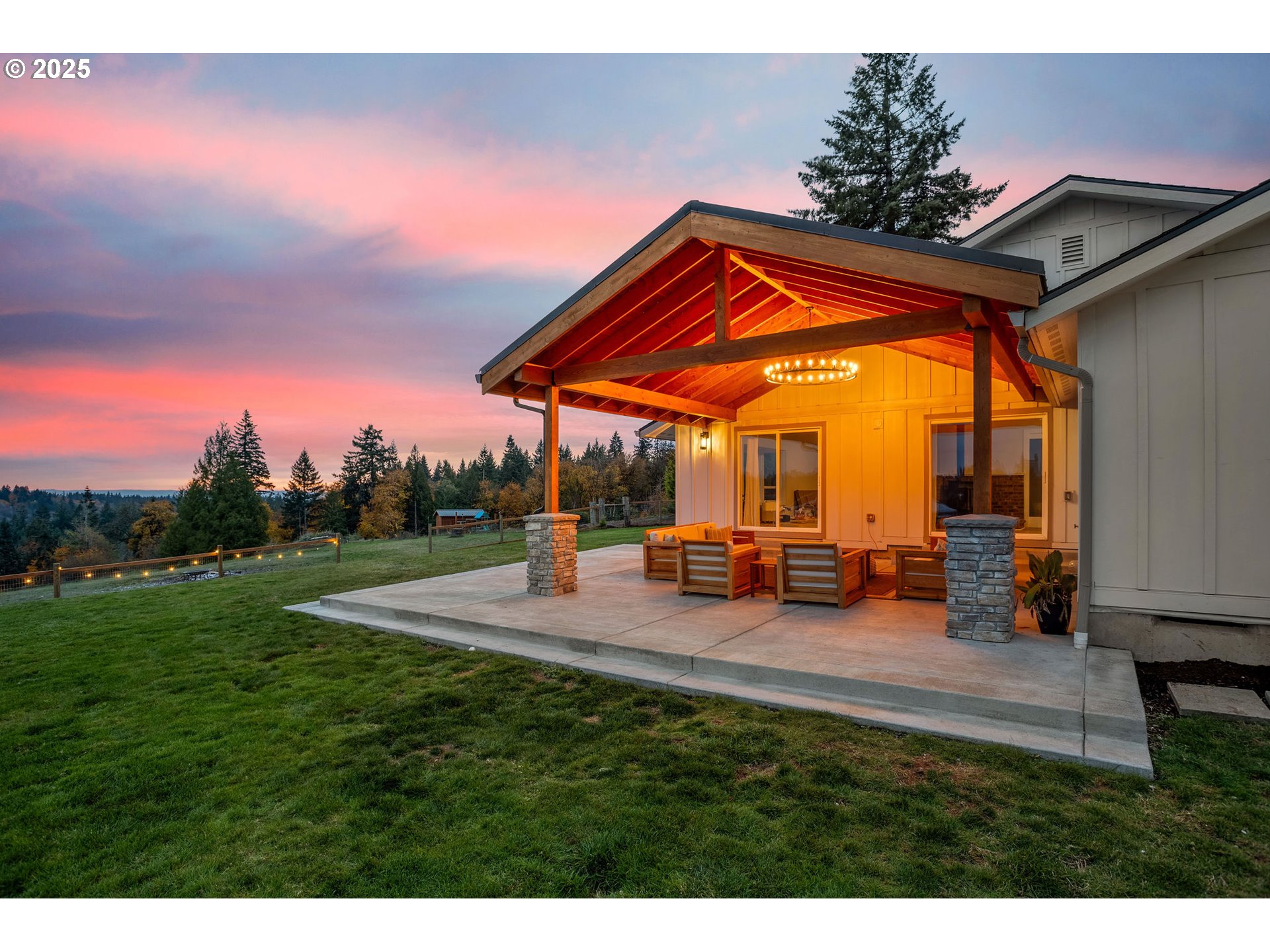 Stunning One-Level Home on 5 Usable Acres with Mt. Hood Views & a 30x60 Shop!Experience premier Pacific Northwest living in this beautifully updated one-level home set on 5 serene, usable acres—complete with breathtaking Mt. Hood views and sparkling PDX airport lights at night. Every inch of this property blends modern comfort with timeless acreage living.Inside, the home features 4 spacious bedrooms plus an office/flex room off the primary—currently used as a secondary oversized closet. The brand-new primary bathroom remodel feels like a private spa, showcasing a freestanding soaking tub, double-sink vanity, and walk-in tile shower.The bright, inviting bright kitchen with quartz countertops and stainless steel appliances opens to a warm dining space centered around a wood-burning stove. Throughout the home, enjoy luxury vinyl plank flooring, designer finishes, and beautifully tiled bathrooms.Outdoor living is unmatched with timber-framed covered patios in both the front and back, perfect for year-round enjoyment while taking in the sweeping views. A massive 30x60 pole barn/shop offers endless possibilities for hobbies, storage, or vehicles. Currently equipped with 4 open bays, 3 horse stalls and a tack room. Flat, usable acreage, incredible views, and a fully updated home make this a rare and exceptional find. Move-in ready—your ideal Northwest retreat awaits!
