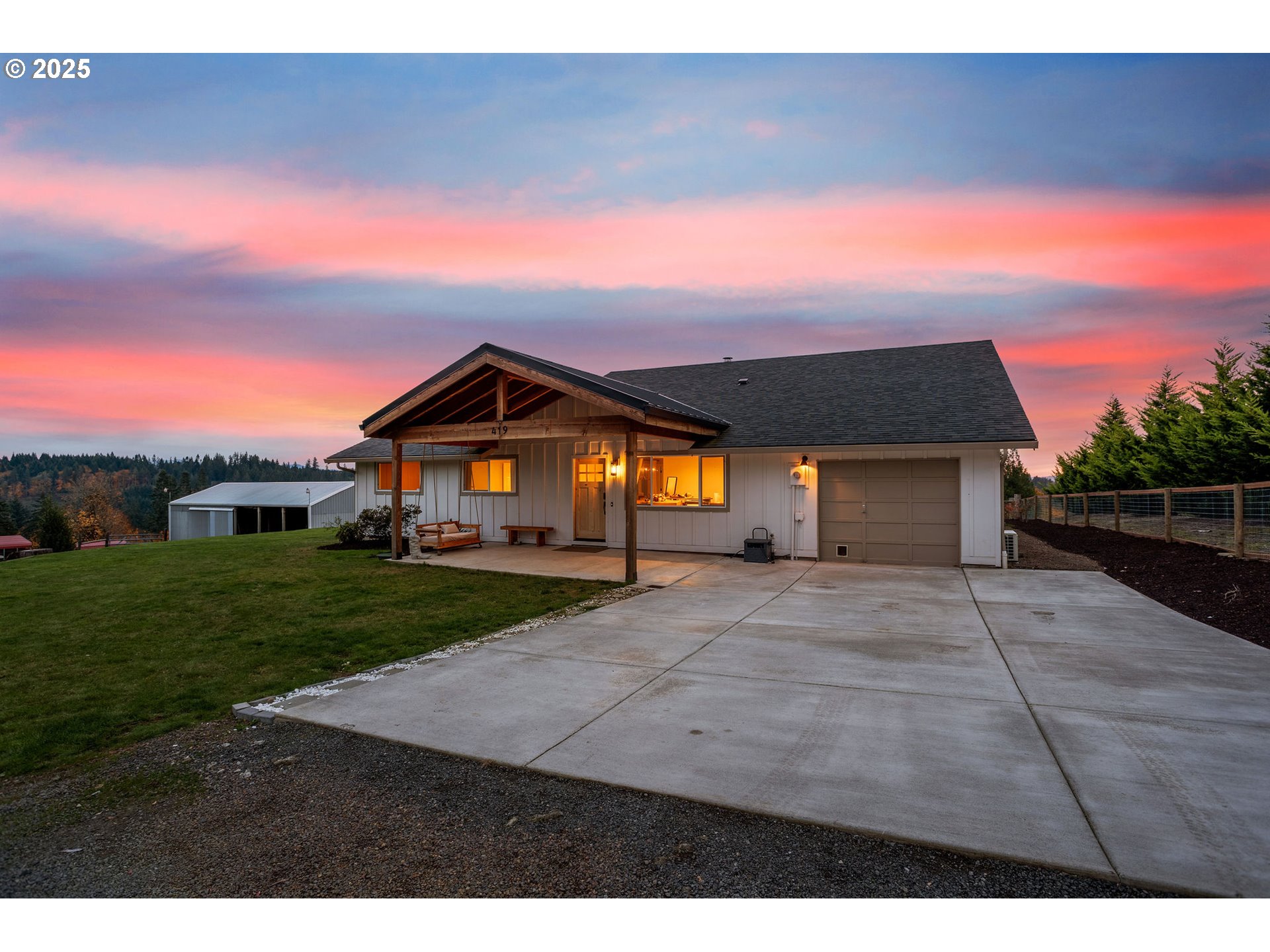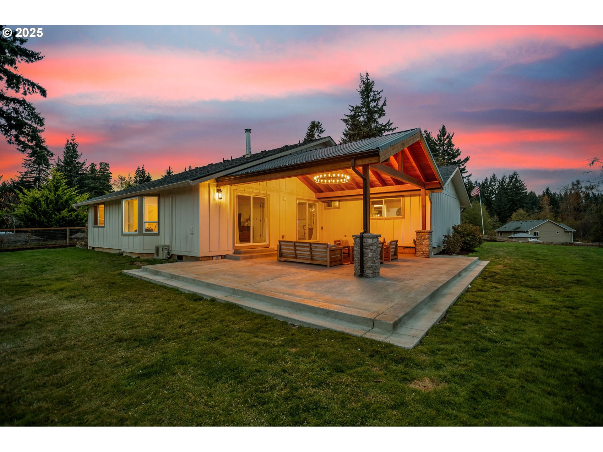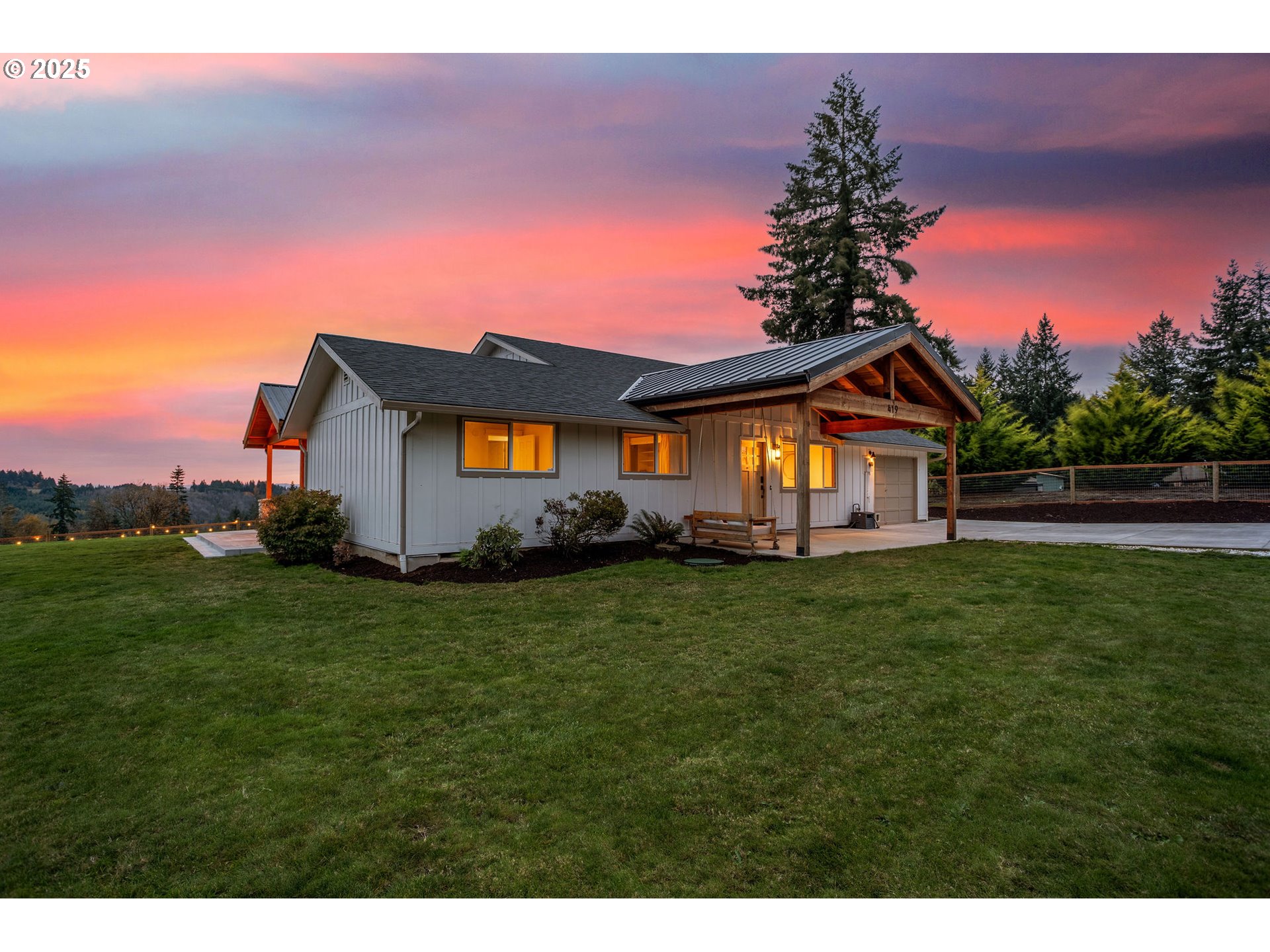 Stunning One-Level Home on 5 Usable Acres with Mt. Hood Views & a 30x60 Shop!Experience premier Pacific Northwest living in this beautifully updated one-level home set on 5 serene, usable acres—complete with breathtaking Mt. Hood views and sparkling PDX airport lights at night. Every inch of this property blends modern comfort with timeless acreage living.Inside, the home features 4 spacious bedrooms plus an office/flex room off the primary—currently used as a secondary oversized closet. The brand-new primary bathroom remodel feels like a private spa, showcasing a freestanding soaking tub, double-sink vanity, and walk-in tile shower.The bright, inviting bright kitchen with quartz countertops and stainless steel appliances opens to a warm dining space centered around a wood-burning stove. Throughout the home, enjoy luxury vinyl plank flooring, designer finishes, and beautifully tiled bathrooms.Outdoor living is unmatched with timber-framed covered patios in both the front and back, perfect for year-round enjoyment while taking in the sweeping views. A massive 30x60 pole barn/shop offers endless possibilities for hobbies, storage, or vehicles. Currently equipped with 4 open bays, 3 horse stalls and a tack room. Flat, usable acreage, incredible views, and a fully updated home make this a rare and exceptional find. Move-in ready—your ideal Northwest retreat awaits!