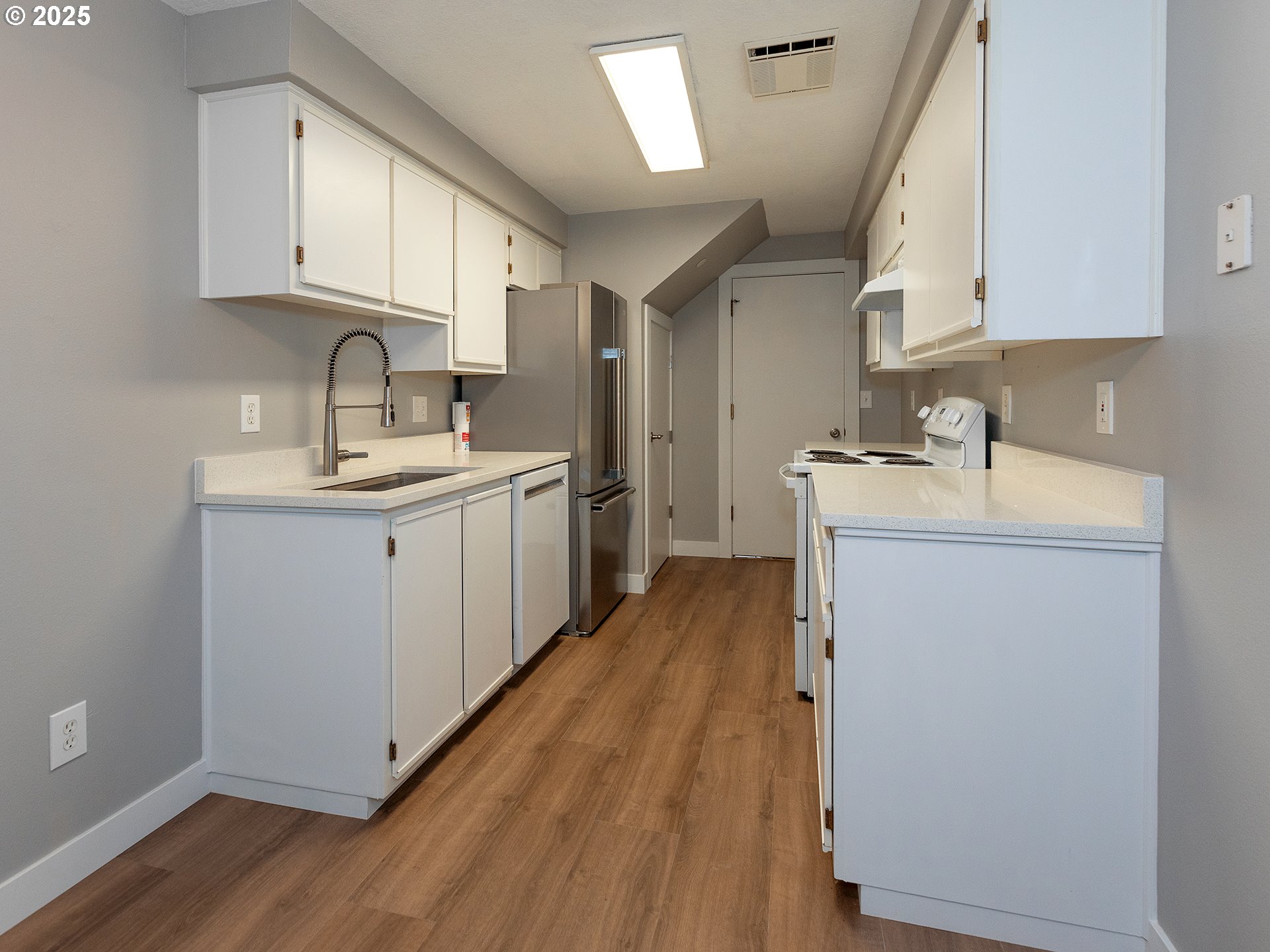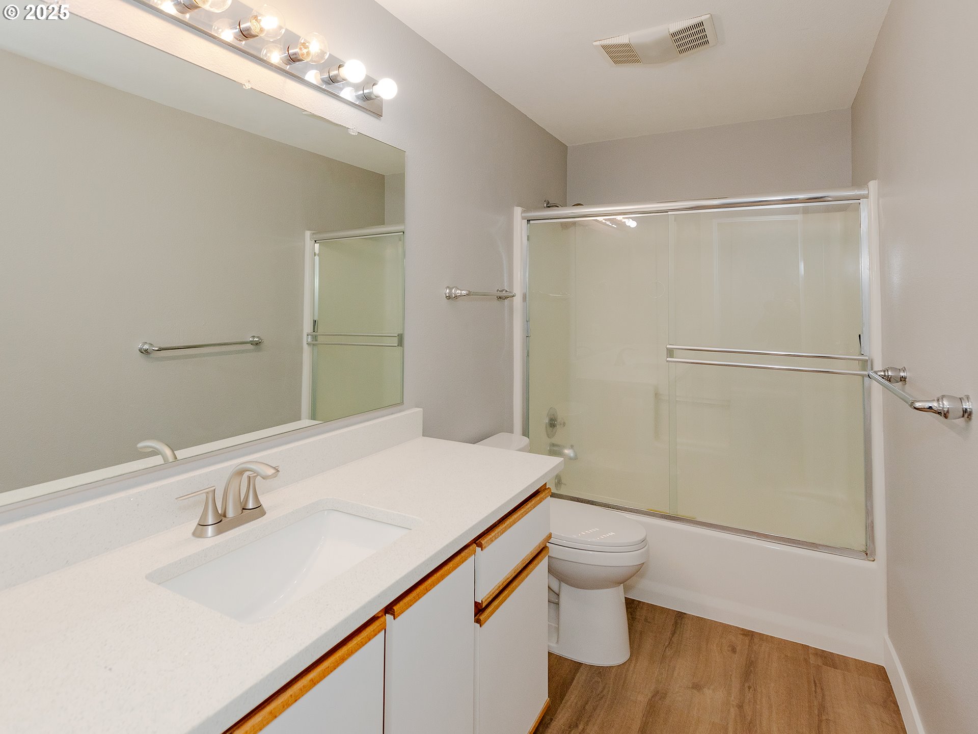 Welcome to your move-in-ready retreat in vibrant Vancouver, WA! Excellent investment property, HOA allows rentals. This 3-bedroom, 2.5-bath townhome with an oversized 2-car garage feels surprisingly spacious thanks to its thoughtful, open layout. Step inside to discover a fresh interior featuring new waterproof luxury vinyl plank (LVP) flooring, plush carpeting, and freshly painted walls. The stylish galley kitchen boasts new quartz countertops, making meal preparation a breeze. All bathrooms have new undermount sinks, quartz countertops, and durable LVP flooring. Retreat to the upstairs primary suite, your private sanctuary, while the two additional bedrooms offer flexibility for guests, family, or a home office. Outside, a freshly painted deck overlooks a serene, park-like common area, perfect for unwinding or entertaining. With low HOA dues covering exterior maintenance, the roof, and gutters, this townhome has everything you need—bring your slippers and bathrobe to settle in!