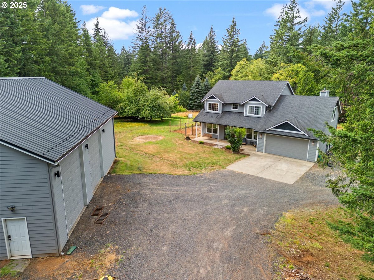 Tranquil 5-Acre Retreat with Creek, Shop & Modern ComfortsEscape the city and discover peace and privacy on this 5-acre Washougal retreat. Cougar Creek winds year-round through the property, filling a seasonal pond in the fall and drawing in deer, birds, and other wildlife. Mature evergreens frame open grassy meadows, while fruit trees, a fenced garden, and blueberry bushes invite you to enjoy farm-to-table living.The 3,054 SF 4 bedrooms with one on the main and a large bonus room upstairs this home blends warmth and elegance with cherry wood floors, slab granite counters, and custom cabinetry. The kitchen is a cook’s delight with double ovens, walk-in pantry, and a cozy dining nook overlooking the landscape. Relax in the family room by the woodstove, entertain in formal living and dining rooms, or unwind in the bonus room. The primary suite offers a spa-like escape with a jetted tub, double shower, and walk-in closet.For hobbies, business, or recreation, the impressive 2,000 SF shop delivers — with soaring 16-ft ceilings, two 14-ft doors, multiple 220 outlets, and woodstove heat. There’s space for everything from RVs and boats to serious projects.Additional highlights include a large patio for gatherings, generator hookup, circle driveway, and private road access. Whether you’re seeking a quiet homestead, a place to work from home, or simply room to breathe, this property offers it all.