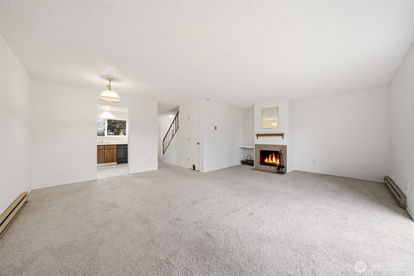Conveniently located 3-bedroom, 1.5-bath condo offering a balance of accessibility and quiet surroundings near I-99 and I-5, ideal for commuters seeking a peaceful residential setting; this well-maintained home features a bright kitchen with generous cabinet storage, an open-concept living and dining area anchored by a cozy wood-burning fireplace, and three upstairs bedrooms providing separation and flexibility for guests, office space, or household needs, while a dedicated parking space and private garage add everyday convenience and secure storage; enjoy relaxing outdoor moments on the patio overlooking serene greenspace, creating a low-maintenance lifestyle with comfortable indoor living and a calm natural backdrop.