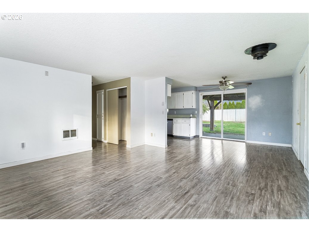 This 3-bedroom, 1.5-bathroom ranch-style home built in 1975 offers 1,029 square feet of single-level living on a spacious 0.24-acre level lot. The property features wood siding, a composition roof, and an attached 2-car garage with driveway parking. Inside, enjoy open living spaces with laminate wood flooring, ceiling fans, and sliding glass doors leading to the backyard. The galley kitchen includes white cabinetry, a dishwasher, stove, and sink, while the bathroom showcases a vanity and shower. The home is served by Burnt Bridge Elementary, Pacific Middle, and Evergreen High schools