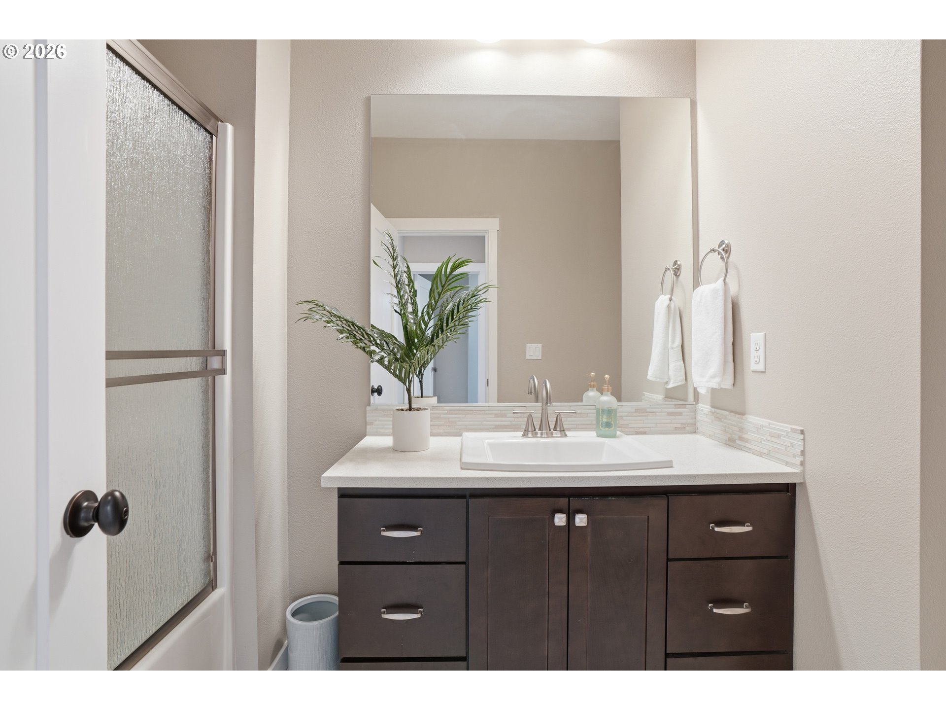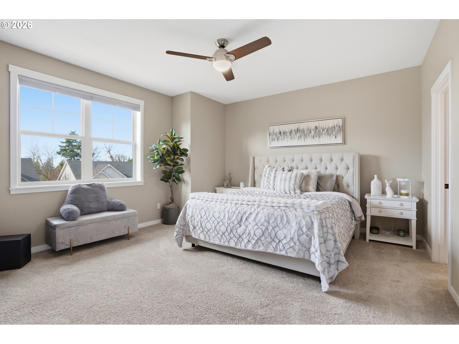 Designed for effortless living, this inviting, move-in-ready townhome is situated in a quiet cul-de-sac where peaceful surroundings pair seamlessly with convenient access to shopping, local schools, and PDX. This well-maintained home features 3 bedrooms and 2.5 baths, with a bright, expansive great room ideal for both everyday living and entertaining. The kitchen is beautifully appointed with upgraded appliances and quartz countertops, which extend into the bathrooms for a cohesive, modern finish. The open-concept layout flows effortlessly into the living and dining areas, creating a welcoming and functional main level. Step outside to a patio area surrounded by mature trees, an ideal space for relaxing or hosting guests, complete with surround sound. Inside, enjoy surround sound throughout the main level and a layout designed for comfort and connection. The spacious primary suite offers a large walk-in closet and private bath, while the additional bedrooms are generously sized and versatile. A small, dedicated flex space on the main level provides a convenient option for a home office. Epoxy-coated garage floors, a water softener system, and exceptional storage throughout add thoughtful functionality and value. With a six-inch gap between this unit and the next, the home is extra quiet. The HOA provides all exterior maintenance, allowing this townhome to offer truly maintenance-free living. With quick freeway access for commuting to downtown Vancouver, Portland, or weekend escapes to the Columbia River Gorge, this home delivers comfort, convenience, and ease in an exceptional location, just moments from Fisher’s Landing Elementary.