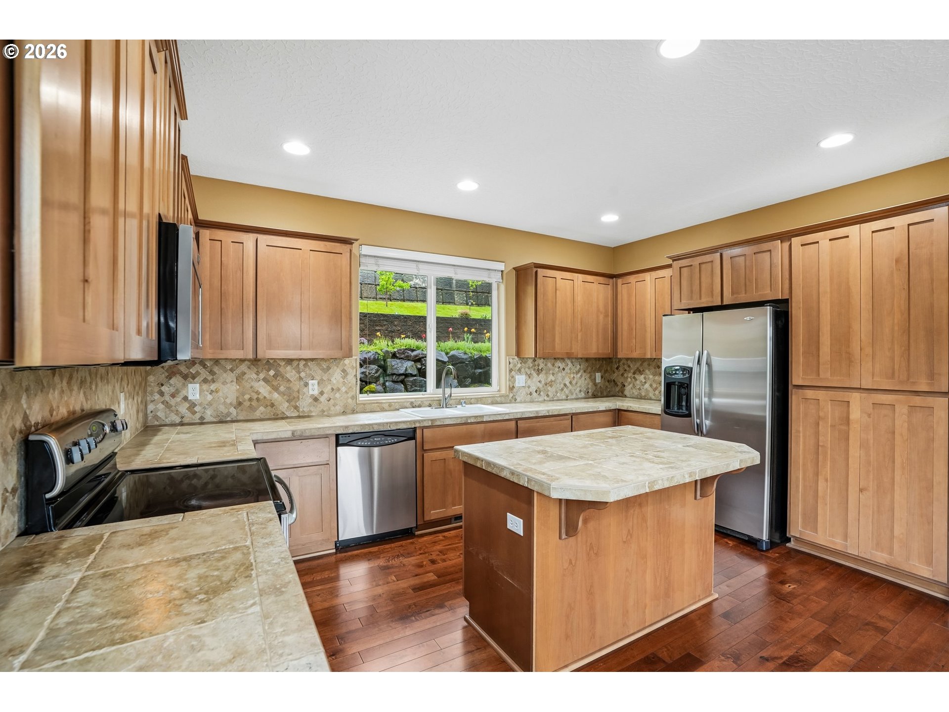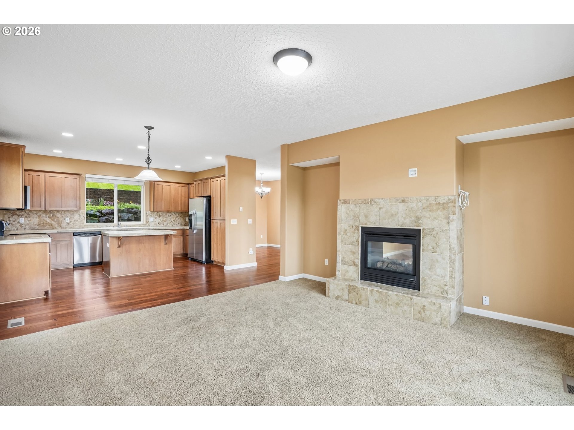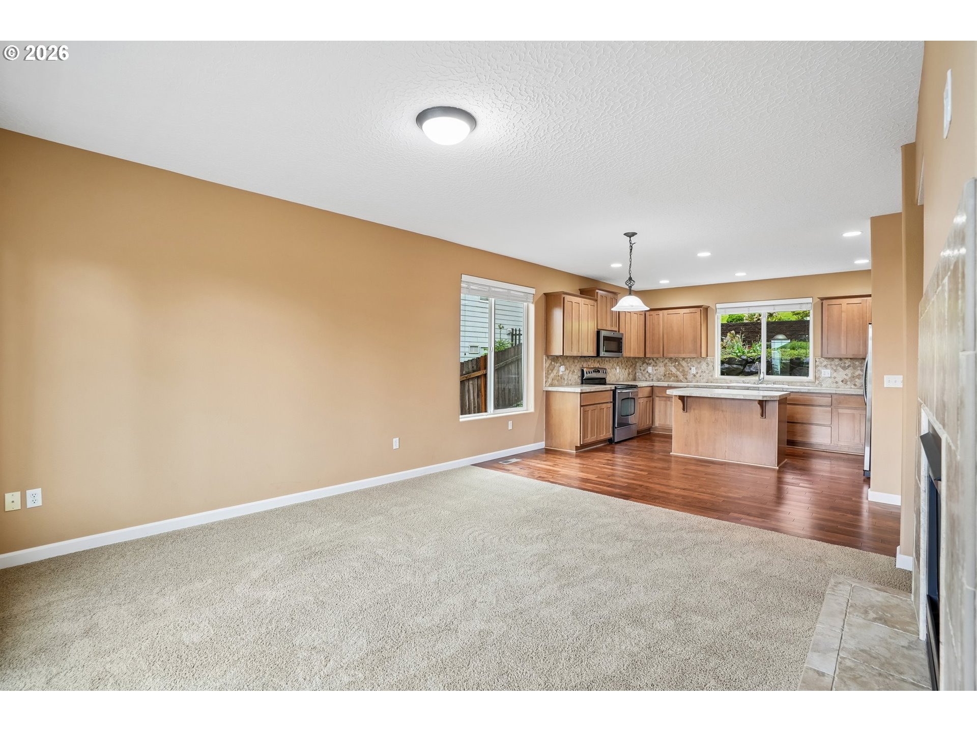 (503) 893-8874Light-filled and welcoming, this home features ultra-high ceilings and a wall of windows that bring in abundant natural light! A double-sided fireplace connects the family and living rooms, while cherry hardwood floors and ceiling-height alder cabinets define the kitchen that is equipped with stainless steel appliances, a large island, and ample storage. Upstairs, the primary suite includes a walk-in closet, soaker tub,andOutside,landscaped with a sprinkler system and patio for outdoor living. Additional highlights include an attached garage, driveway parking, and EV charging capability. Conveniently located near schools, parks, and local amenities. Refrigerators in kitchen and garage, washer and dryer, Camp Chef pellet smoker in the shed and hammock chair can all convey with the house. Mortgage savings may be available for buyers of this listing.