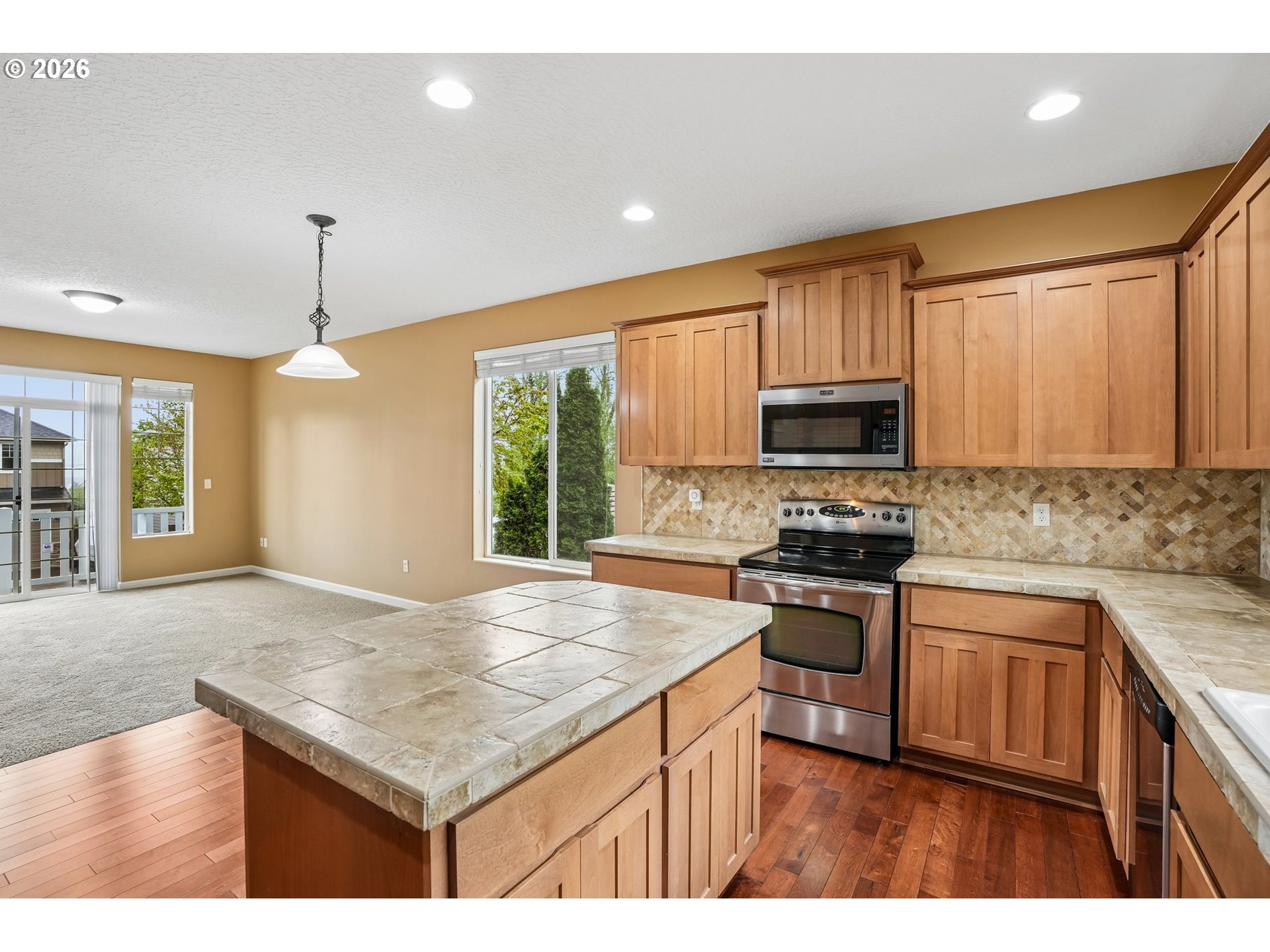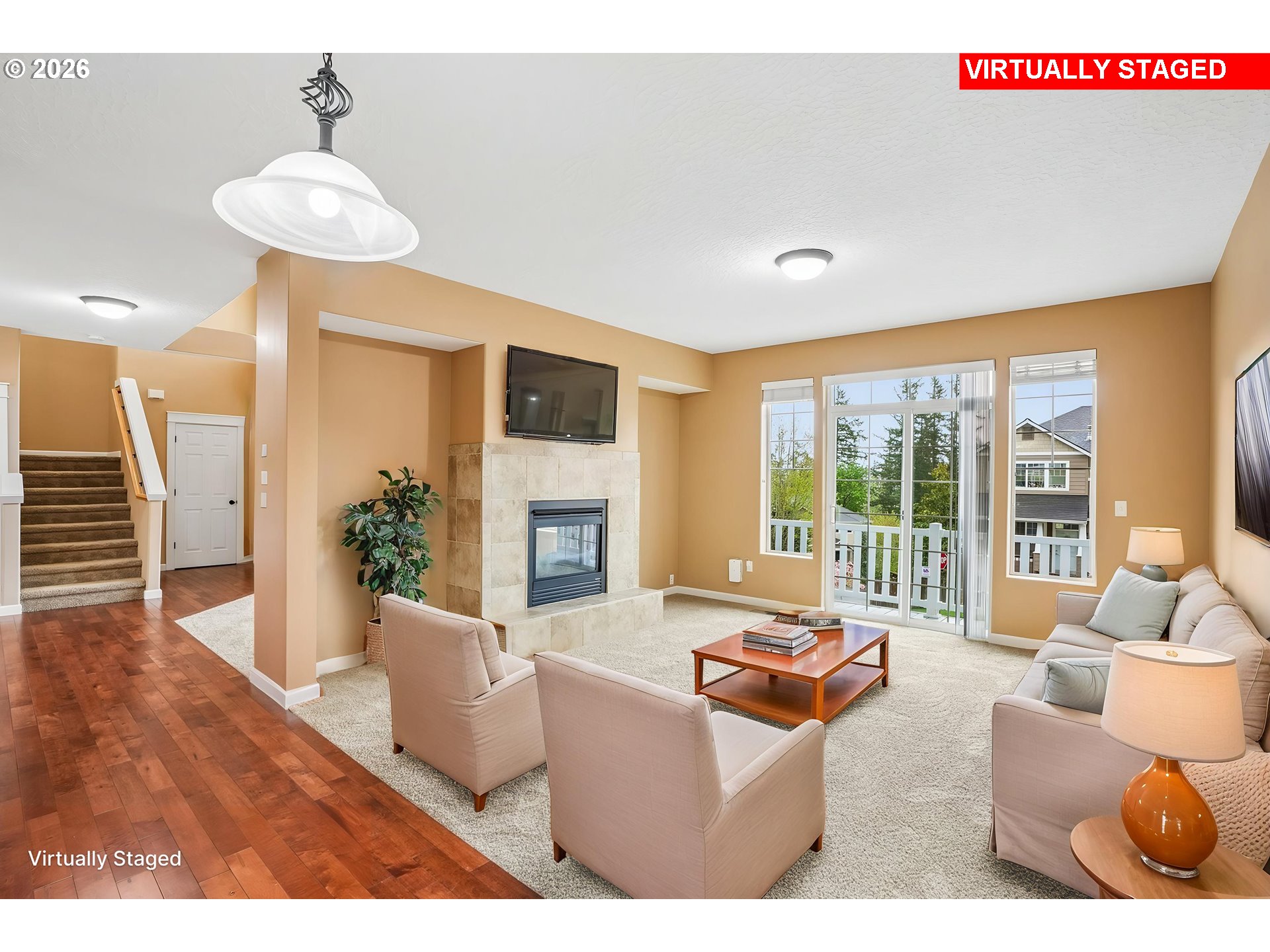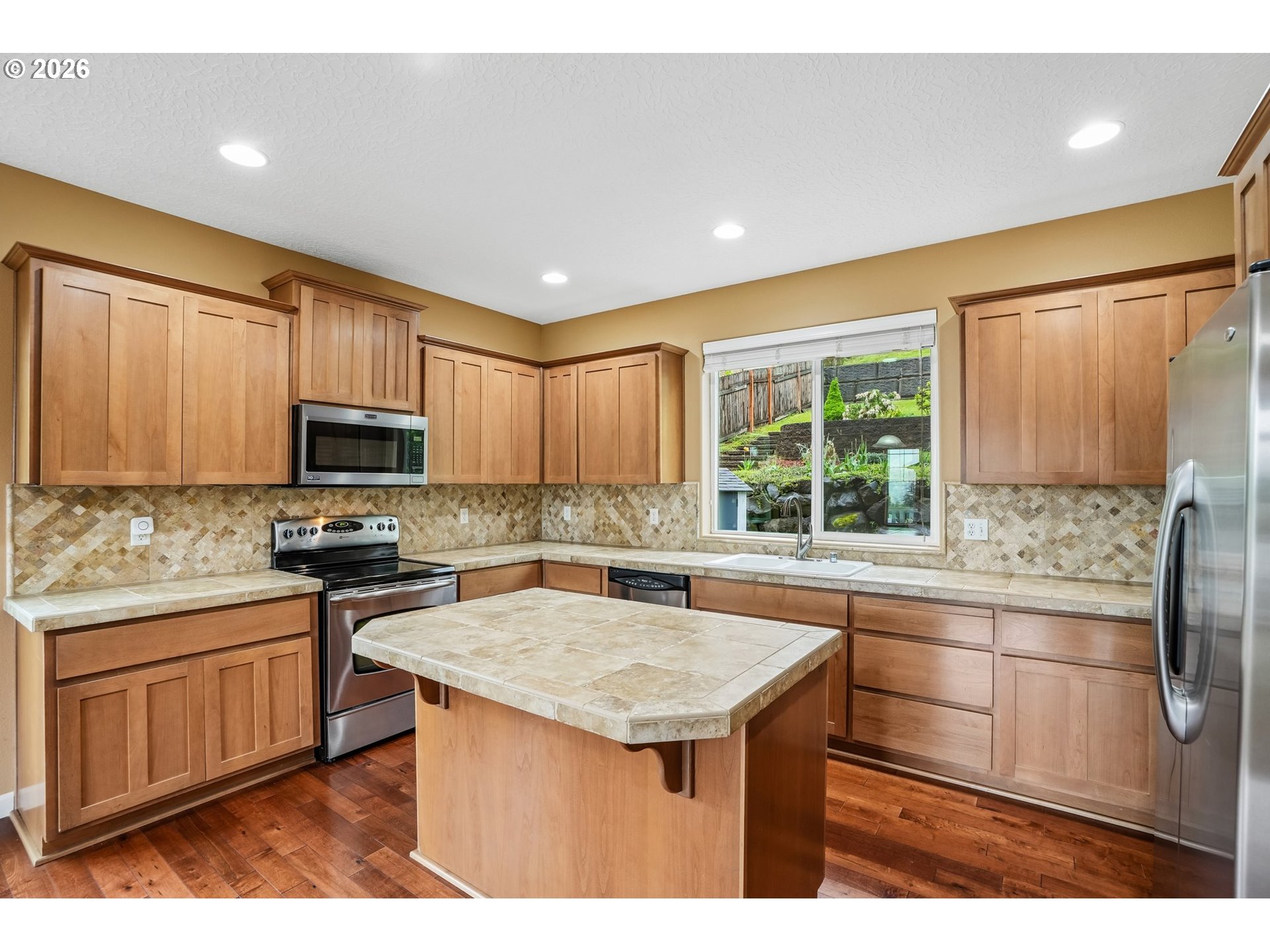 (503) 893-8874Light-filled and welcoming, this home features ultra-high ceilings and a wall of windows that bring in abundant natural light! A double-sided fireplace connects the family and living rooms, while cherry hardwood floors and ceiling-height alder cabinets define the kitchen that is equipped with stainless steel appliances, a large island, and ample storage. Upstairs, the primary suite includes a walk-in closet, soaker tub,andOutside,landscaped with a sprinkler system and patio for outdoor living. Additional highlights include an attached garage, driveway parking, and EV charging capability. Conveniently located near schools, parks, and local amenities. Refrigerators in kitchen and garage, washer and dryer, Camp Chef pellet smoker in the shed and hammock chair can all convey with the house. Mortgage savings may be available for buyers of this listing.