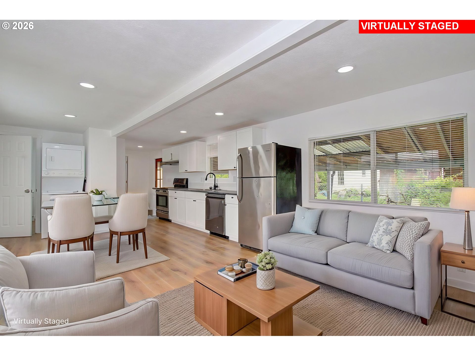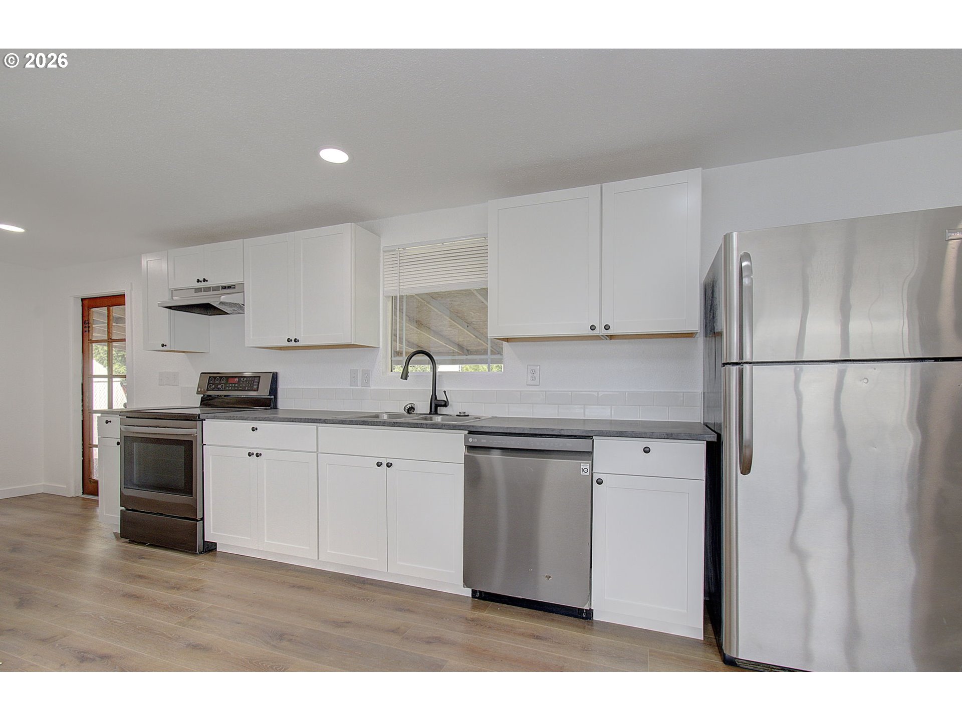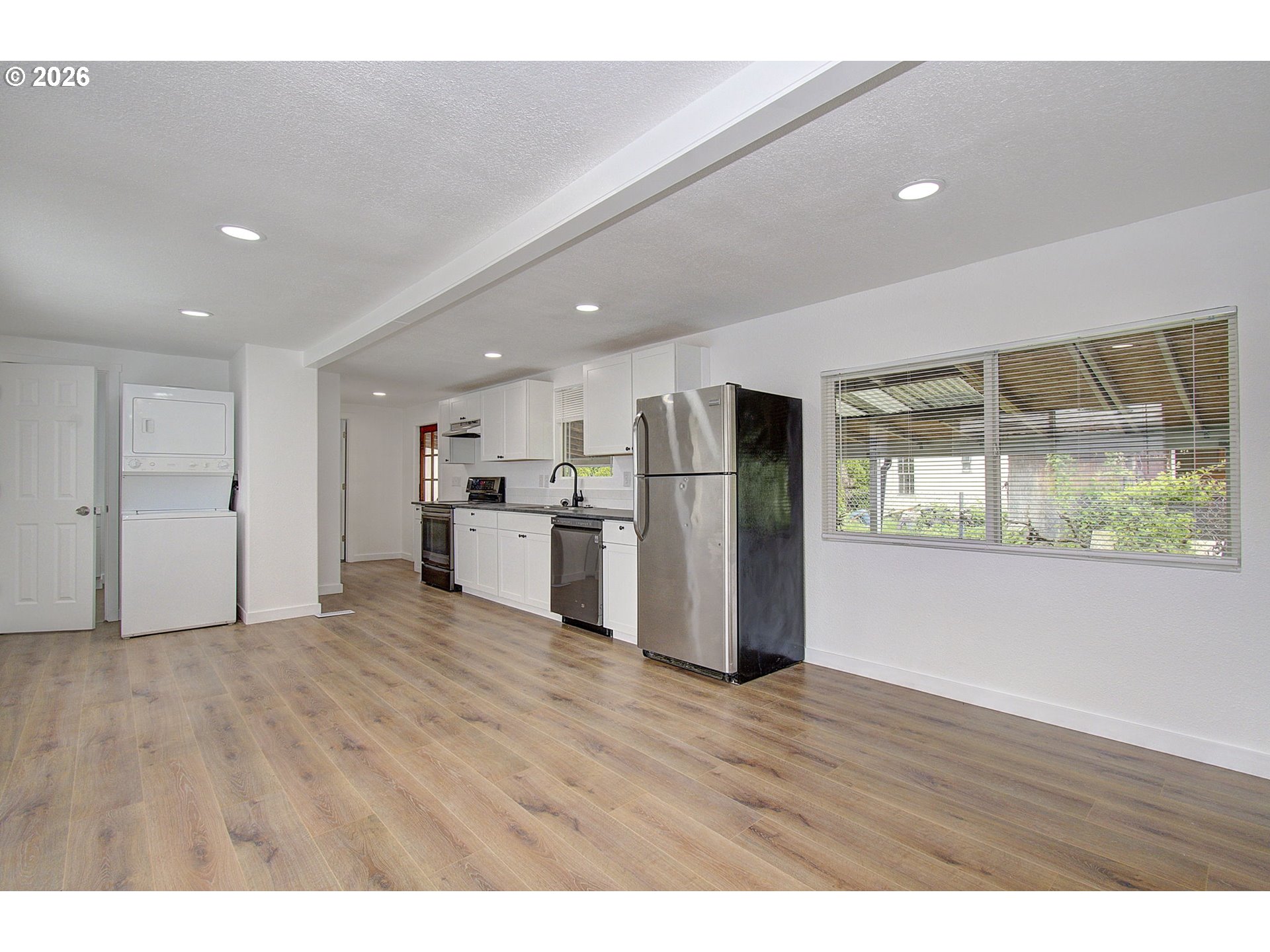 Fully remodeled 3-bedroom, 2-bathroom home situated on one of the largest lots in the park. This property has been meticulously updated with a focus on quality materials and a clean, Modern Northwest aesthetic. The open-concept great room features durable LVP flooring, recessed LED lighting, and large windows that fill the space with natural light.The kitchen is designed for efficiency and style, equipped with stainless steel appliances, crisp white cabinetry, and a subway tile backsplash. Both bathrooms have been fully refreshed, including a spacious walk-in shower with modern tile work. New carpeting and fresh paint throughout make this home truly turn-key.Outside, the oversized, fully fenced yard offers rare privacy and space, complemented by a large covered front deck for year-round enjoyment. Located in the heart of Washougal, you’re minutes from the charm of downtown’s local shops and eateries. Enjoy living at the gateway to the Columbia River Gorge, with world-class hiking, waterfront trails, and recreation just a short drive away. Deep covered carport and secondary entry included.