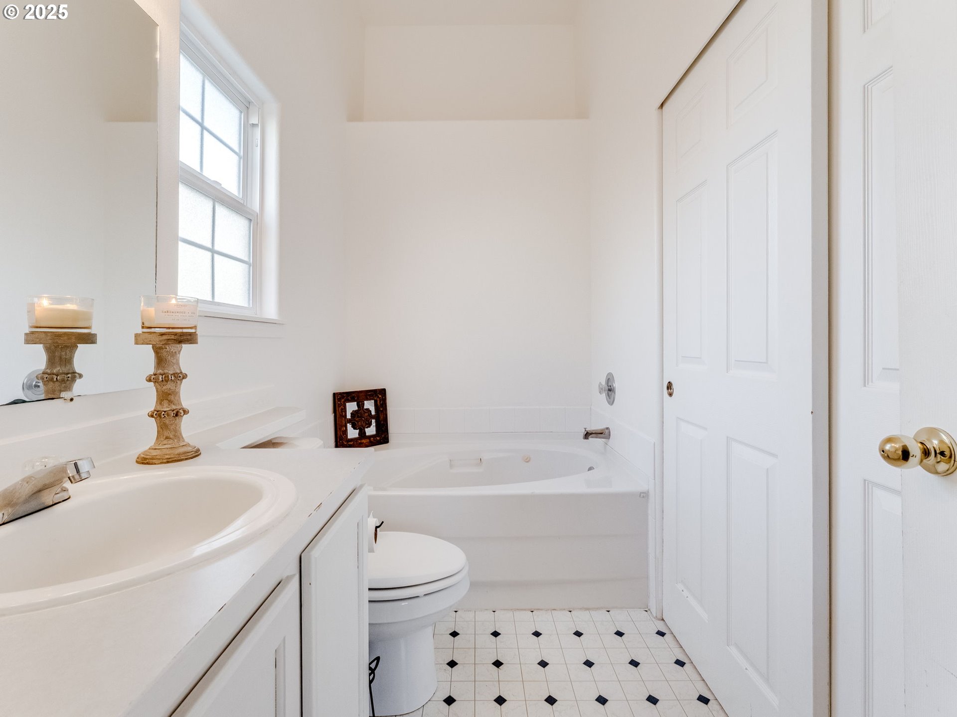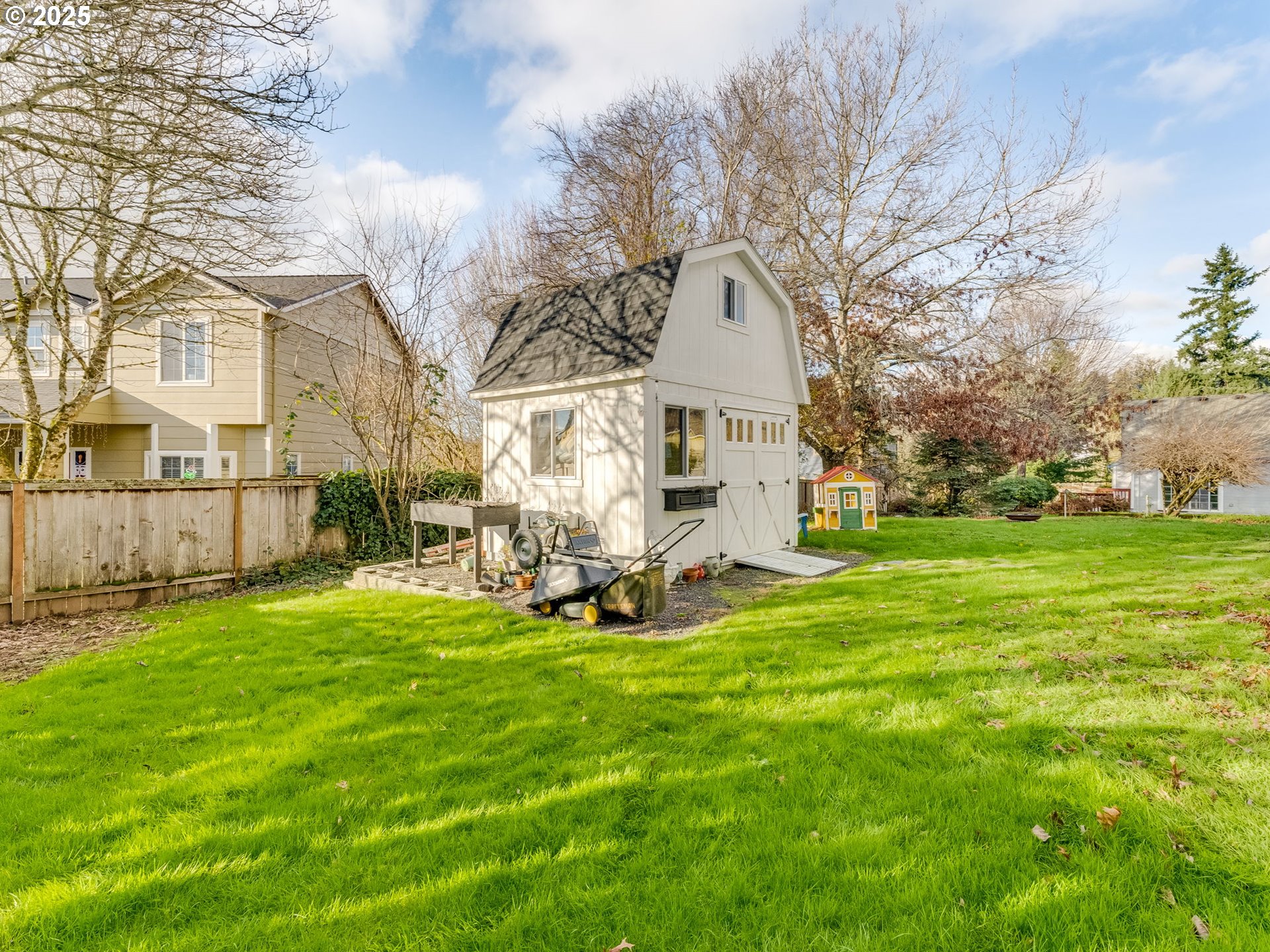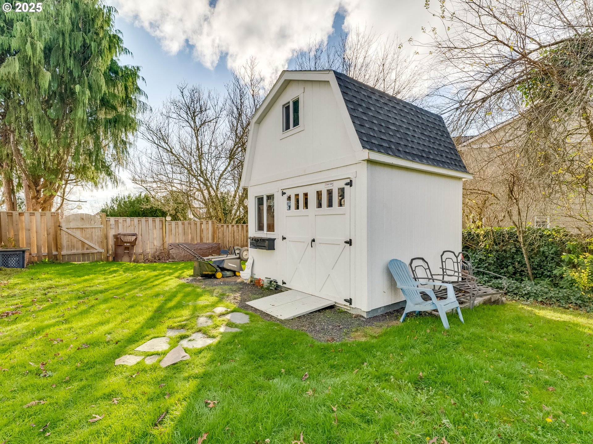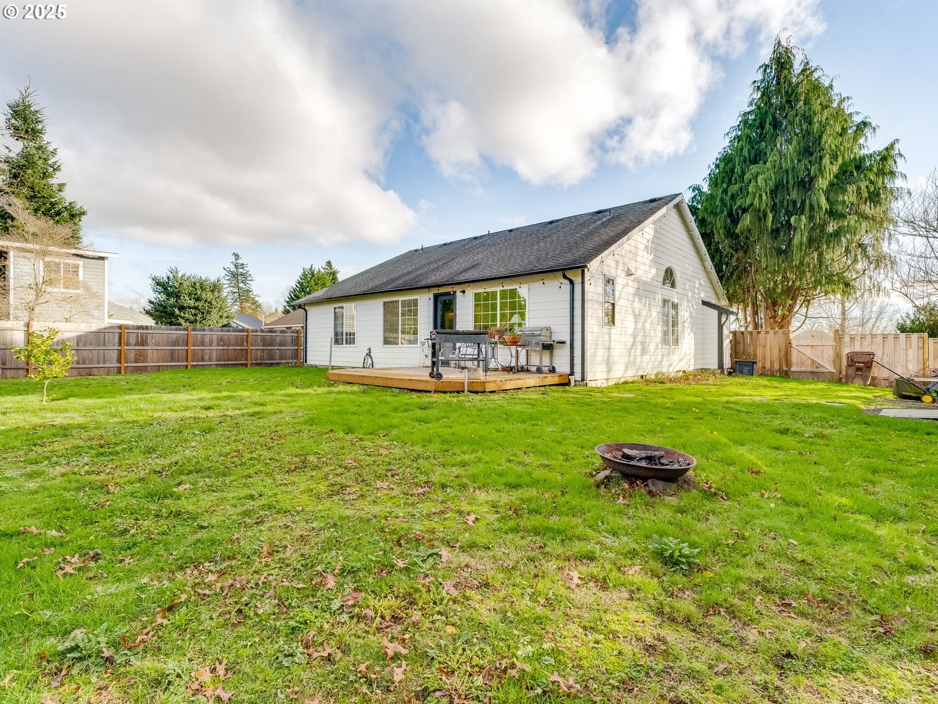 Bright and inviting vaulted living room features a charming bay window and a cozy fireplace—perfect for everyday living and entertaining. The family room opens seamlessly to a beautifully remodeled kitchen, highlighted by natural wood countertops, island, and a convenient double-drawer under counter refrigerator for added functionality. Newer engineered flooring throughout enhances durability while delivering a modern, cohesive look. The vaulted primary suite offers a walk-in closet and relaxing jetted tub. The recently remodeled guest bathroom offers new fixtures and a beautifully tiled shower. Enjoy a private backyard, ideal for outdoor living. New large shed for your tools and extra storage. Located in a wonderful neighborhood, just blocks from a golf, schools, and nearby hiking trails. Easy access to freeways, PDX, and downtown Portland.