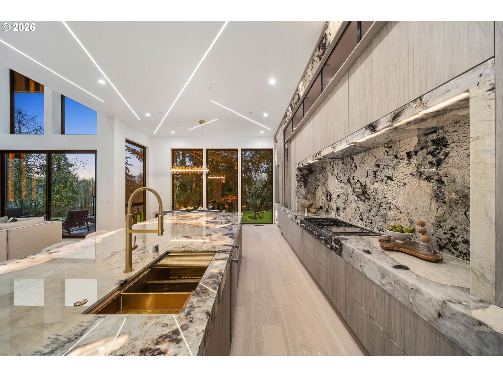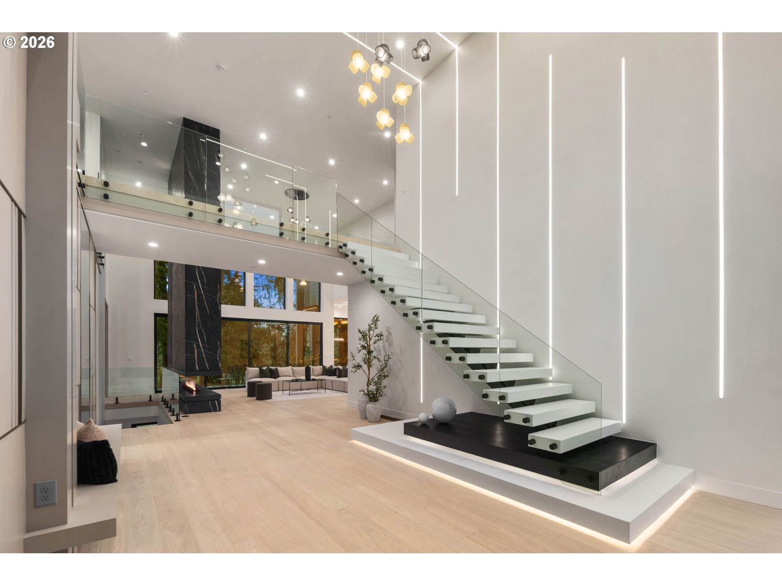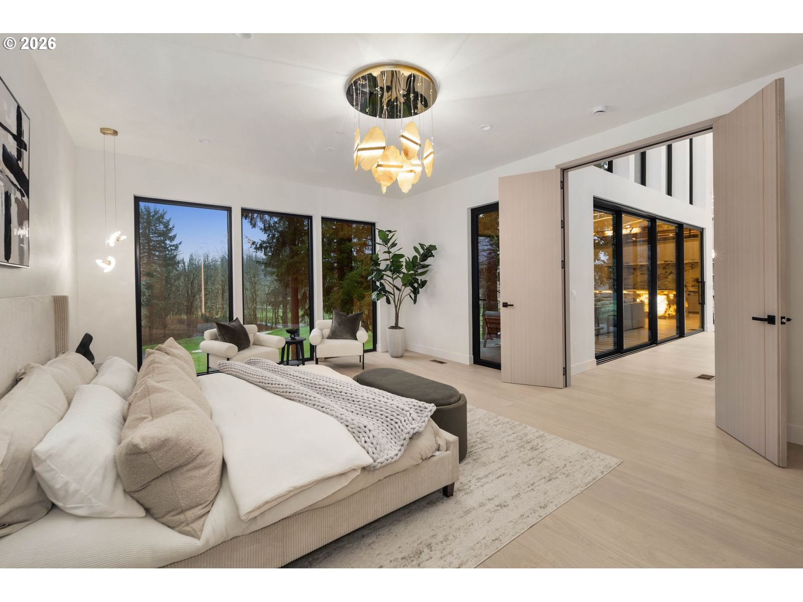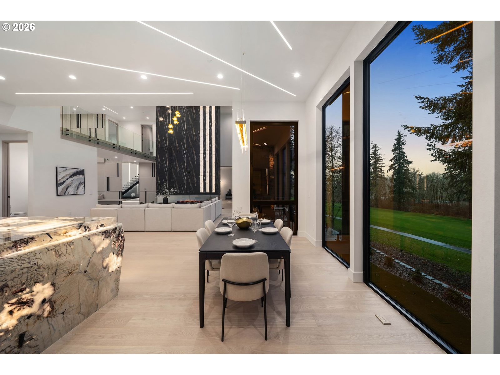 Custom residence in The Nines at Camas Meadows offering a lifestyle shaped by light, space, & direct access to Camas Meadows Golf Course from your backyard. Modern architecture meets warm textures as 21.5 ft ceilings, floating stairs, & triple pane windows create an elevated atmosphere. The Quartzite Patagonia kitchen w/ Bertazzoni suite anchors the main level, while the primary suite lives like a private retreat w/ floating tub, heated floors, & covered patio access. The lower level adds a wine wall, sauna, steam room, & 8 ft doors opening to the yard, plus a golf cart garage for instant course access. A rare blend of design, comfort, & resort-style living minutes from Vancouver & Portland. A home that defines elevated Camas living!