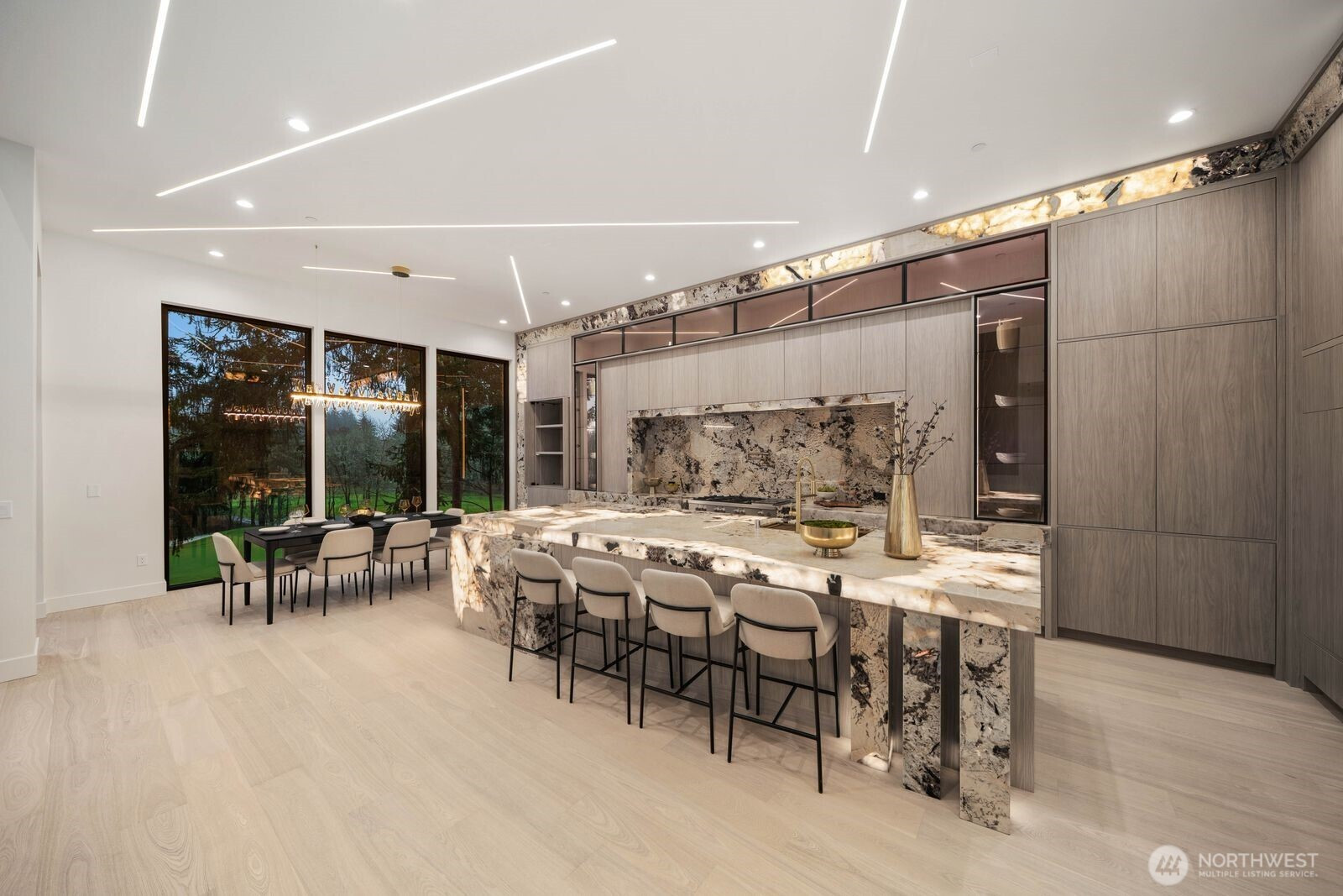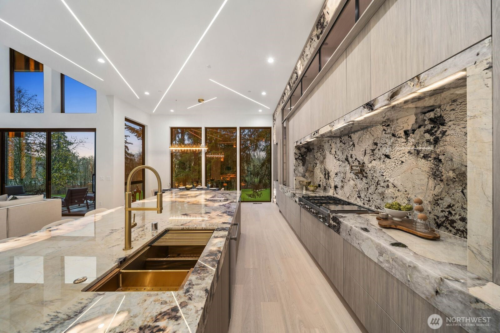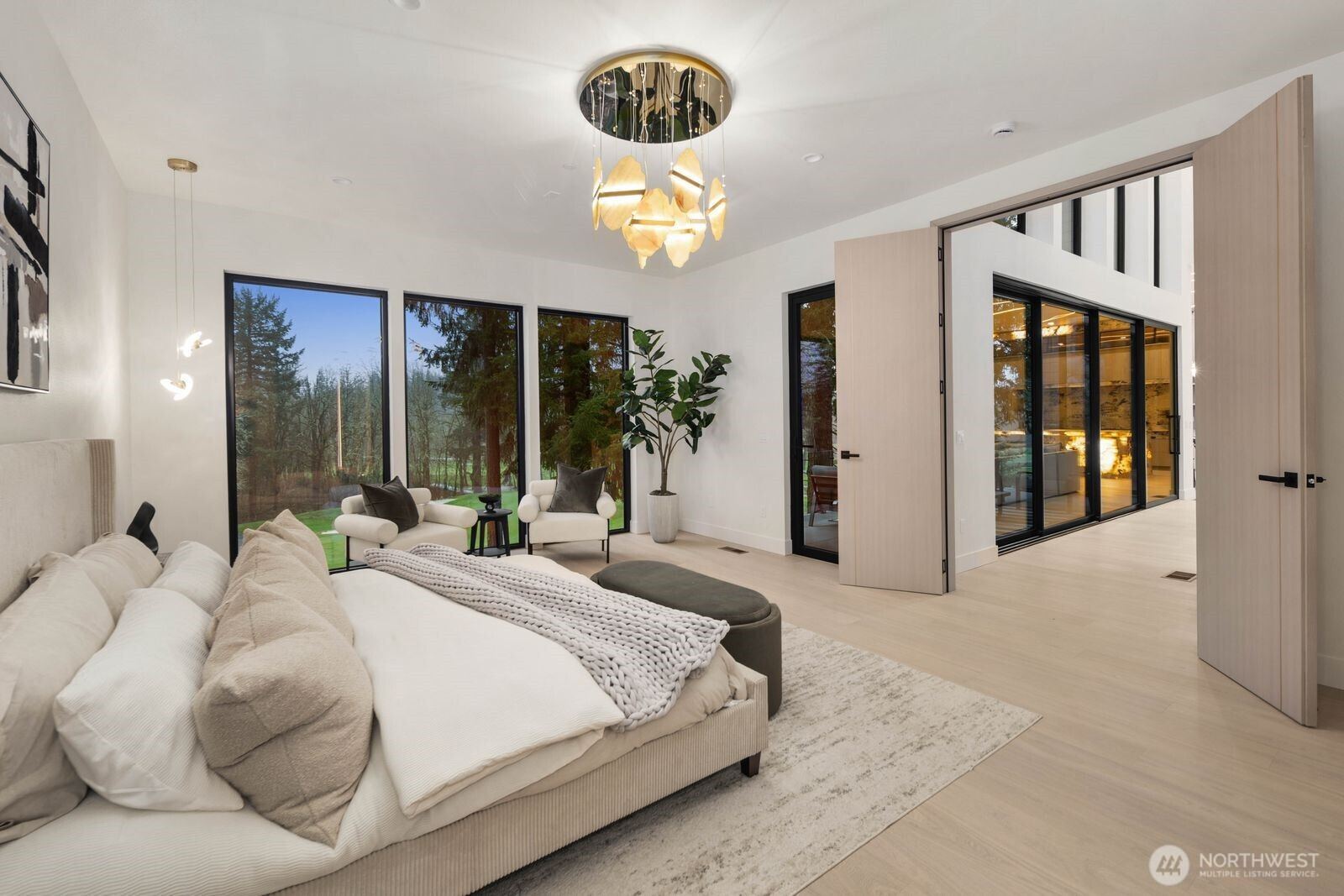 Custom residence in The Nines at Camas Meadows offering a lifestyle shaped by light, space, & direct access to Camas Meadows Golf Course from your backyard. Modern architecture meets warm textures as 21.5 ft ceilings, floating stairs, & triple pane windows create an elevated atmosphere. The Quartzite Patagonia kitchen w/ Bertazzoni suite anchors the main level, while the primary suite lives like a private retreat w/ floating tub, heated floors, & covered patio access. The lower level adds a wine wall, sauna, steam room, & 8 ft doors opening to the yard, plus a golf cart garage for instant course access. A rare blend of design, comfort, & resort-style living minutes from Vancouver & Portland. A home that defines elevated Camas living!