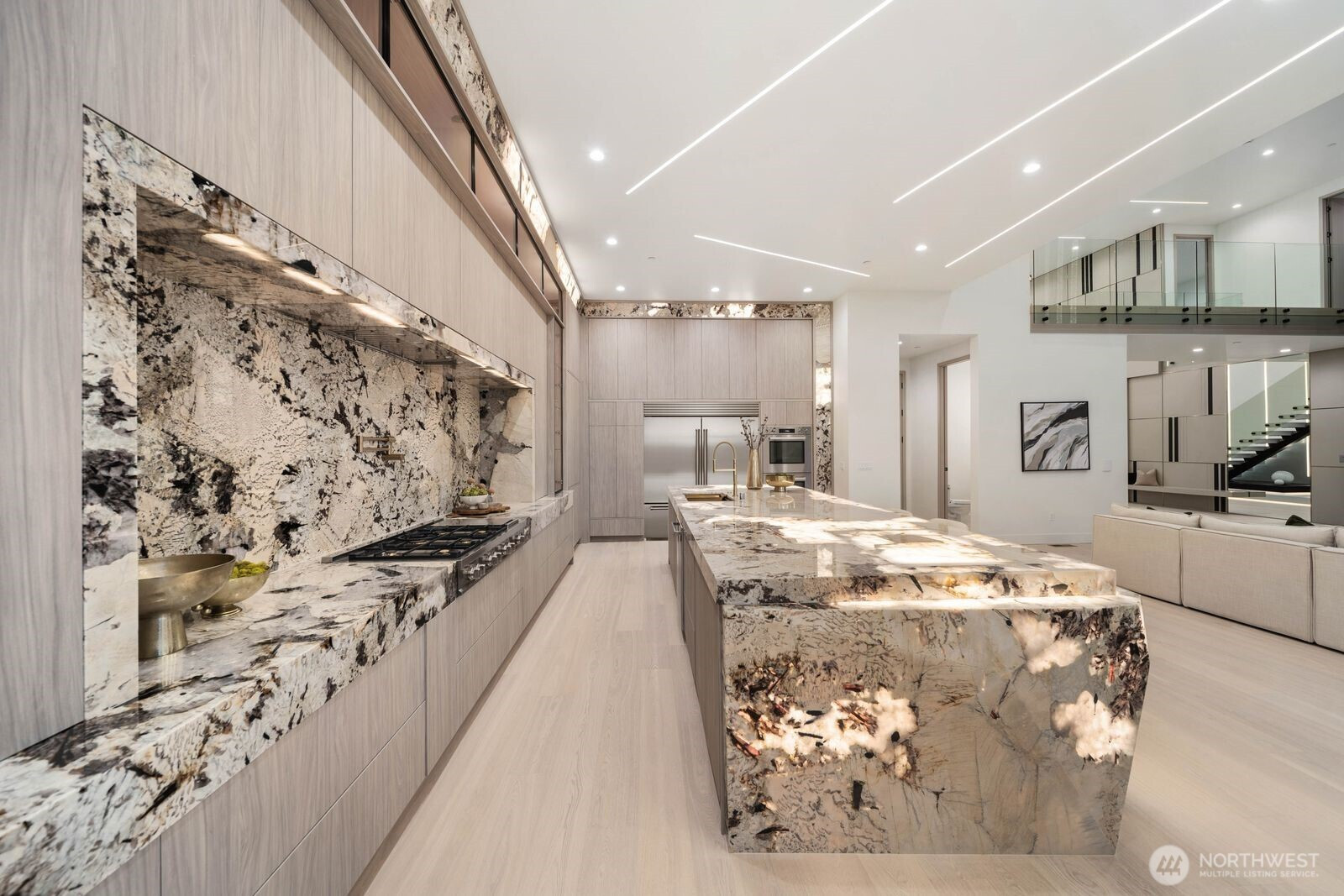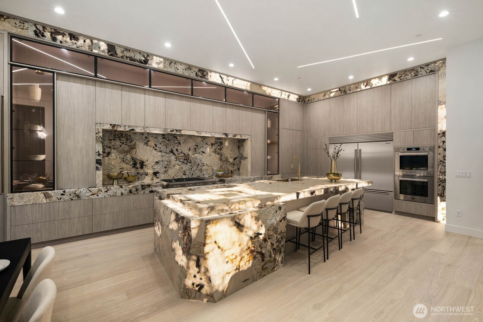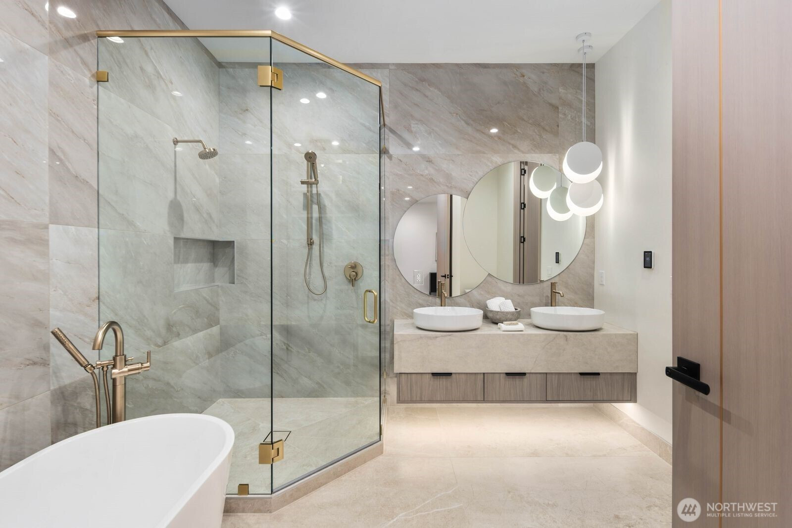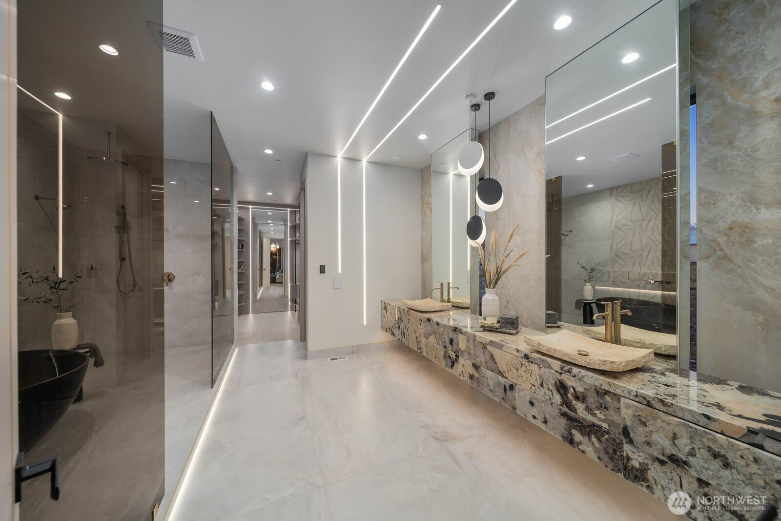 Custom residence in The Nines at Camas Meadows offering a lifestyle shaped by light, space, & direct access to Camas Meadows Golf Course from your backyard. Modern architecture meets warm textures as 21.5 ft ceilings, floating stairs, & triple pane windows create an elevated atmosphere. The Quartzite Patagonia kitchen w/ Bertazzoni suite anchors the main level, while the primary suite lives like a private retreat w/ floating tub, heated floors, & covered patio access. The lower level adds a wine wall, sauna, steam room, & 8 ft doors opening to the yard, plus a golf cart garage for instant course access. A rare blend of design, comfort, & resort-style living minutes from Vancouver & Portland. A home that defines elevated Camas living!