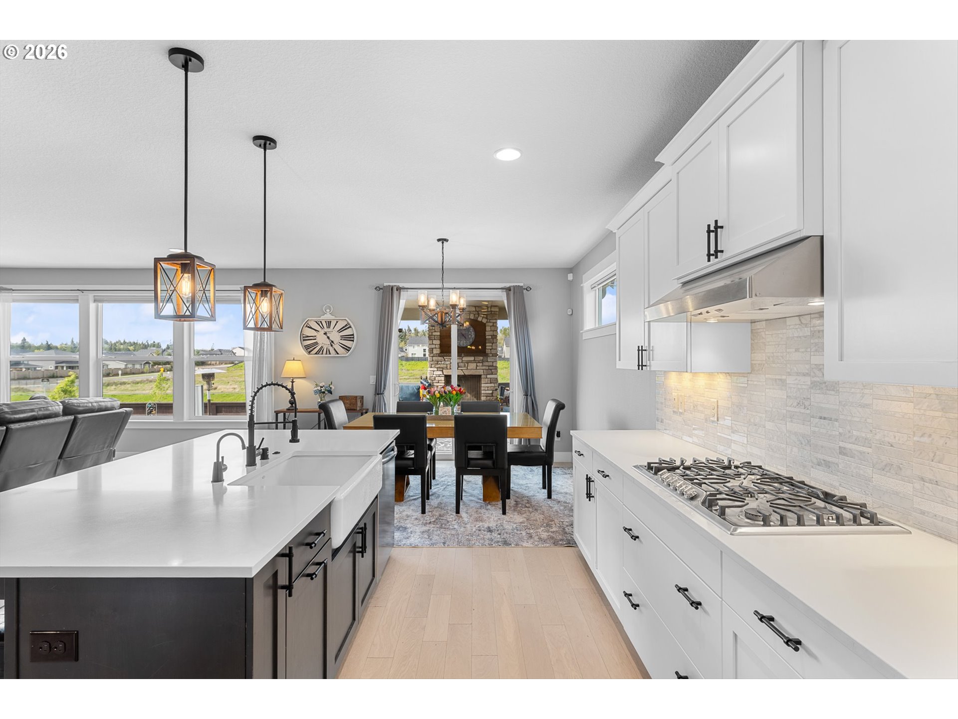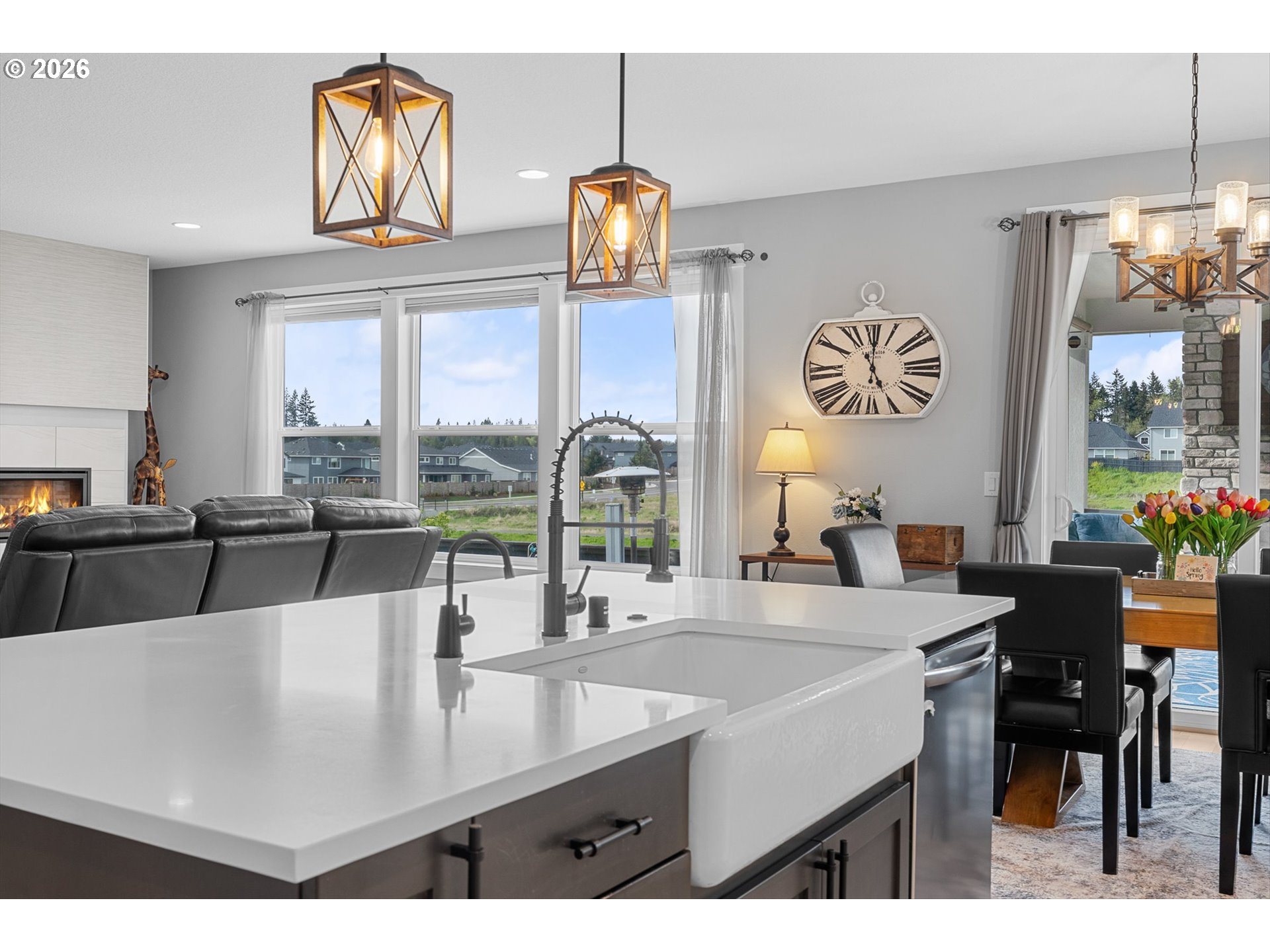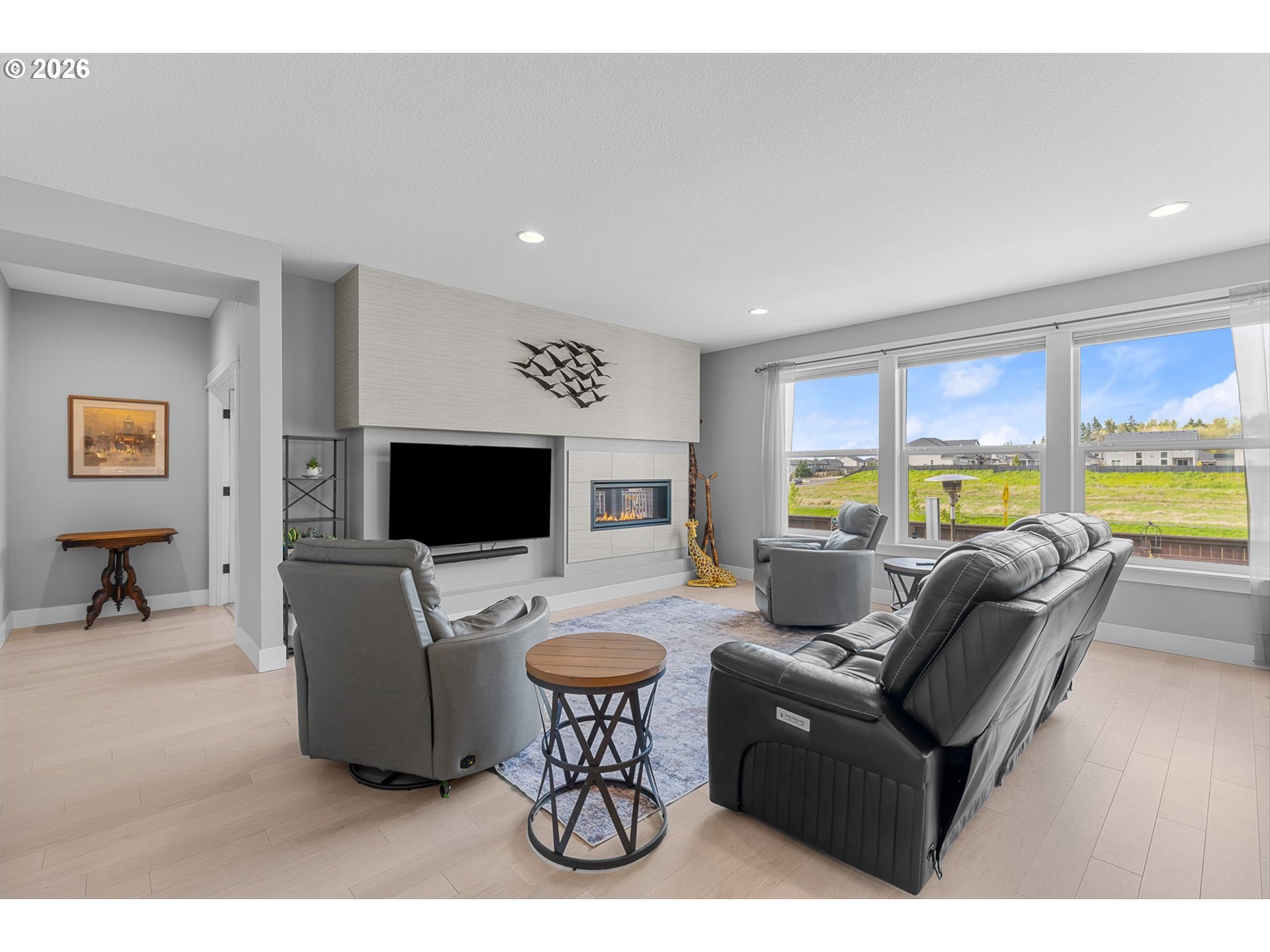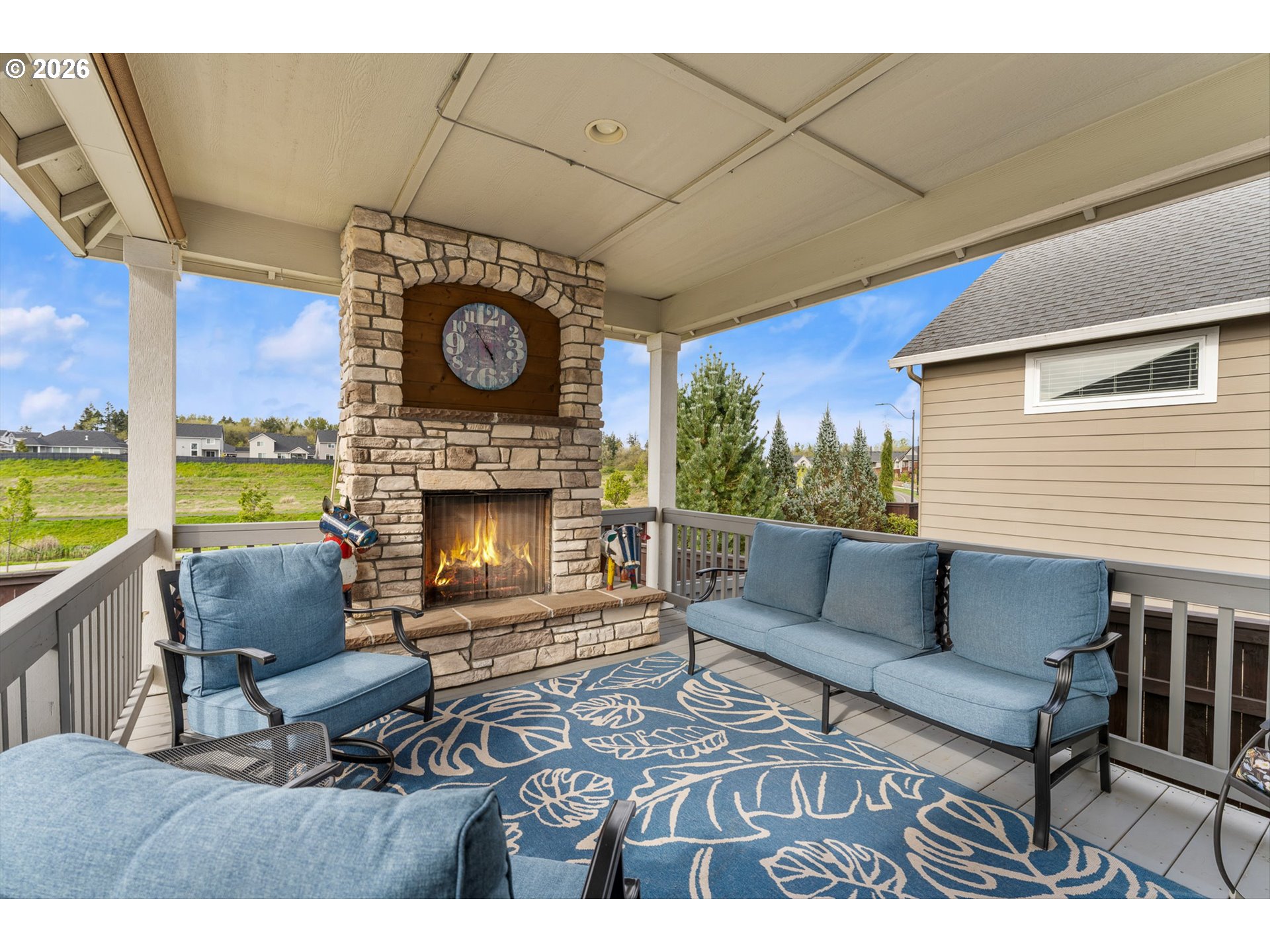 There’s something special about a home that was never just built—but designed to be felt. Welcome to 4628 S 16th Dr in Ridgefield’s coveted Seven Wells Estates, where this former Pacific Lifestyle model home blends elevated design with effortless, everyday living. Light-filled and inviting, the open-concept great room centers around a stunning designer fireplace wall—perfect for cozy nights or gathering with loved ones. The kitchen is a true showpiece, featuring crisp white cabinetry, quartz countertops, BI appliances, double ovens, and a sleek oversized island made for connection and conversation. Main-level living shines here, with a private primary suite offering a spa-like retreat—dual vanities, a walk-in tile shower with dual heads, glass enclosure, and a luxurious standalone soaking tub. A dedicated office on the main provides the perfect work-from-home space, while upstairs, a spacious bonus room offers flexibility for media, guests, or play. Step outside to your covered deck, where a striking stone fireplace creates year-round outdoor living. Overlooking thoughtfully designed landscaping and a beautifully placed yard, plus views of Mt Saint Helens, it’s the perfect setting to unwind or entertain. Refined yet welcoming, every detail has been curated to create a home that lives as beautifully as it looks—where comfort meets sophistication and every day feels just a little more inspired.