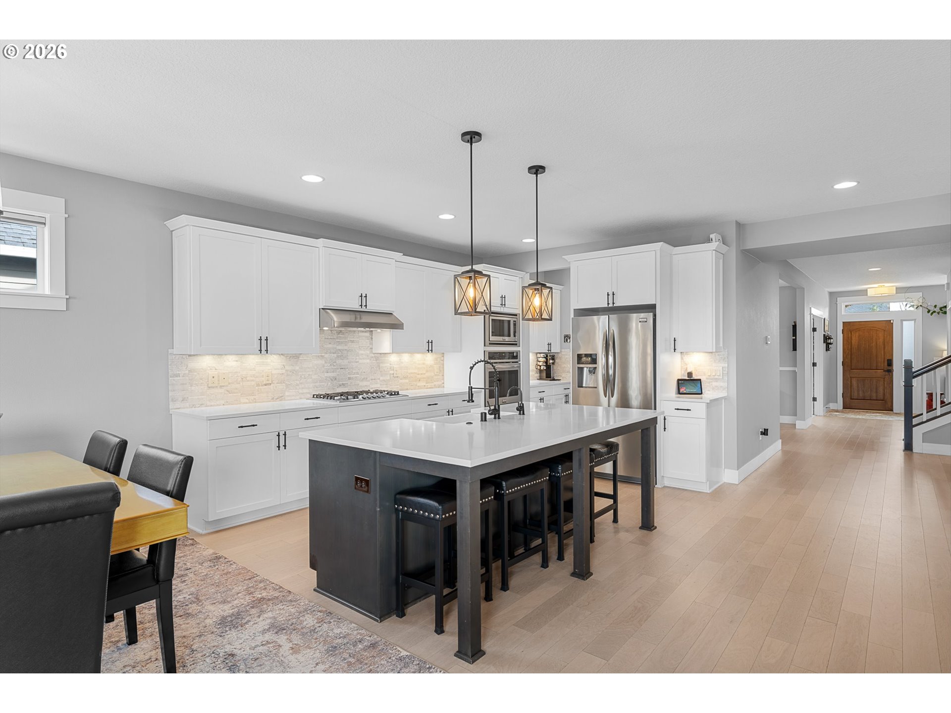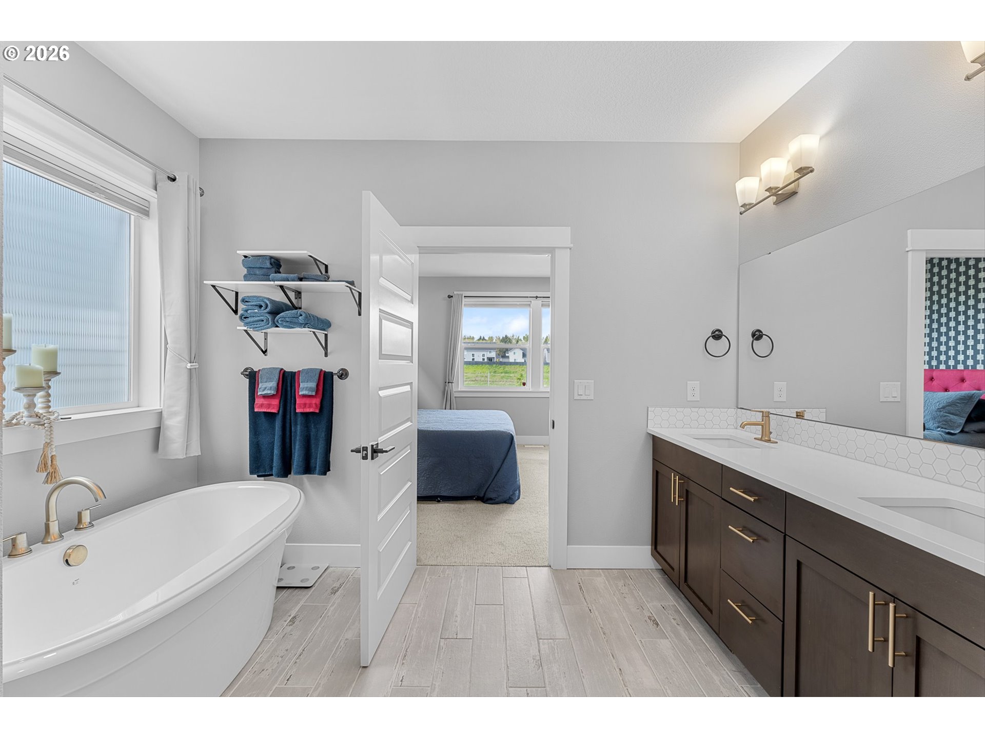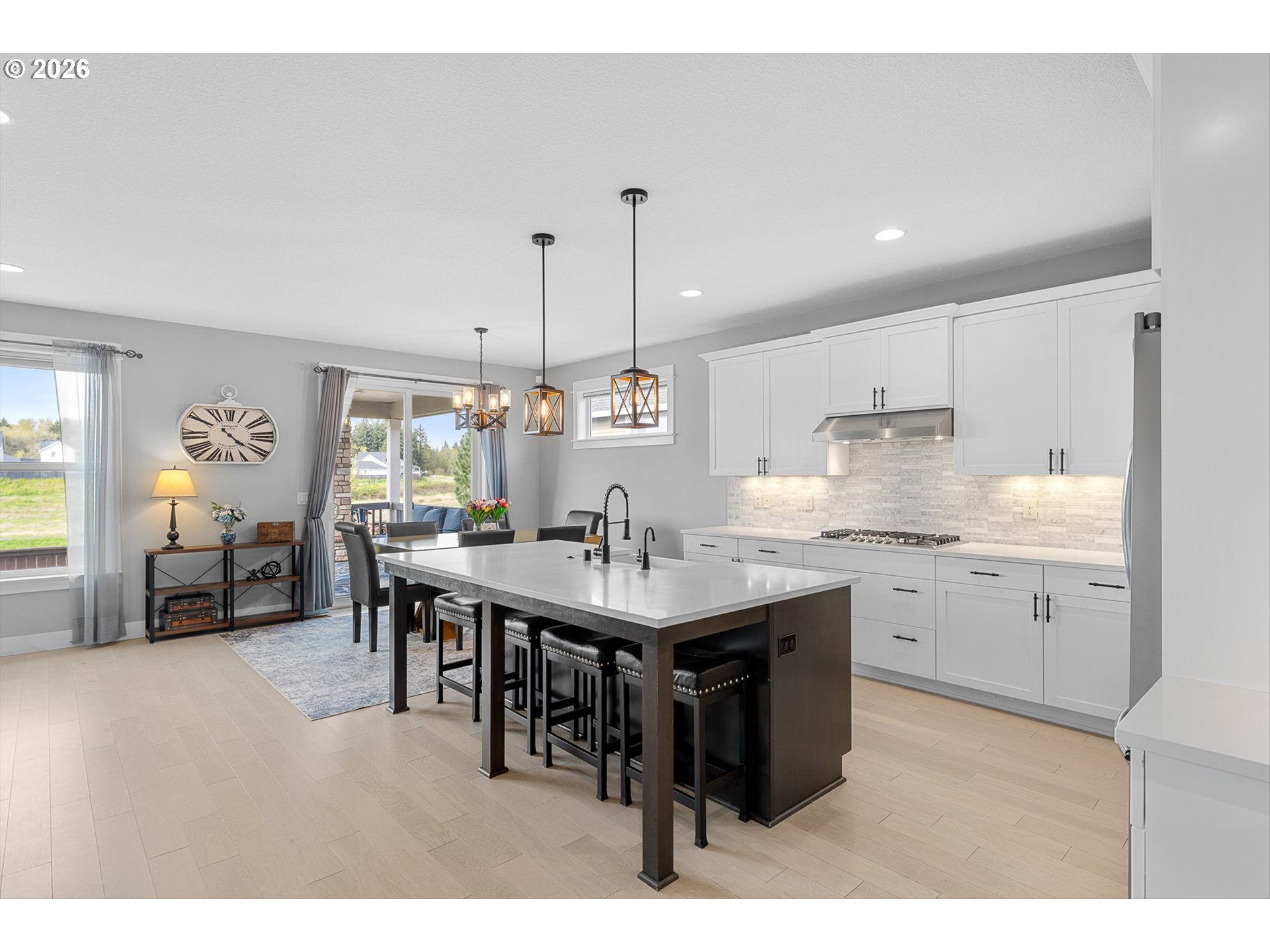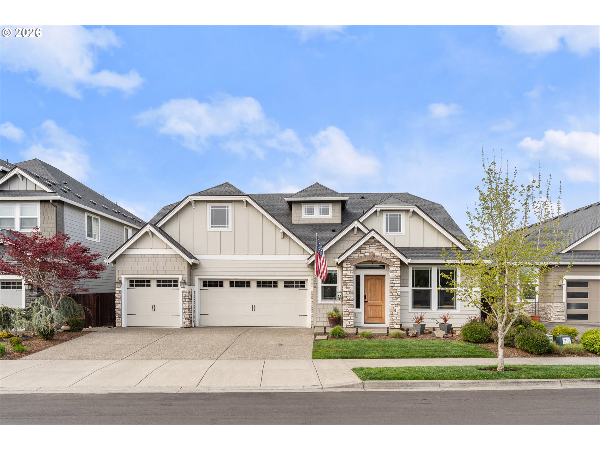 There’s something special about a home that was never just built—but designed to be felt. Welcome to 4628 S 16th Dr in Ridgefield’s coveted Seven Wells Estates, where this former Pacific Lifestyle model home blends elevated design with effortless, everyday living. Light-filled and inviting, the open-concept great room centers around a stunning designer fireplace wall—perfect for cozy nights or gathering with loved ones. The kitchen is a true showpiece, featuring crisp white cabinetry, quartz countertops, BI appliances, double ovens, and a sleek oversized island made for connection and conversation. Main-level living shines here, with a private primary suite offering a spa-like retreat—dual vanities, a walk-in tile shower with dual heads, glass enclosure, and a luxurious standalone soaking tub. A dedicated office on the main provides the perfect work-from-home space, while upstairs, a spacious bonus room offers flexibility for media, guests, or play. Step outside to your covered deck, where a striking stone fireplace creates year-round outdoor living. Overlooking thoughtfully designed landscaping and a beautifully placed yard, plus views of Mt Saint Helens, it’s the perfect setting to unwind or entertain. Refined yet welcoming, every detail has been curated to create a home that lives as beautifully as it looks—where comfort meets sophistication and every day feels just a little more inspired.