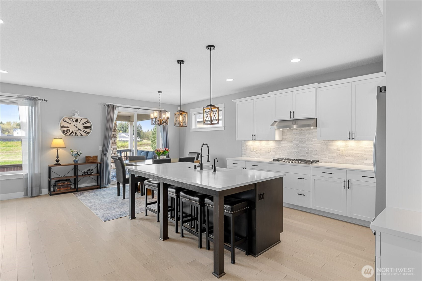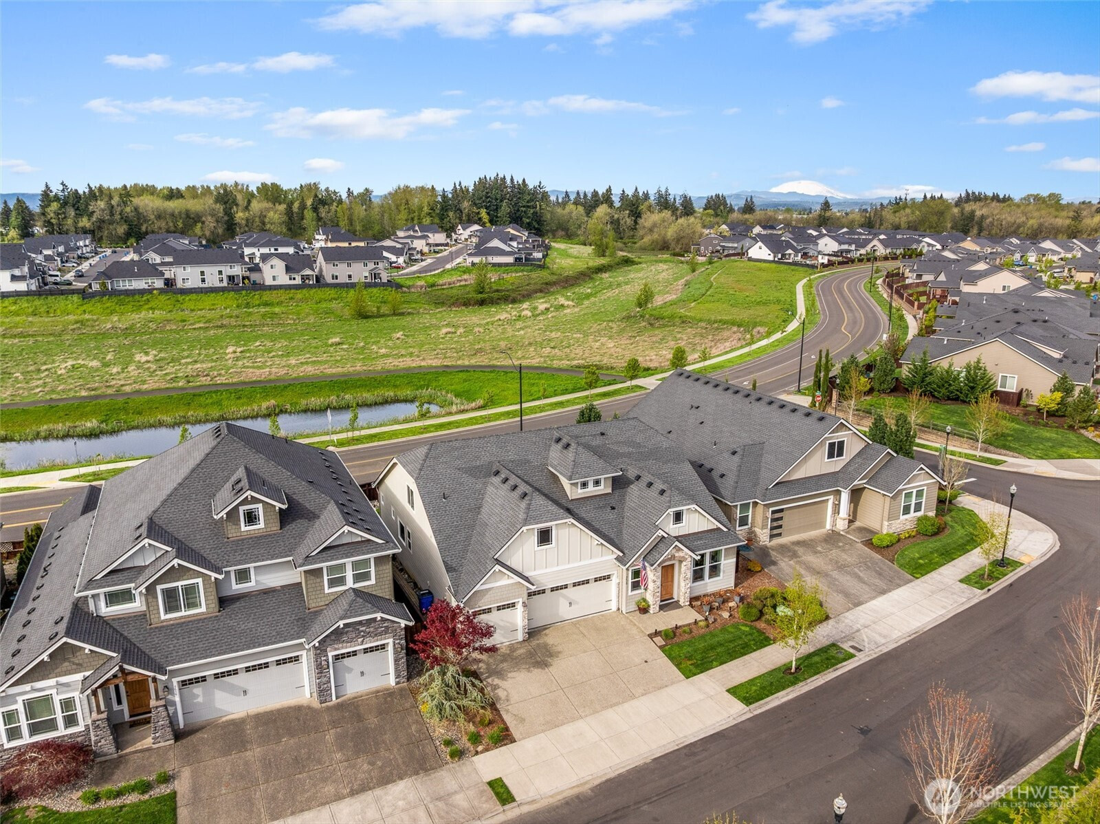 There’s something special about a home that was never just built—but designed to be felt. Welcome to 4628 S 16th Dr in Ridgefield’s coveted Seven Wells Estates, where this former Pacific Lifestyle model home blends elevated design with effortless, everyday living. Light-filled and inviting, the open-concept great room centers around a stunning designer fireplace wall—perfect for cozy nights or gathering with loved ones. The kitchen is a true showpiece, featuring crisp white cabinetry, quartz countertops, BI appliances, double ovens, and a sleek oversized island made for connection and conversation. Main-level living shines here, with a private primary suite offering a spa-like retreat—dual vanities, a walk-in tile shower with dual heads, glass enclosure, and a luxurious standalone soaking tub. A dedicated office on the main provides the perfect work-from-home space, while upstairs, a spacious bonus room offers flexibility for media, guests, or play. Step outside to your covered deck, where a striking stone fireplace creates year-round outdoor living. Overlooking thoughtfully designed landscaping and a beautifully placed yard, plus views of Mt Saint Helens, it’s the perfect setting to unwind or entertain. Refined yet welcoming, every detail has been curated to create a home that lives as beautifully as it looks—where comfort meets sophistication and every day feels just a little more inspired.