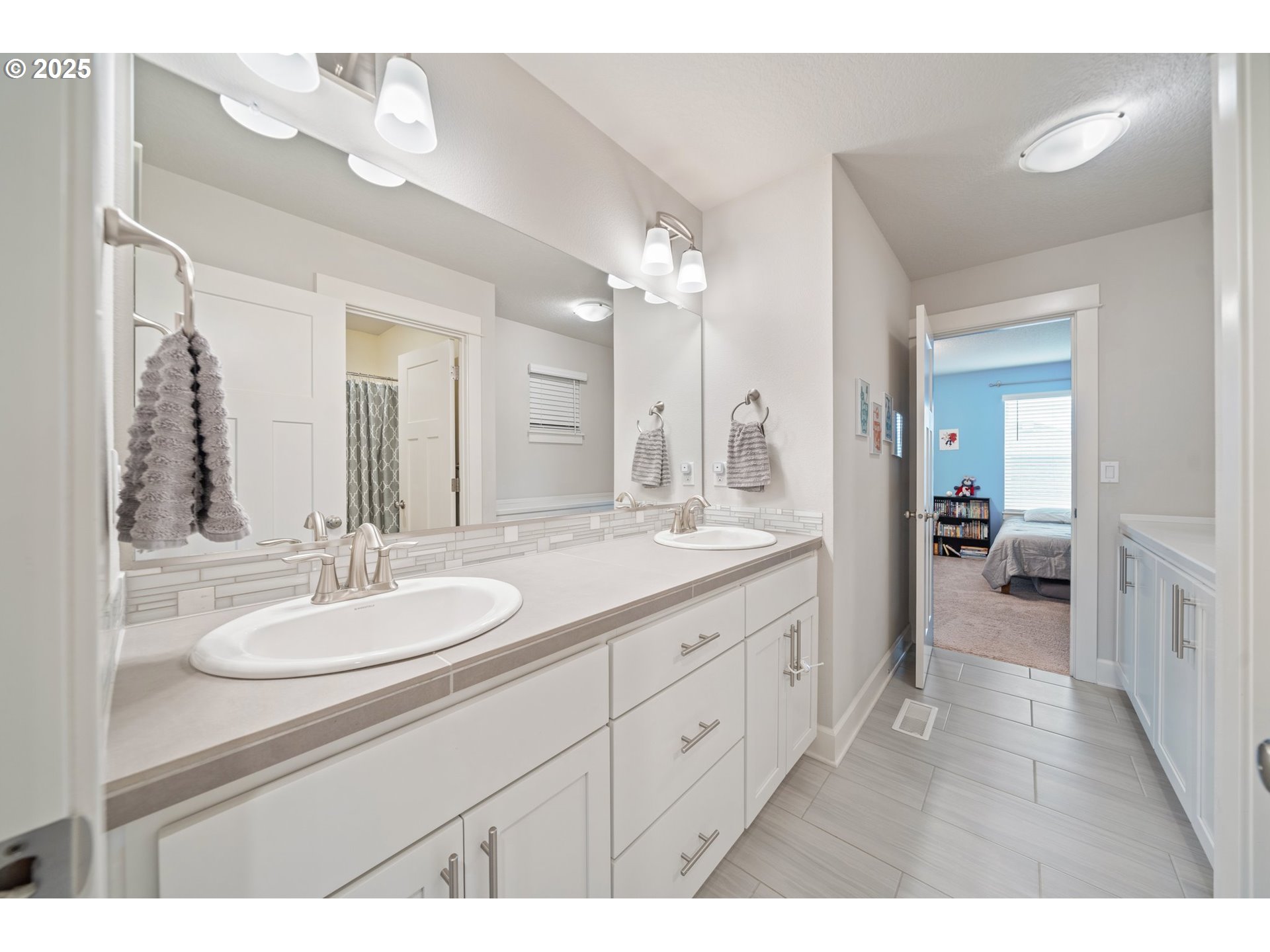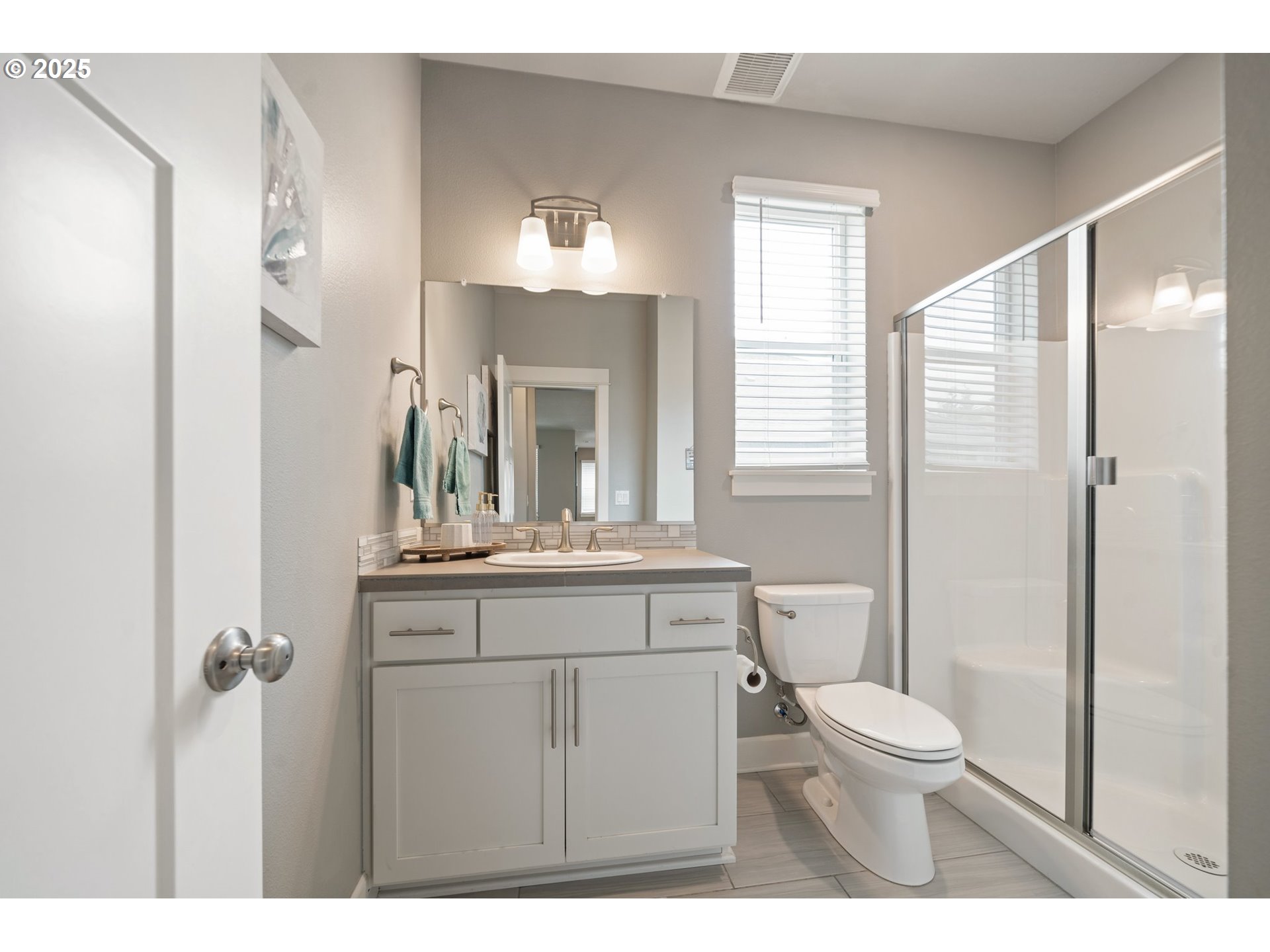 Highly desired 5 bedroom home, plus a large office, located in Seven Wells neighborhood. Spacious Kitchen with extra large quartz Island, white cabinets, walk in pantry, gas cooktop & stainless appliances. This home has an open dining, kitchen and living room area easy for entertaining & large gatherings. One bedroom on the main level with full bathroom. Primary bedroom includes an extra large space that could be an office or work out space or just an additional living space. Primary bath has a generous walk in closet, soaker tub and tiled shower. Sizable upstairs bedrooms with large bathroom, a great bonus room, *PLUS~ the house has upgraded paint for wipe down friendly walls.* Three car oversized garage, fully fenced level backyard with Mega Slam adjustable basketball hoop & concrete pad, garden shed and poured concrete sidewalks around perimeter of home. Location is perfect with walking/running trails but also close to shopping, freeways and all the new development happening in Ridgefield!