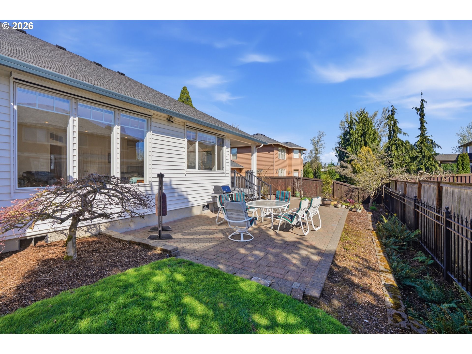 Located in the sought-after Highlands at Pleasant Valley neighborhood is this lovely single story home filled with light! As you enter the home you're greeted with hardwood floors, and a formal living and dining room. The kitchen opens to a second, everyday living space with breakfast nook. The living room leads out to a covered deck and patio area in the backyard. The primary suite delivers an oversized bathroom featuring a soaking tub and a walk-in shower. Two of the bedrooms share a jack and Jill bathroom with the fourth currently configured as a home office, ideal for anyone working from home who wants a dedicated, quiet workspace. This home also offers a three car garage with plenty of room for vehicles, storage, or a workshop setup.