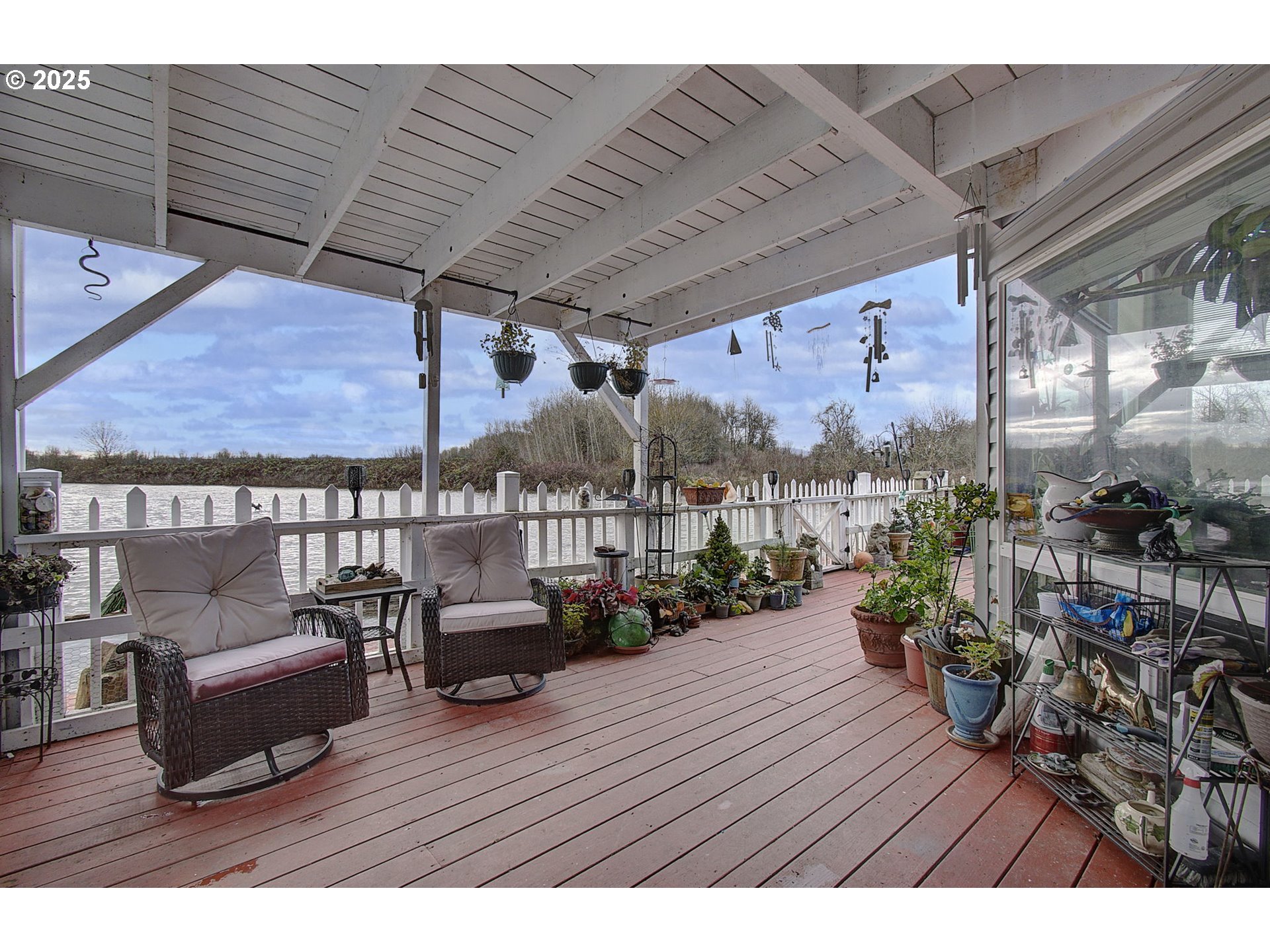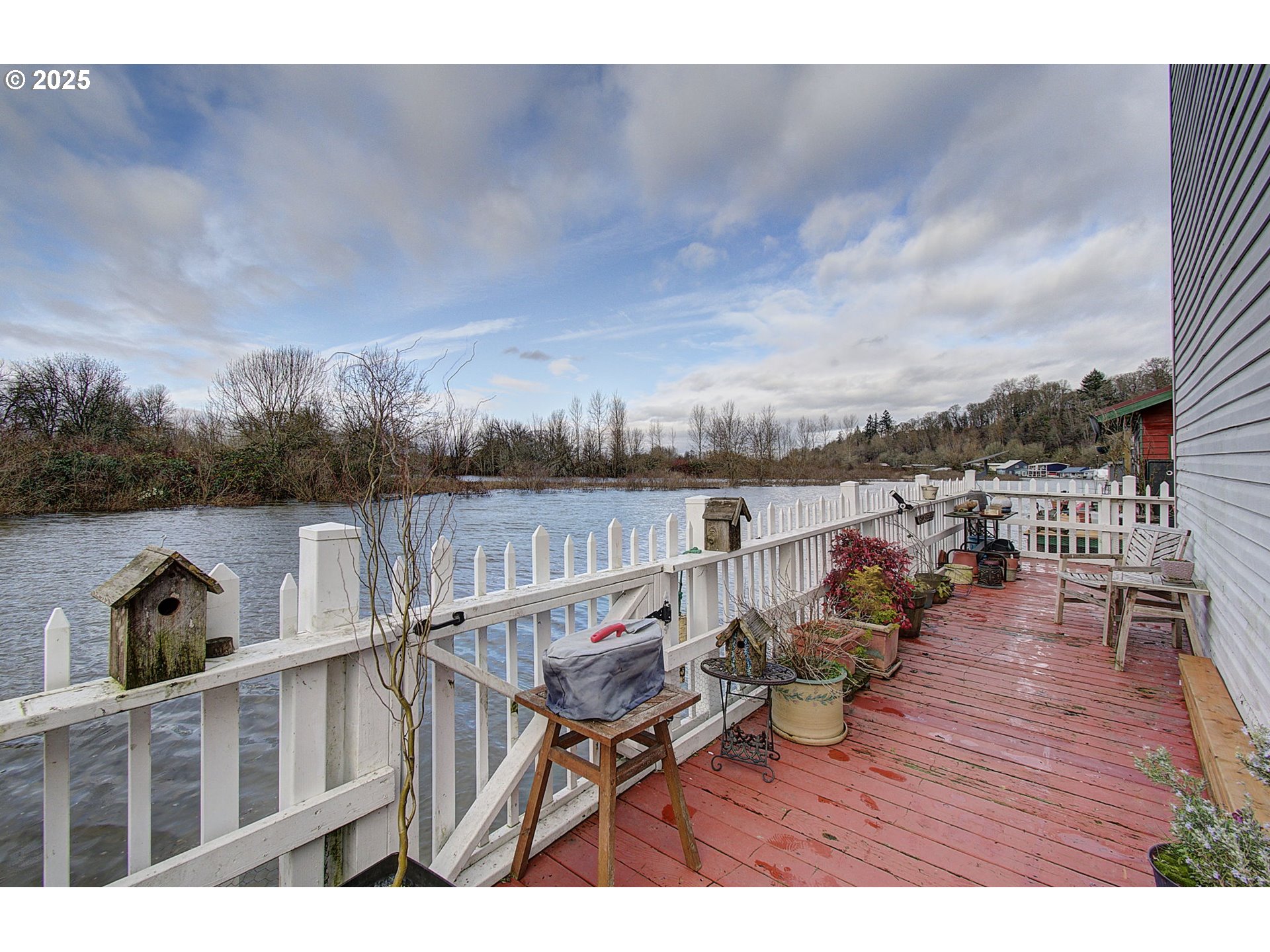 Unobstructed views abound! Come home to this beautiful 2-story floating home ideally located in Felida Moorage. This end-dock position offers panoramic, unobstructed views of Lake River stretching toward Vancouver Lake. Enjoy peaceful sunsets, birdwatching, fishing, and starry nights right from your own home. This home features 2 bedrooms | 2 bathrooms, a metal roof, durable vinyl siding, and updated log and stringer flotation. The main living area offers large windows that fill the space with natural light, and the cozy kitchen includes all appliances. The primary bedroom suite, with full window views of the water, features access to a covered upper deck—perfect for morning coffee or summer sunsets. Additional lower-level deck space is ideal for outdoor living. Wraparound decking includes access gates directly to the water, perfect for paddleboarding, kayaking, or boat access. Recent updates include a new sliding door, a new water intake pressure valve, and a new expansion tank installed in August 2025. Two large locking storage units provide easy access for seasonal and additional storage needs. Don’t miss this opportunity to own an exceptional floating home with stunning sunset views on the water.