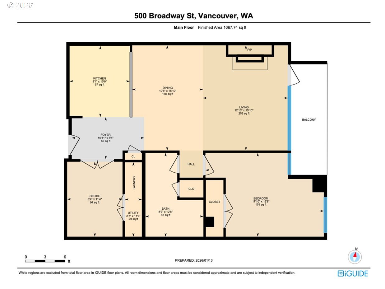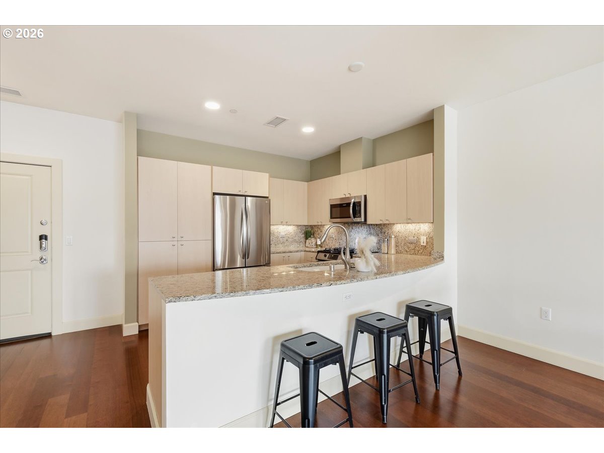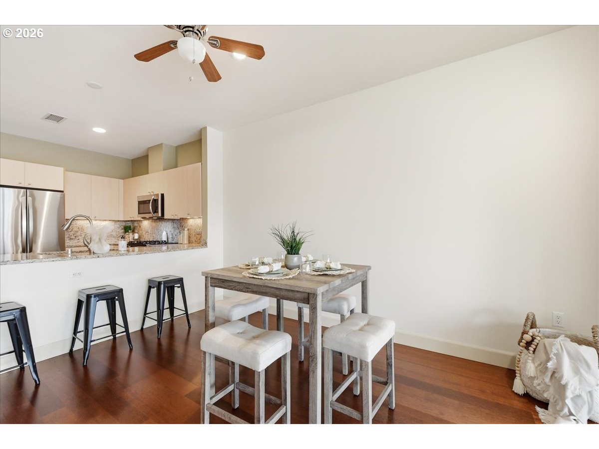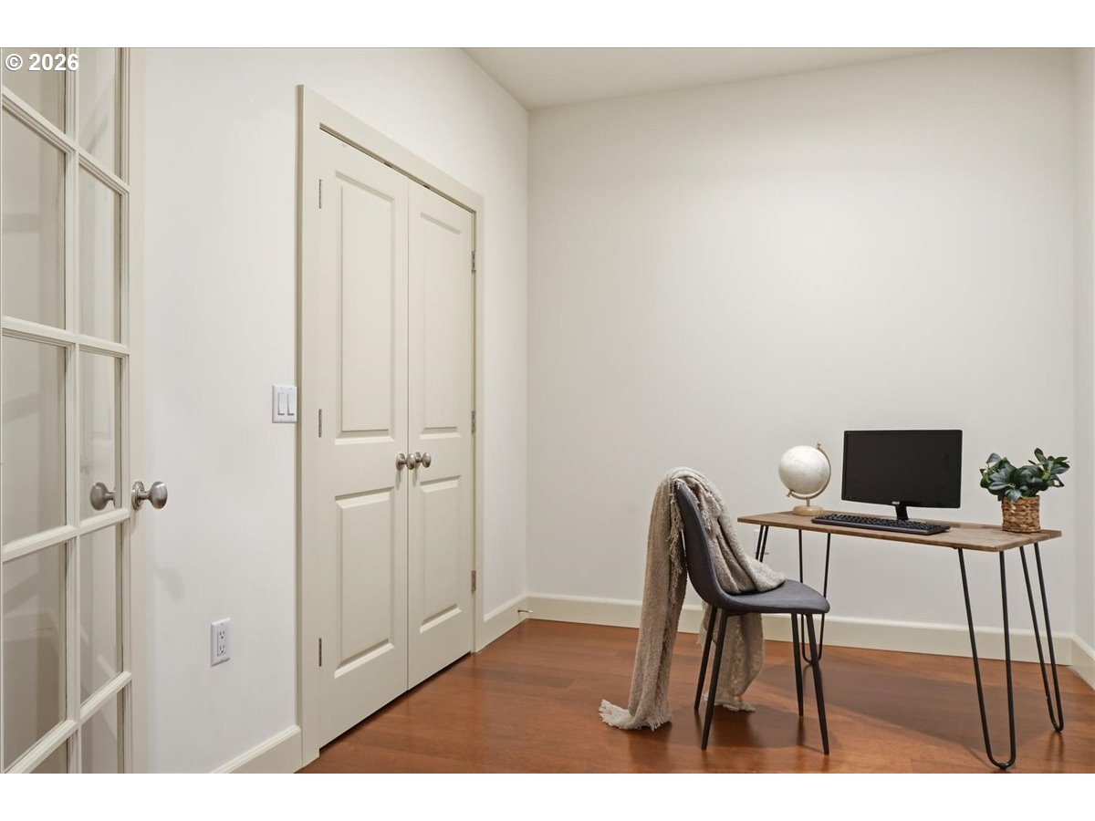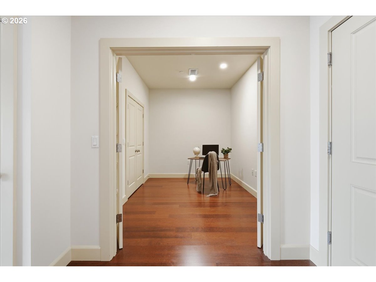 Life up top is a breeze in this spacious west-facing 1-bed/1-bath penthouse condo with a view! High ceilings and huge windows bathe this home in natural light and a dazzling cityscape. Brazilian cherry hardwood floors lend warmth and tasteful depth to the kitchen and open living area. In the kitchen, you'll find stainless appliances and tons of granite counter space. The gas stove will have you cooking with fire (and the HOA covers gas)! Kitchen cabinets were replaced in 2023. Kitchen countertop includes an eat bar. In the living room, a gas fireplace beckons you to get cozy, while a private balcony offers you a breath of fresh air high above burgeoning downtown Vancouver. Heavy-duty double pane windows help provide quiet & comfort in the heart of the city. The bedroom is bright and awash in natural light, with wall-to-wall carpet and a large closet. The tile bathroom has a long double vanity, extra storage, and walk-in tile shower with tile seat. French doors open to the den/office, where you'll also find the utility closet. All appliances stay. 1 block from Main St, 2 blocks from Esther Short park, and about 5 blocks to waterfront and upcoming Terminal 1 project. HOA dues cover gas, water/sewer, and trash--this kind of comprehensive utilities coverage is rare. Resident parking is covered, gated & secure; spots are deeded. Private storage units are in resident parking area. Residents also have a private elevator & mailroom, accessible only by key, code or fob. This condo offers both serenity and security in the city--who says you can't have your cake and eat it, too?!