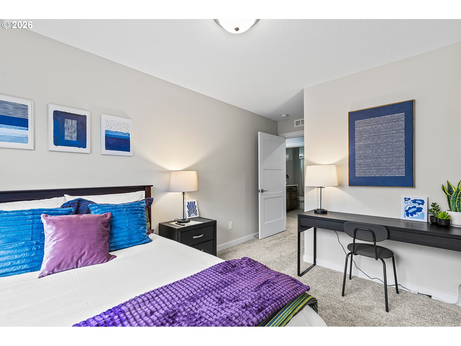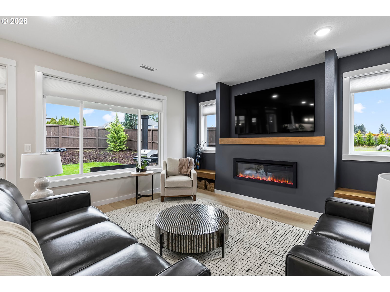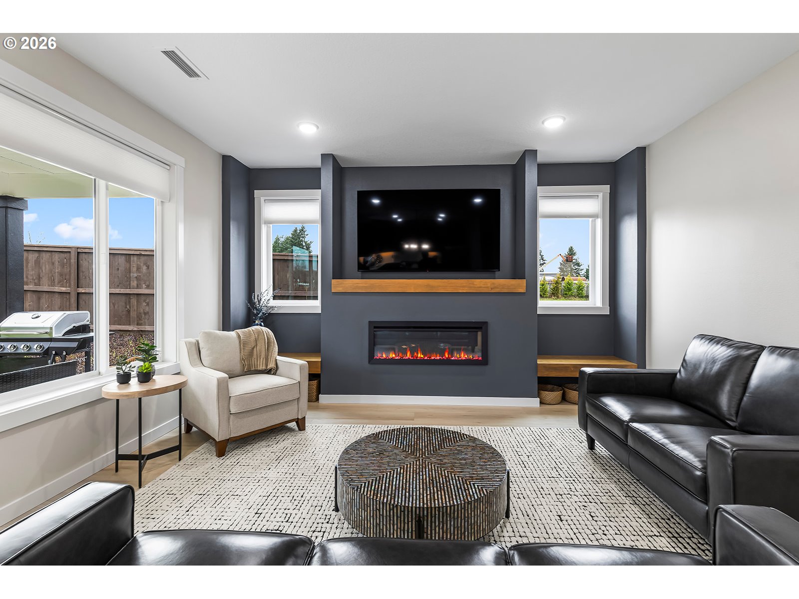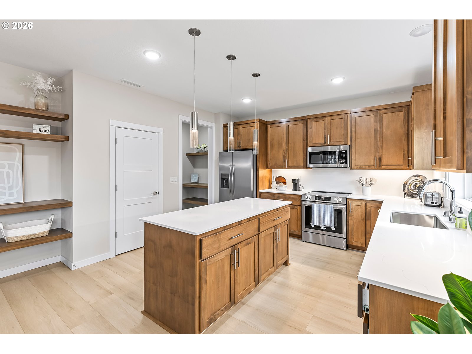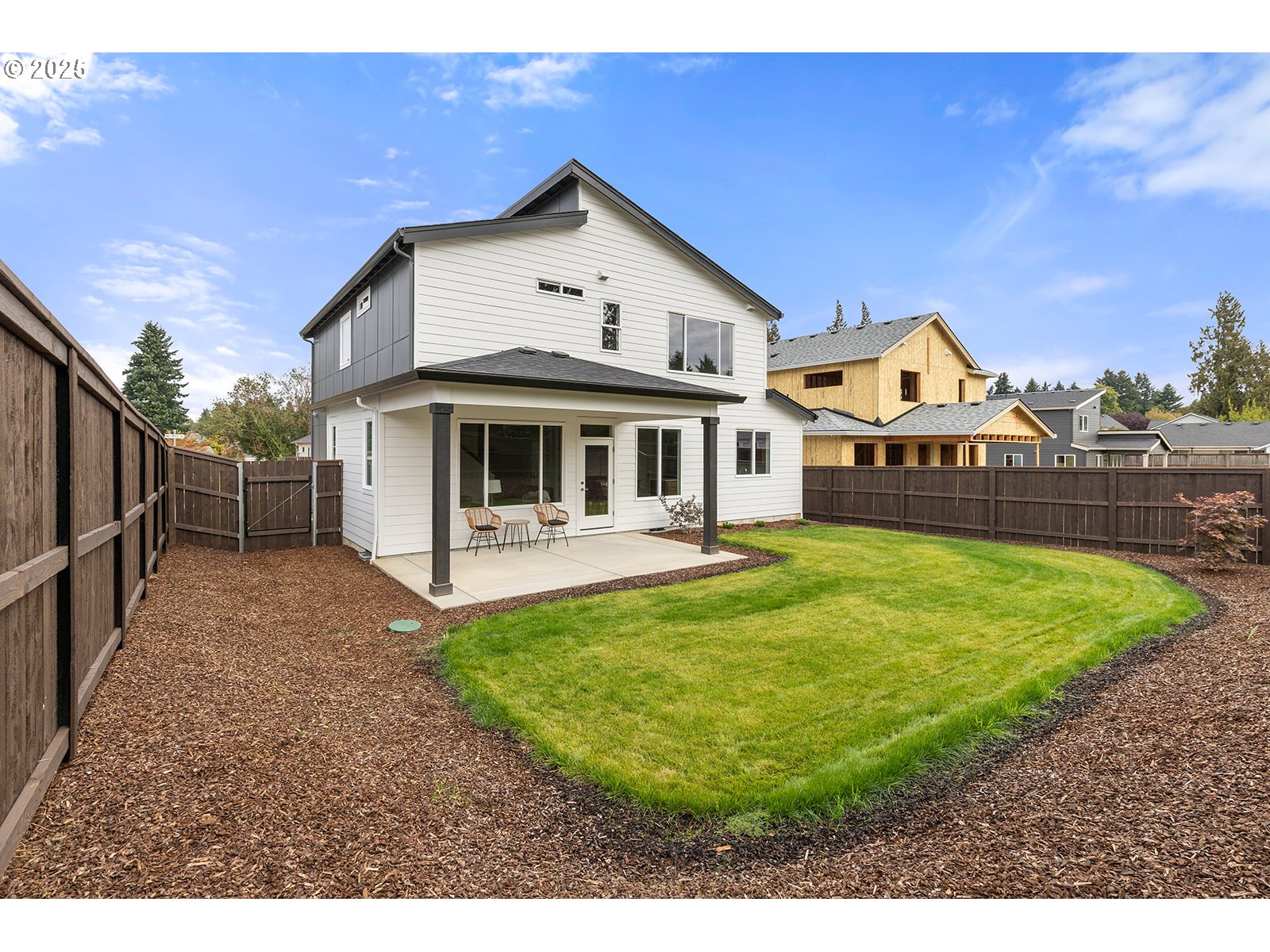 MOVE IN READY NOW in Stevens Glen! COMPLETE WITH FENCE, FRIDGE, WASHER, DRYER AND BLINDS! Ask about our LOW INTEREST RATE options. The new Salvia plan boasts contemporary finishes and a great room flooded with light from the wall of windows. You'll love relaxing in front of the fireplace which features stained Alder shelves on either side...a gorgeous room to spend time in! Custom touches are found throughout including the built-in stained shelves in your dining room which walks out to the huge covered patio for outdoor entertaining all year long...it's 18 ft wide x 12 ft deep! Beautiful custom cabinets and quartz counters throughout. Chef's kitchen features a large island, big walk-in pantry with built-in shelves and special touches like soft-close pull-out trash. You'll stay organized with a convenient home office/den on the main floor with a walk-in closet for extra storage. Upstairs, the primary suite has a big walk-in closet, double sinks in a quartz vanity, stained open linen shelves, and a walk-in shower. Three additional bedrooms share a hall bathroom and close proximity to the laundry room complete with a sink. Add in a mudroom entry from the garage with built-in shelves and coat hooks, and you'll never need to move again! Your large fenced in yard is professionally landscaped with an automatic irrigation system. Enjoy the parklet across the street and the friendly and peaceful surrounding neighborhood. Built with Evergreen Homes' trademark quality, you'll enjoy energy savings from Day 1 while keeping your home at a comfortable temperature all year. Complete with a Trane heat pump efficiently delivering heating and cooling and high-end blown in insulation, plus Milgard windows, you're buying a home built to last.