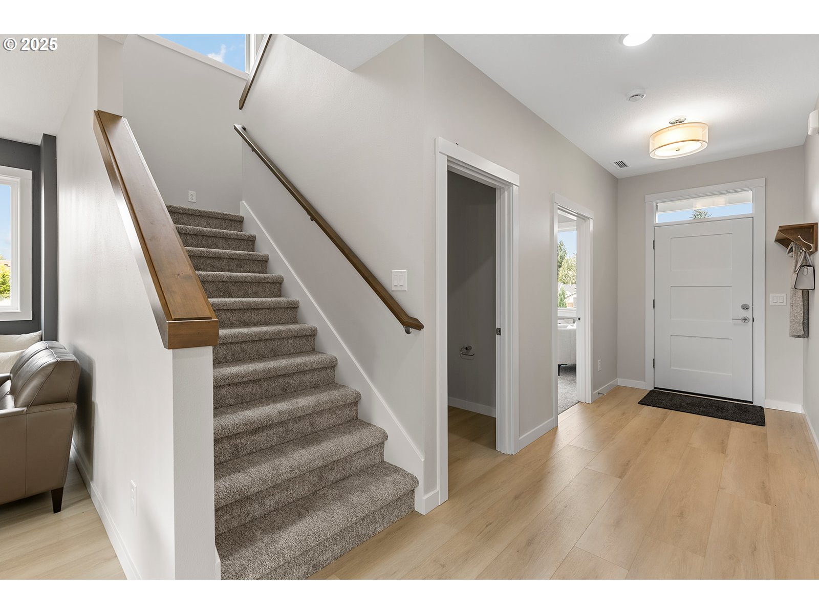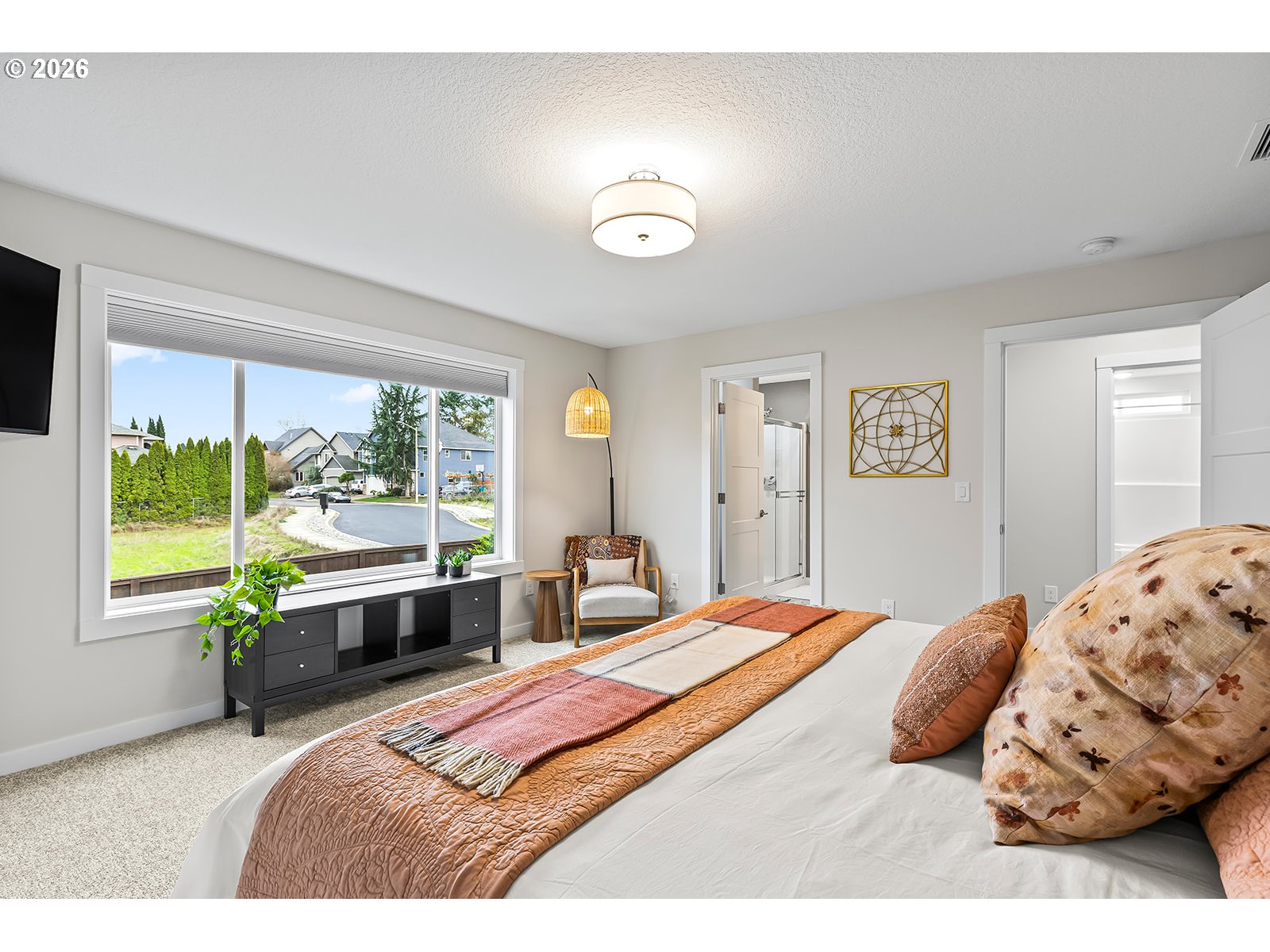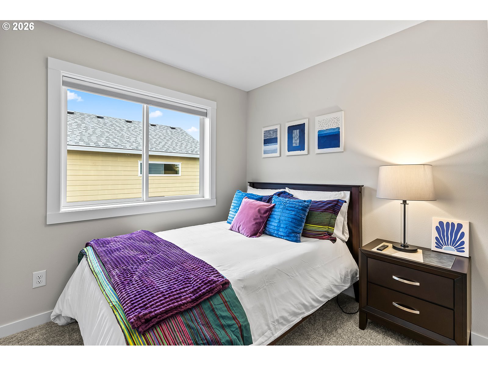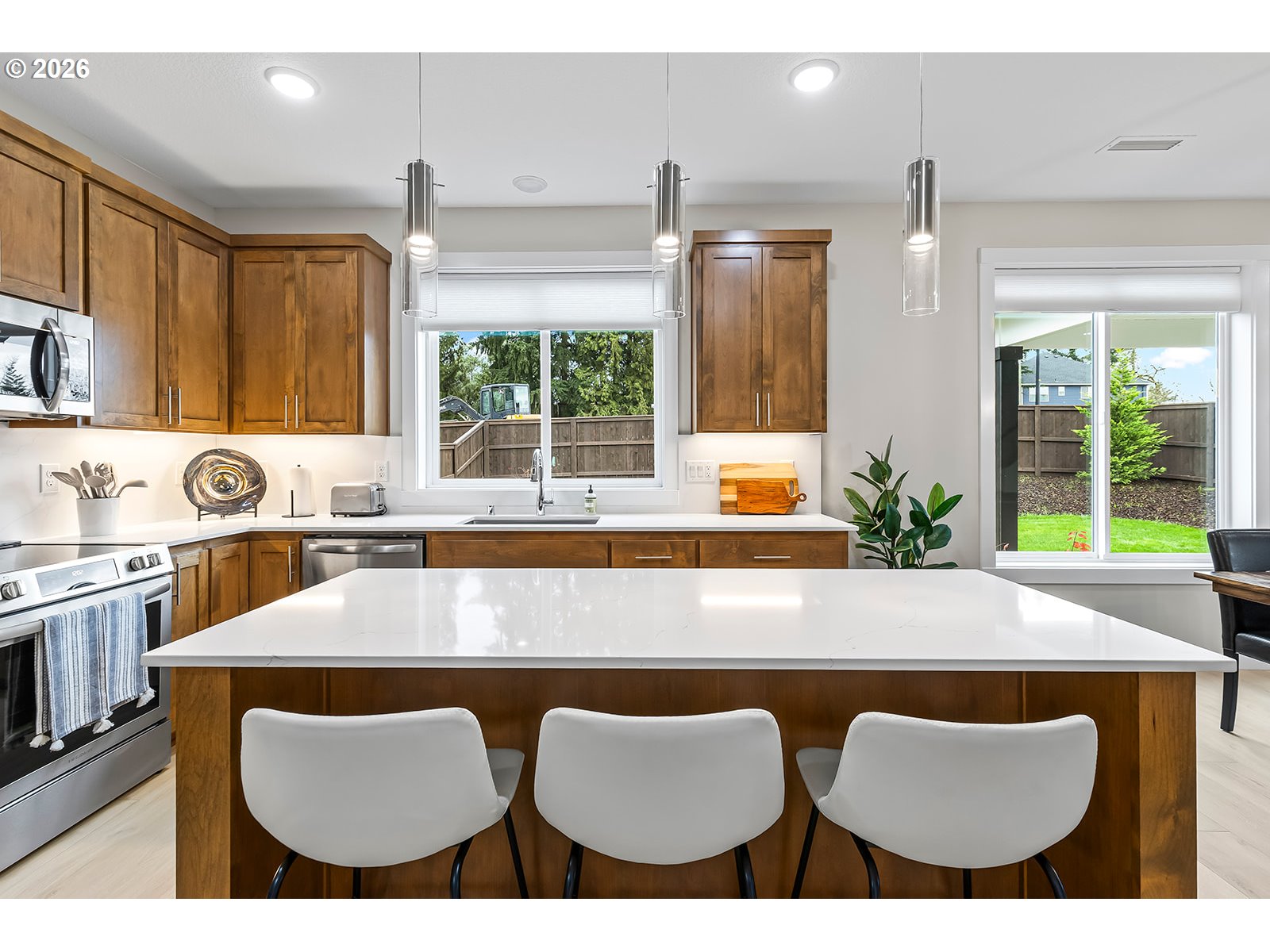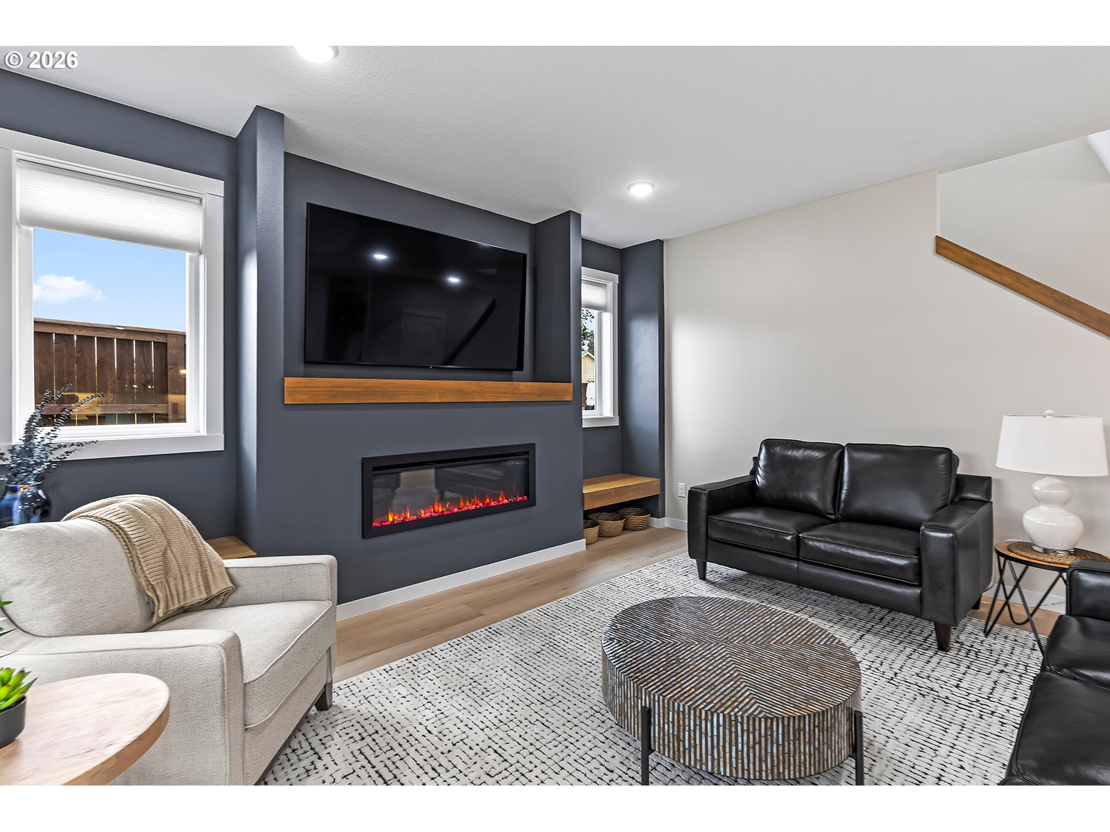 MOVE IN READY NOW in Stevens Glen! COMPLETE WITH FENCE, FRIDGE, WASHER, DRYER AND BLINDS! Ask about our LOW INTEREST RATE options. The new Salvia plan boasts contemporary finishes and a great room flooded with light from the wall of windows. You'll love relaxing in front of the fireplace which features stained Alder shelves on either side...a gorgeous room to spend time in! Custom touches are found throughout including the built-in stained shelves in your dining room which walks out to the huge covered patio for outdoor entertaining all year long...it's 18 ft wide x 12 ft deep! Beautiful custom cabinets and quartz counters throughout. Chef's kitchen features a large island, big walk-in pantry with built-in shelves and special touches like soft-close pull-out trash. You'll stay organized with a convenient home office/den on the main floor with a walk-in closet for extra storage. Upstairs, the primary suite has a big walk-in closet, double sinks in a quartz vanity, stained open linen shelves, and a walk-in shower. Three additional bedrooms share a hall bathroom and close proximity to the laundry room complete with a sink. Add in a mudroom entry from the garage with built-in shelves and coat hooks, and you'll never need to move again! Your large fenced in yard is professionally landscaped with an automatic irrigation system. Enjoy the parklet across the street and the friendly and peaceful surrounding neighborhood. Built with Evergreen Homes' trademark quality, you'll enjoy energy savings from Day 1 while keeping your home at a comfortable temperature all year. Complete with a Trane heat pump efficiently delivering heating and cooling and high-end blown in insulation, plus Milgard windows, you're buying a home built to last.