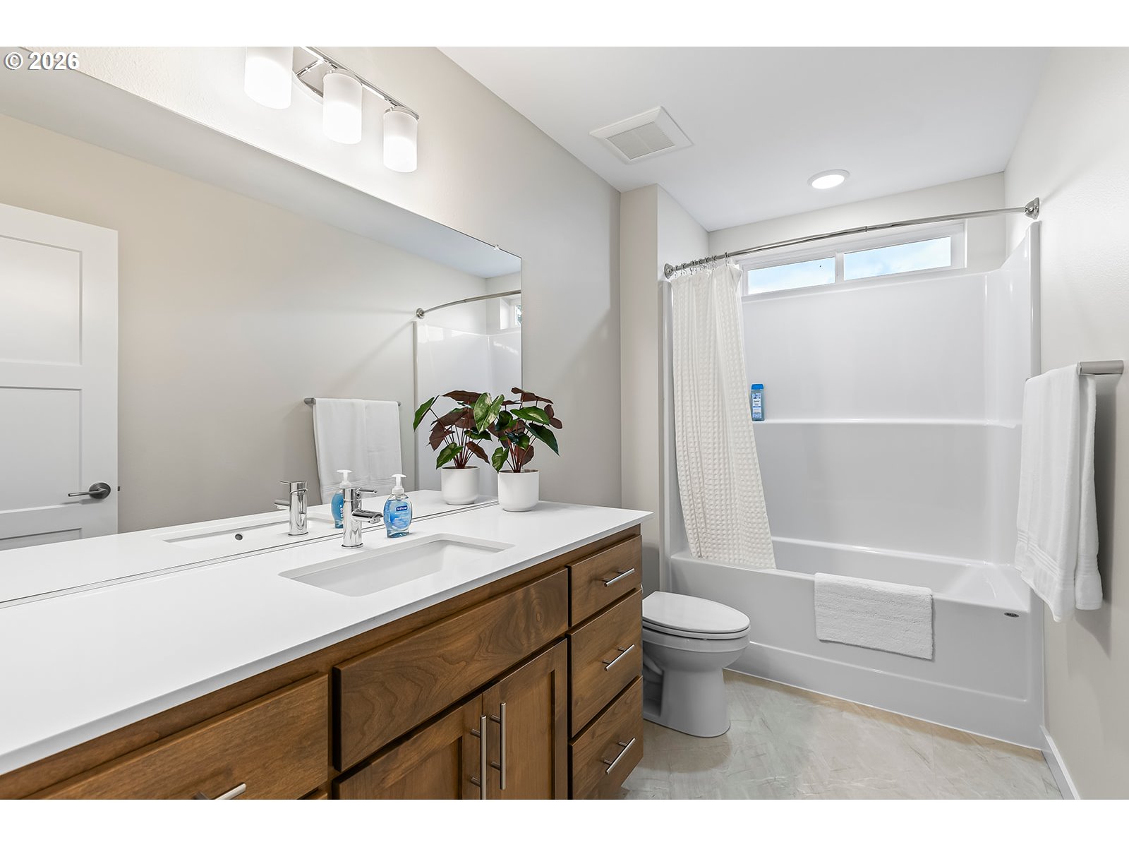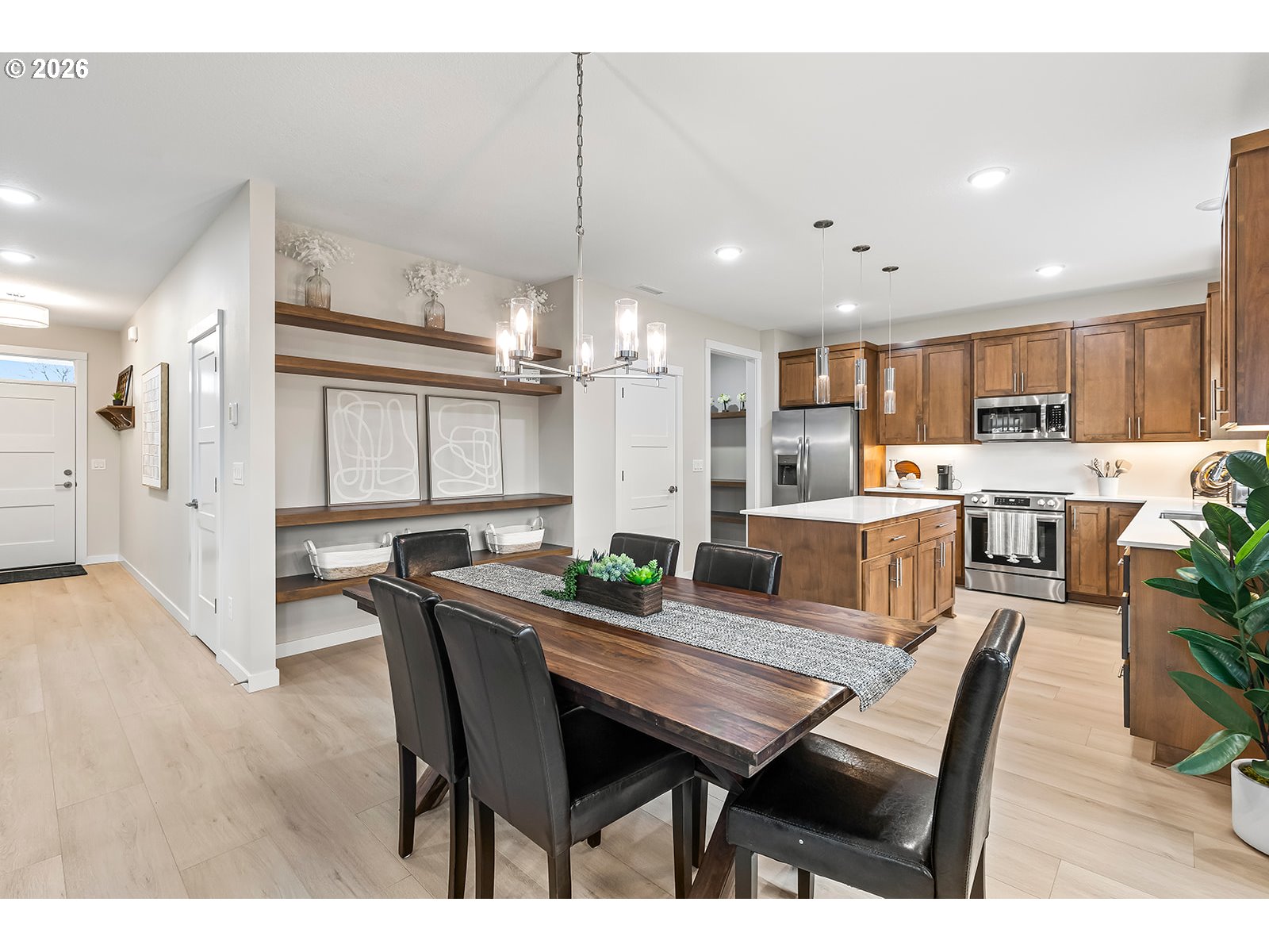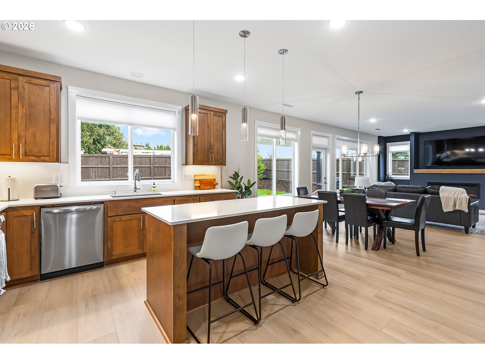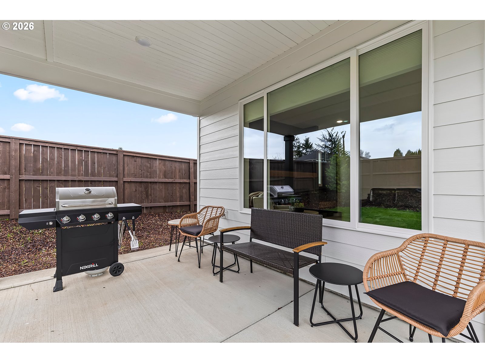 MOVE IN READY NOW in Stevens Glen! COMPLETE WITH FENCE, FRIDGE, WASHER, DRYER AND BLINDS! Ask about our LOW INTEREST RATE options. The new Salvia plan boasts contemporary finishes and a great room flooded with light from the wall of windows. You'll love relaxing in front of the fireplace which features stained Alder shelves on either side...a gorgeous room to spend time in! Custom touches are found throughout including the built-in stained shelves in your dining room which walks out to the huge covered patio for outdoor entertaining all year long...it's 18 ft wide x 12 ft deep! Beautiful custom cabinets and quartz counters throughout. Chef's kitchen features a large island, big walk-in pantry with built-in shelves and special touches like soft-close pull-out trash. You'll stay organized with a convenient home office/den on the main floor with a walk-in closet for extra storage. Upstairs, the primary suite has a big walk-in closet, double sinks in a quartz vanity, stained open linen shelves, and a walk-in shower. Three additional bedrooms share a hall bathroom and close proximity to the laundry room complete with a sink. Add in a mudroom entry from the garage with built-in shelves and coat hooks, and you'll never need to move again! Your large fenced in yard is professionally landscaped with an automatic irrigation system. Enjoy the parklet across the street and the friendly and peaceful surrounding neighborhood. Built with Evergreen Homes' trademark quality, you'll enjoy energy savings from Day 1 while keeping your home at a comfortable temperature all year. Complete with a Trane heat pump efficiently delivering heating and cooling and high-end blown in insulation, plus Milgard windows, you're buying a home built to last.