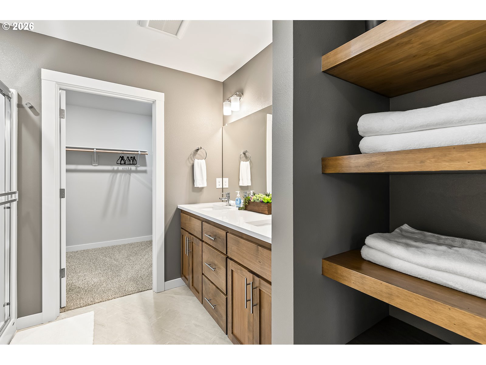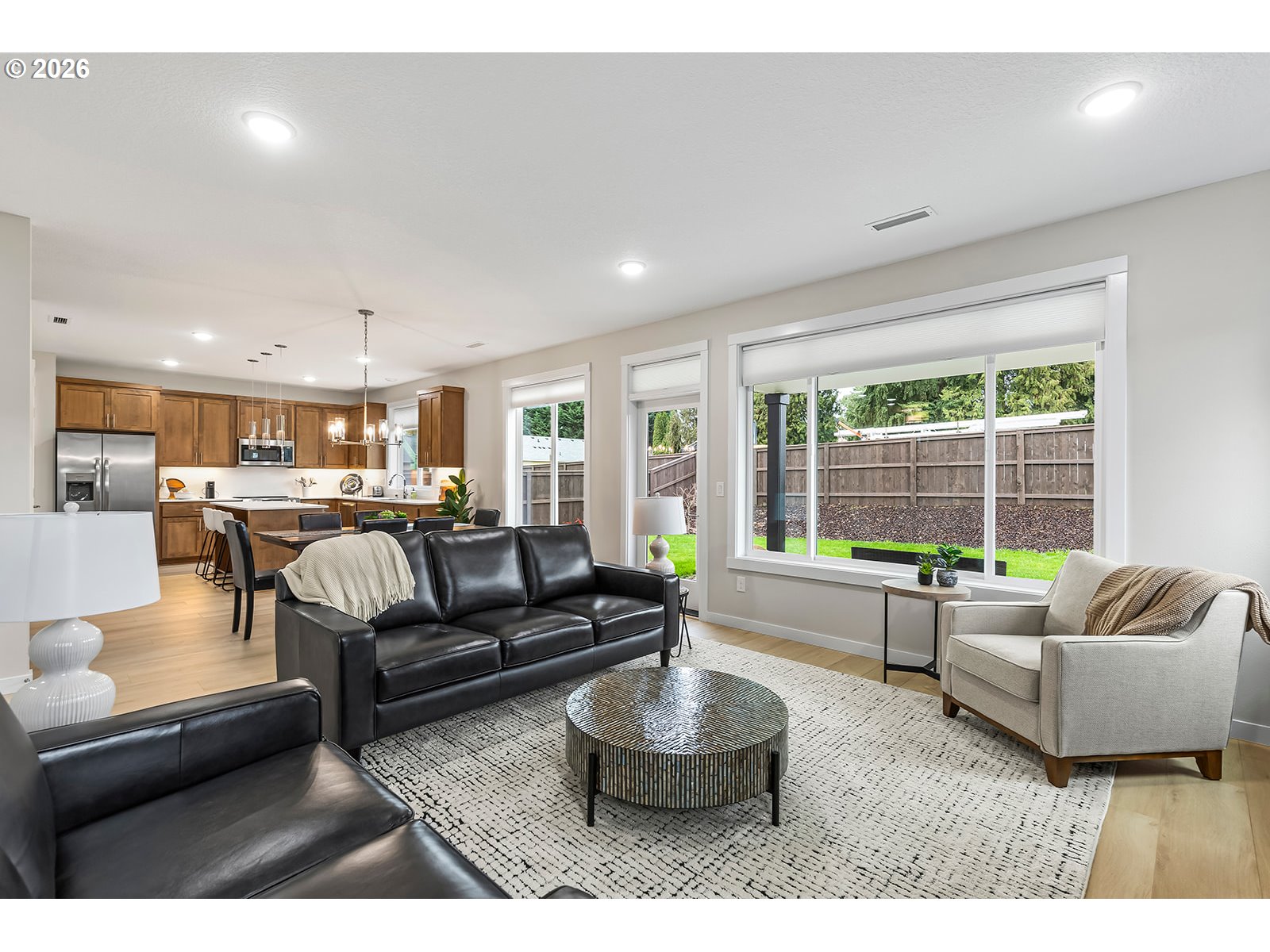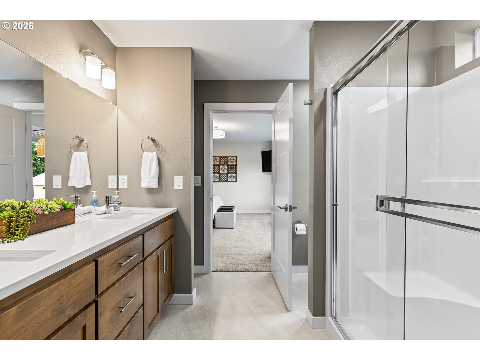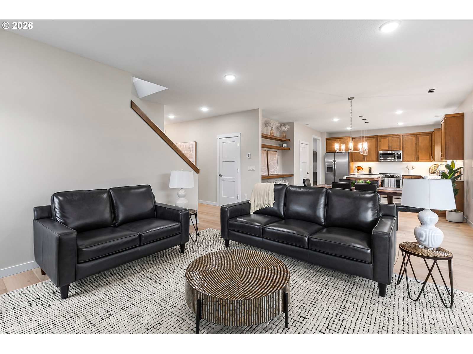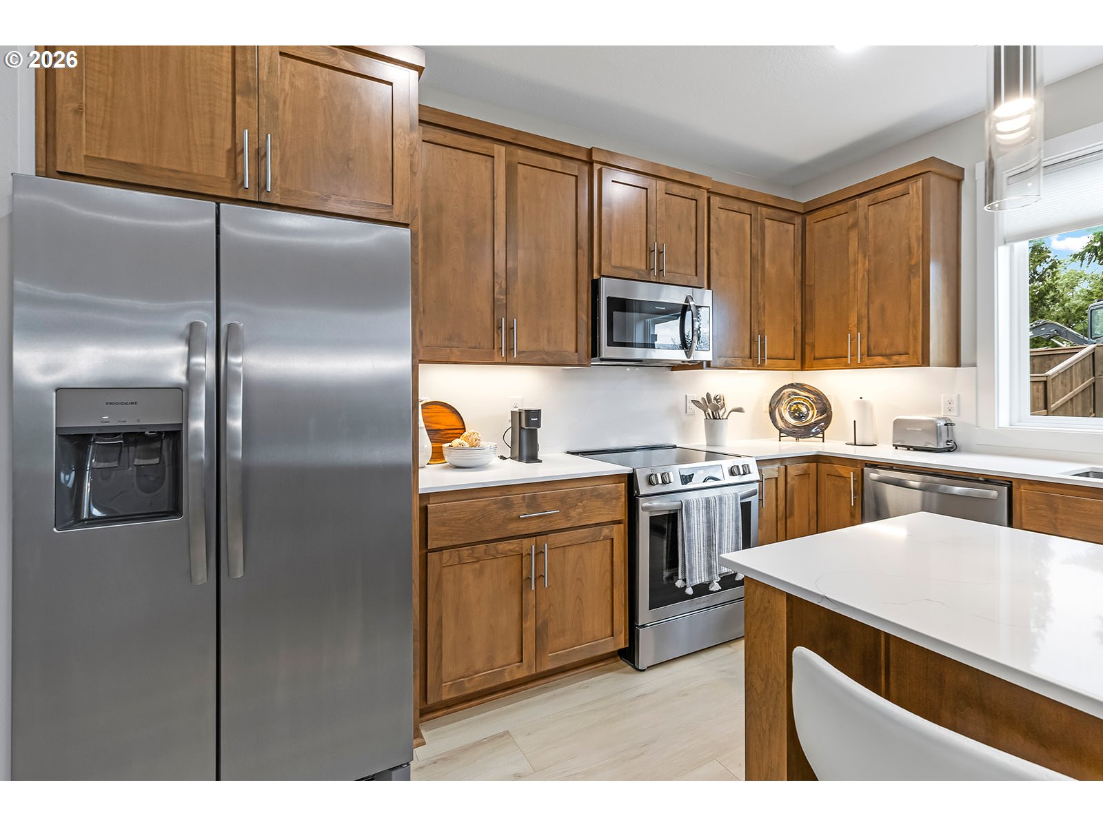 MOVE IN READY NOW in Stevens Glen! COMPLETE WITH FENCE, FRIDGE, WASHER, DRYER AND BLINDS! Ask about our LOW INTEREST RATE options. The new Salvia plan boasts contemporary finishes and a great room flooded with light from the wall of windows. You'll love relaxing in front of the fireplace which features stained Alder shelves on either side...a gorgeous room to spend time in! Custom touches are found throughout including the built-in stained shelves in your dining room which walks out to the huge covered patio for outdoor entertaining all year long...it's 18 ft wide x 12 ft deep! Beautiful custom cabinets and quartz counters throughout. Chef's kitchen features a large island, big walk-in pantry with built-in shelves and special touches like soft-close pull-out trash. You'll stay organized with a convenient home office/den on the main floor with a walk-in closet for extra storage. Upstairs, the primary suite has a big walk-in closet, double sinks in a quartz vanity, stained open linen shelves, and a walk-in shower. Three additional bedrooms share a hall bathroom and close proximity to the laundry room complete with a sink. Add in a mudroom entry from the garage with built-in shelves and coat hooks, and you'll never need to move again! Your large fenced in yard is professionally landscaped with an automatic irrigation system. Enjoy the parklet across the street and the friendly and peaceful surrounding neighborhood. Built with Evergreen Homes' trademark quality, you'll enjoy energy savings from Day 1 while keeping your home at a comfortable temperature all year. Complete with a Trane heat pump efficiently delivering heating and cooling and high-end blown in insulation, plus Milgard windows, you're buying a home built to last.