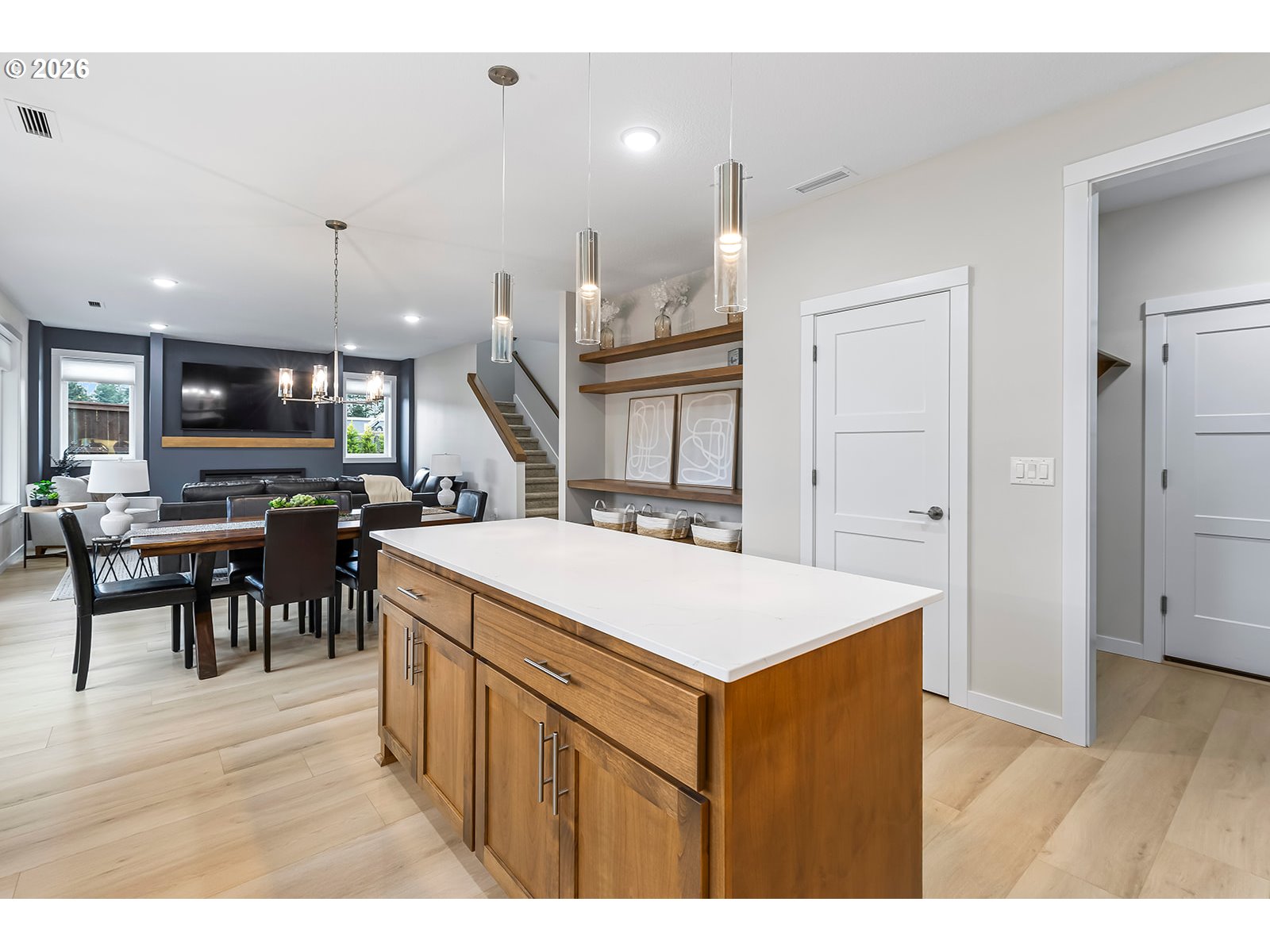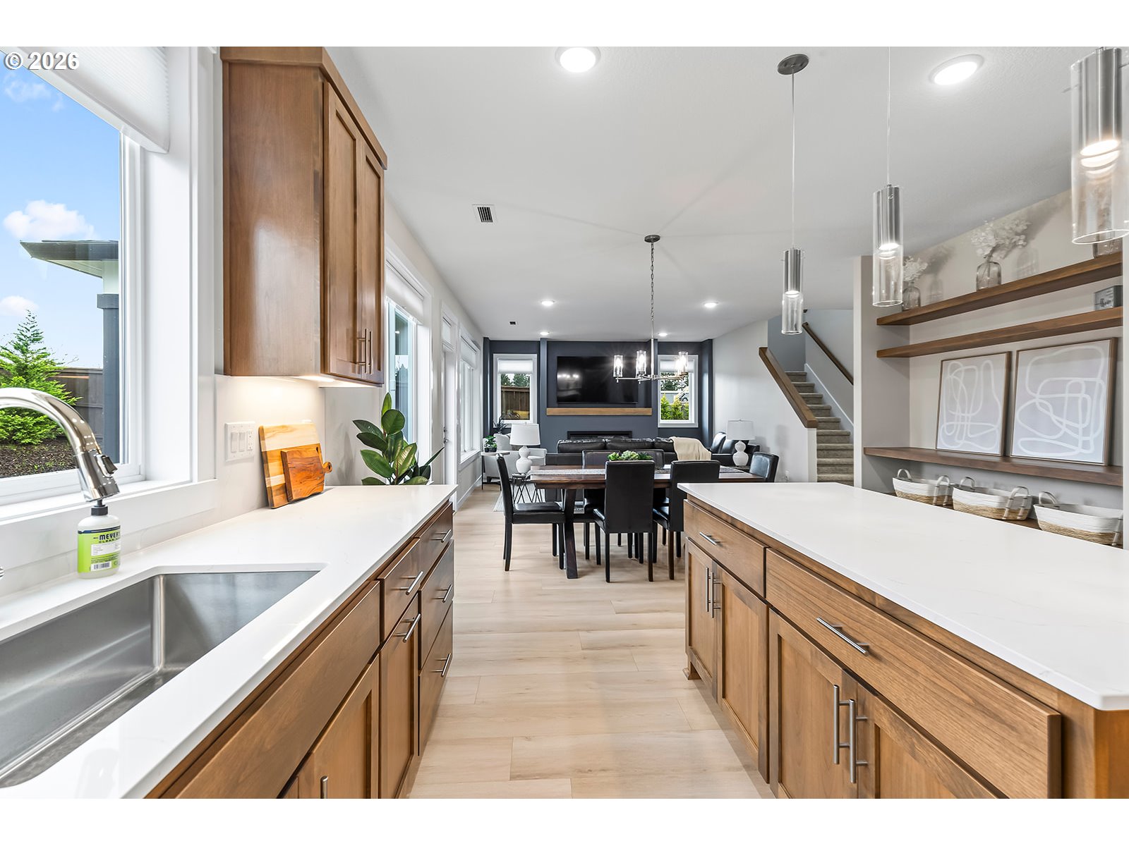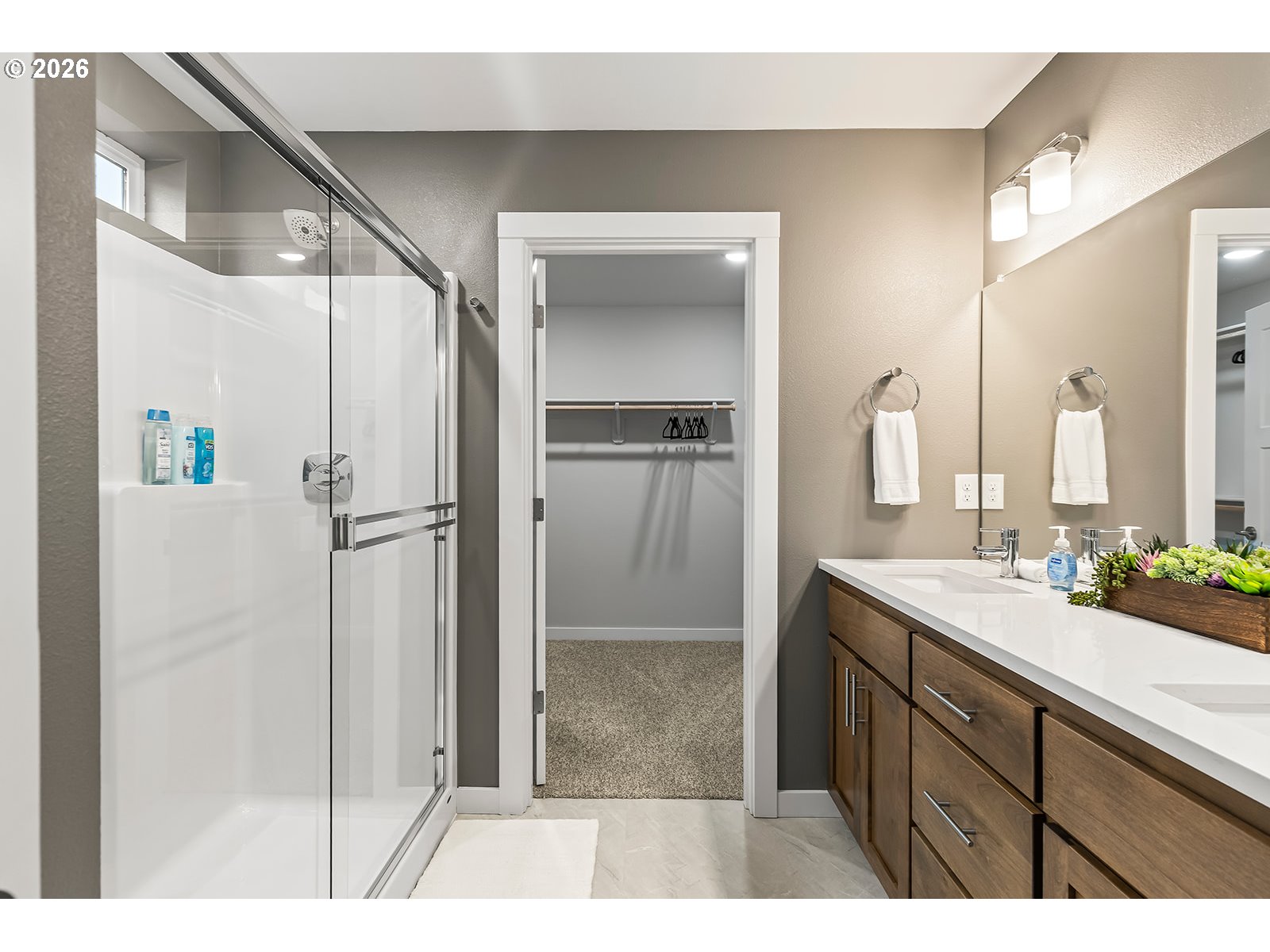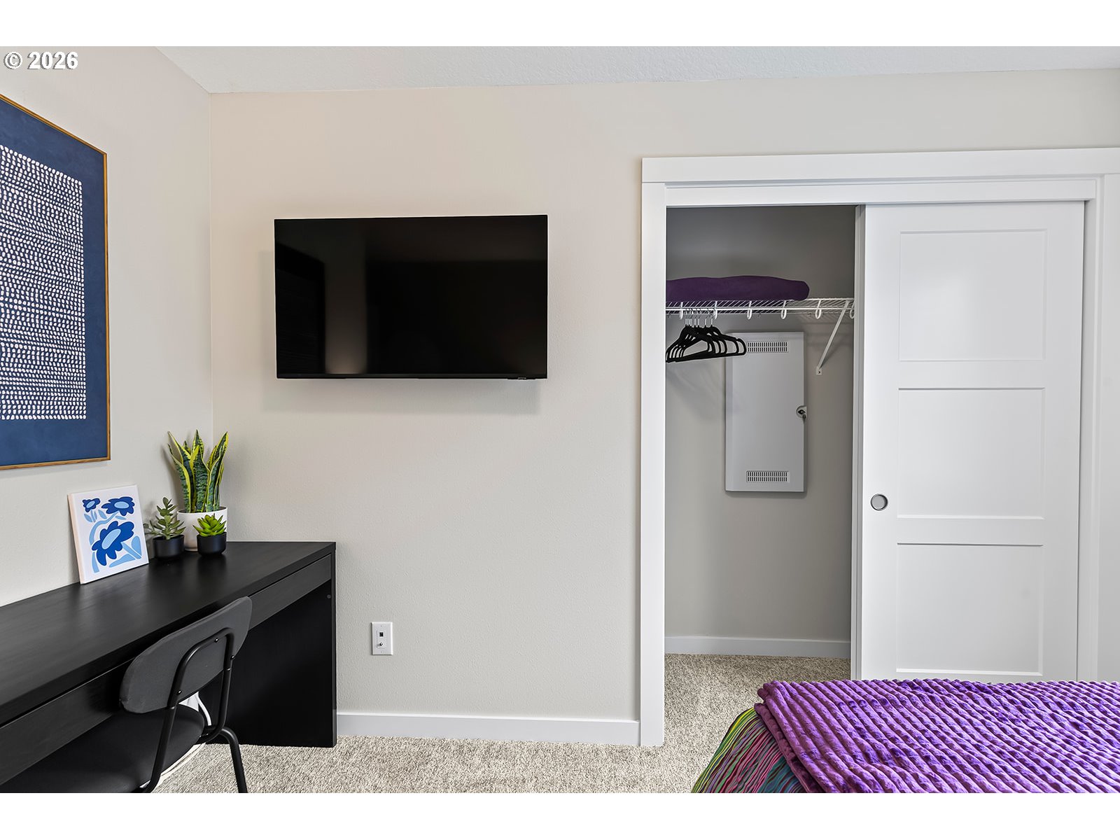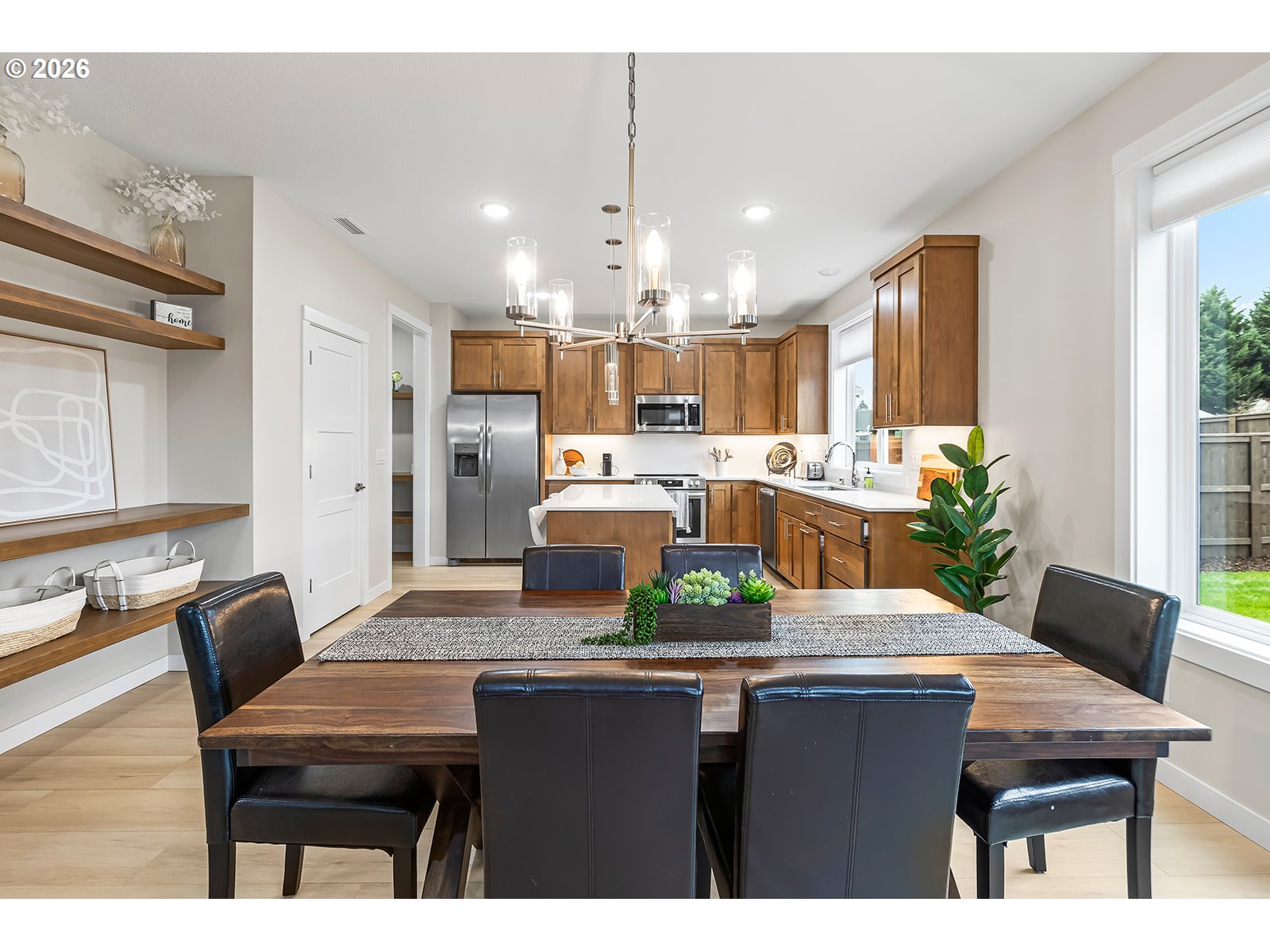 MOVE IN READY NOW in Stevens Glen! COMPLETE WITH FENCE, FRIDGE, WASHER, DRYER AND BLINDS! Ask about our LOW INTEREST RATE options. The new Salvia plan boasts contemporary finishes and a great room flooded with light from the wall of windows. You'll love relaxing in front of the fireplace which features stained Alder shelves on either side...a gorgeous room to spend time in! Custom touches are found throughout including the built-in stained shelves in your dining room which walks out to the huge covered patio for outdoor entertaining all year long...it's 18 ft wide x 12 ft deep! Beautiful custom cabinets and quartz counters throughout. Chef's kitchen features a large island, big walk-in pantry with built-in shelves and special touches like soft-close pull-out trash. You'll stay organized with a convenient home office/den on the main floor with a walk-in closet for extra storage. Upstairs, the primary suite has a big walk-in closet, double sinks in a quartz vanity, stained open linen shelves, and a walk-in shower. Three additional bedrooms share a hall bathroom and close proximity to the laundry room complete with a sink. Add in a mudroom entry from the garage with built-in shelves and coat hooks, and you'll never need to move again! Your large fenced in yard is professionally landscaped with an automatic irrigation system. Enjoy the parklet across the street and the friendly and peaceful surrounding neighborhood. Built with Evergreen Homes' trademark quality, you'll enjoy energy savings from Day 1 while keeping your home at a comfortable temperature all year. Complete with a Trane heat pump efficiently delivering heating and cooling and high-end blown in insulation, plus Milgard windows, you're buying a home built to last.