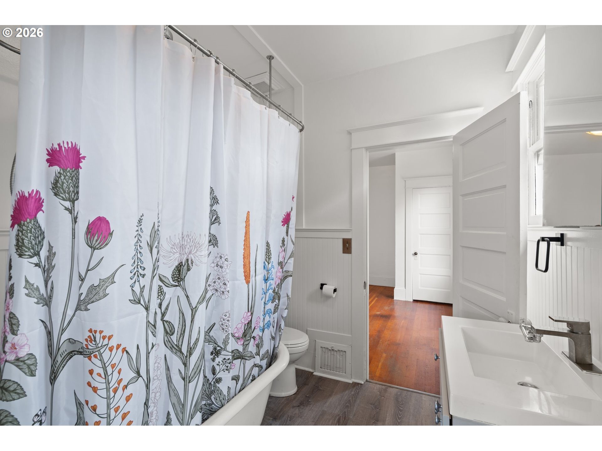 Perfectly positioned in Vancouver’s sought-after Hough Neighborhood, this character-filled home sits within the walkable energy of Uptown, with Main Street’s shops, restaurants, coffee spots, and everyday conveniences just blocks away. Enjoy easy highway access along with quick minutes to the Waterfront, downtown Vancouver, and local parks. A covered front porch invites slow mornings and cozy evenings, rain or shine, while old-growth fir floors and timeless details bring warmth and charm throughout. The spacious living room connects to two bedrooms and a shared bath featuring a vintage-inspired pedestal tub with shower. A light-filled dining room off the kitchen flows into a mud room and a full unfinished basement offering endless potential. A detached two-car garage and fenced backyard complete the property. If you’re looking for character, convenience, and a location that truly delivers, this is one you’ll want to experience in person.
