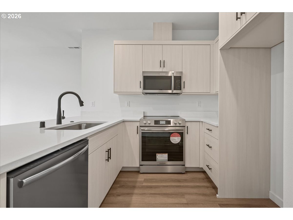 Beautiful 2-bedroom, 2.5-bath home with loft and 1-car garage. This thoughtfully designed home features two primary suites, each with its own private bath, plus a convenient half bath on the main level for guests. The spacious loft offers the perfect flex space for a home office, media room, or additional living area to fit your lifestyle. Enjoy an open and inviting floor plan designed for both comfort and privacy. The kitchen features quartz countertops, custom cabinetry, and stainless-steel appliances, opening to a spacious great room with a modern linear fireplace. Sliding doors lead to covered outdoor living and a backyard that is perfect for entertaining, relaxing, or summer BBQs. Upgraded LVP flooring extends throughout the entire main floor. The primary suite offers a walk-in closet and a beautifully appointed bath with double sinks and a shower. Designer door hardware, high-end modern lighting, central A/C, and quality finishes throughout add to the appeal of this exceptional home. The beautifully landscaped yard includes a sprinkler system and full fencing for privacy and convenience. Photos and virtual tour are of the actual home. Welcome to Pleasant Woods Cottages, one of Vancouver’s newest home communities, conveniently located in North Vancouver. This beautifully maintained community features custom-designed cottage homes showcasing the quality, craftsmanship, flexibility, and thoughtful design today’s buyers are looking for. Surrounded by open green space, Pleasant Woods Cottages offers an exciting collection of new floor plans and desirable features. Schedule your visit today and discover this incredible new home community. Open Weekends or by appointment.