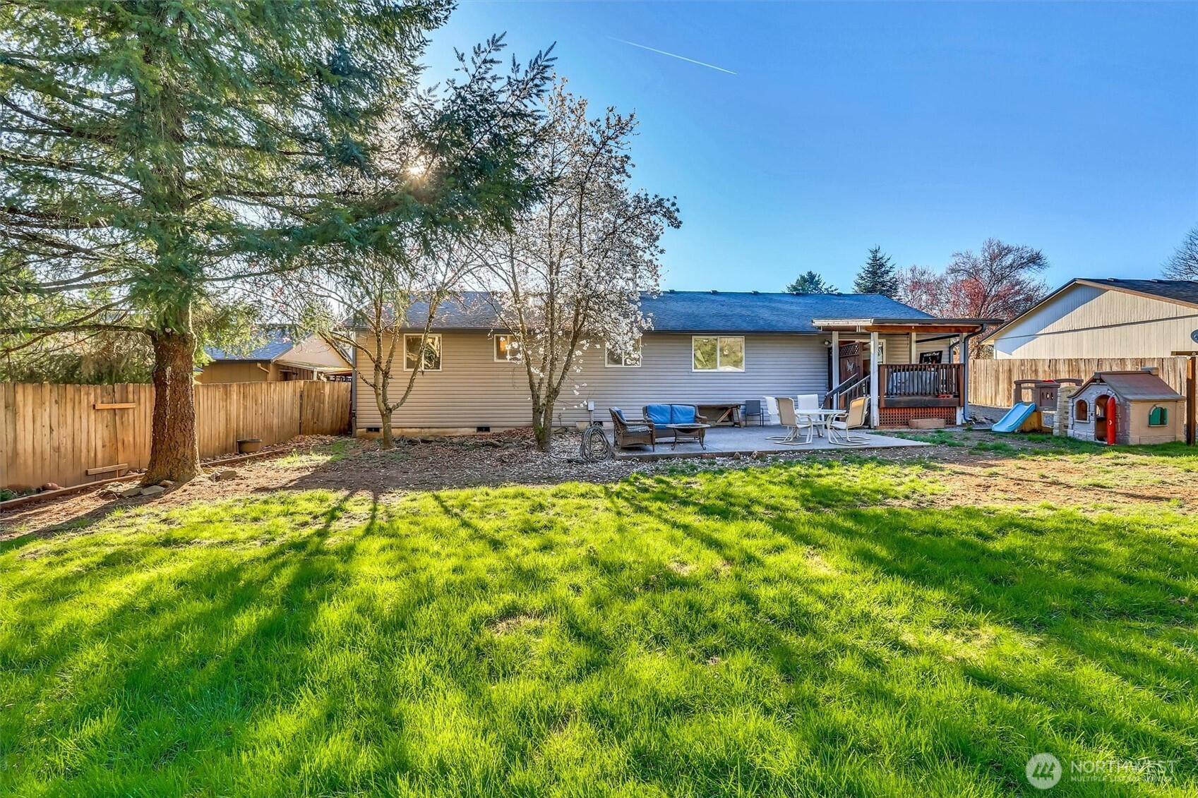 Easy one-level living on a fully fenced .30-acre lot in the heart of Yacolt. A true gardener’s paradise with raised beds, a metal RV/boat cover, a tool shed with workbench, and space to enjoy the outdoors and store recreational equipment. Electrical is already in place for a jacuzzi—perfect for relaxing or entertaining in your own private backyard setting. Inside offers 3 bedrooms, 2 bathrooms, and 1,482 square feet with a warm, natural flow, generous room sizes, cozy wood-burning stove, and bay windows that bring in beautiful natural light. A versatile flex space provides options for a den, office, or second living area. The kitchen features newer matching Samsung appliances and opens comfortably to the main living areas for easy everyday living and gathering. A newer Trane heat pump adds year-round comfort. Enjoy the balance of a quieter setting while still being approximately 30 minutes to Battle Ground and about 30 miles to Portland International Airport. Experience the ease of everyday living while enjoying the charm, connection, and strong sense of community that makes Yacolt such a special place to call home.